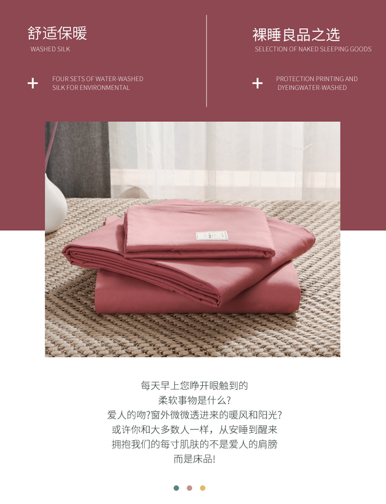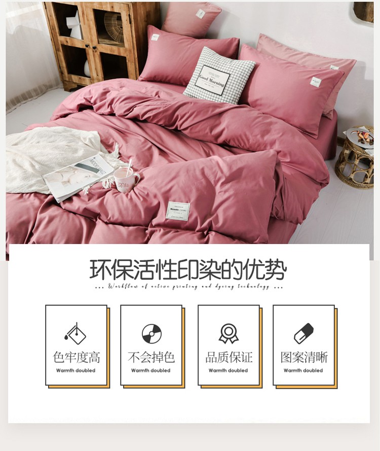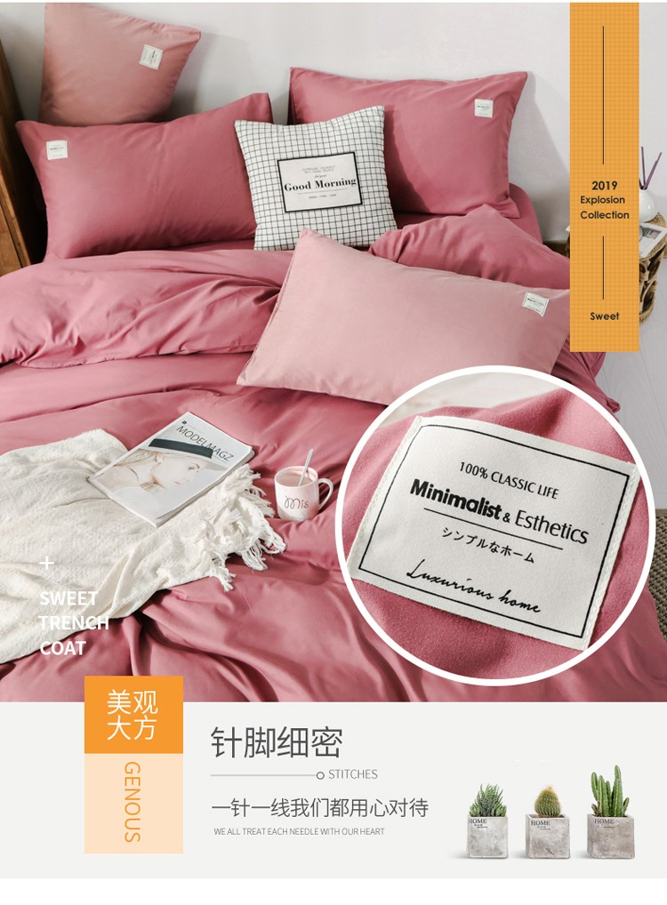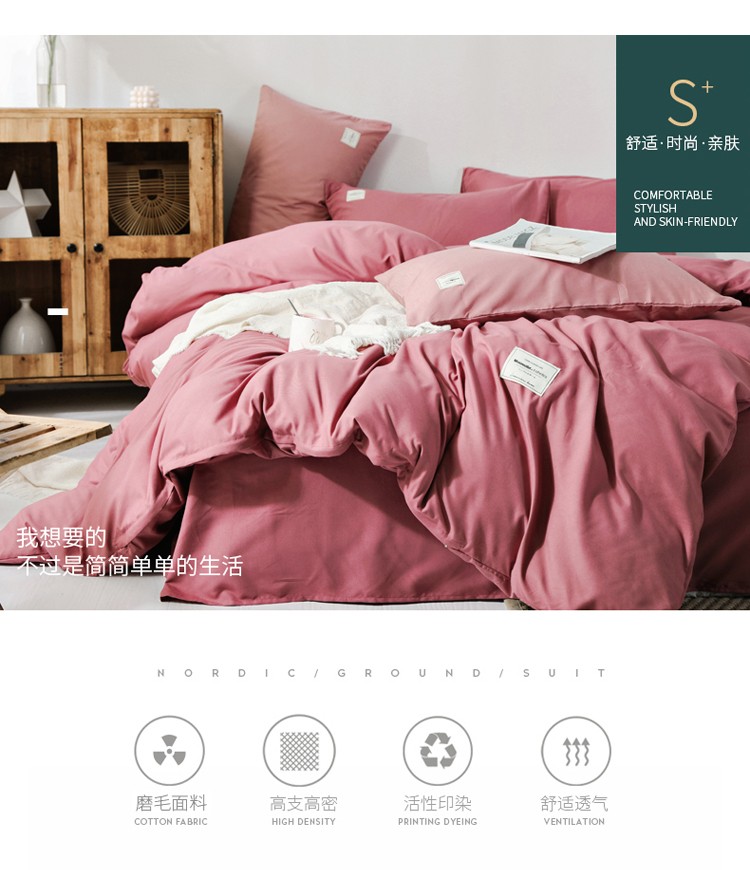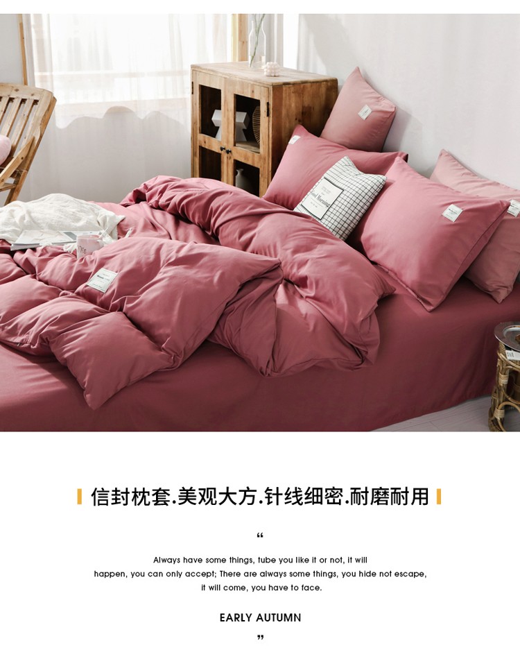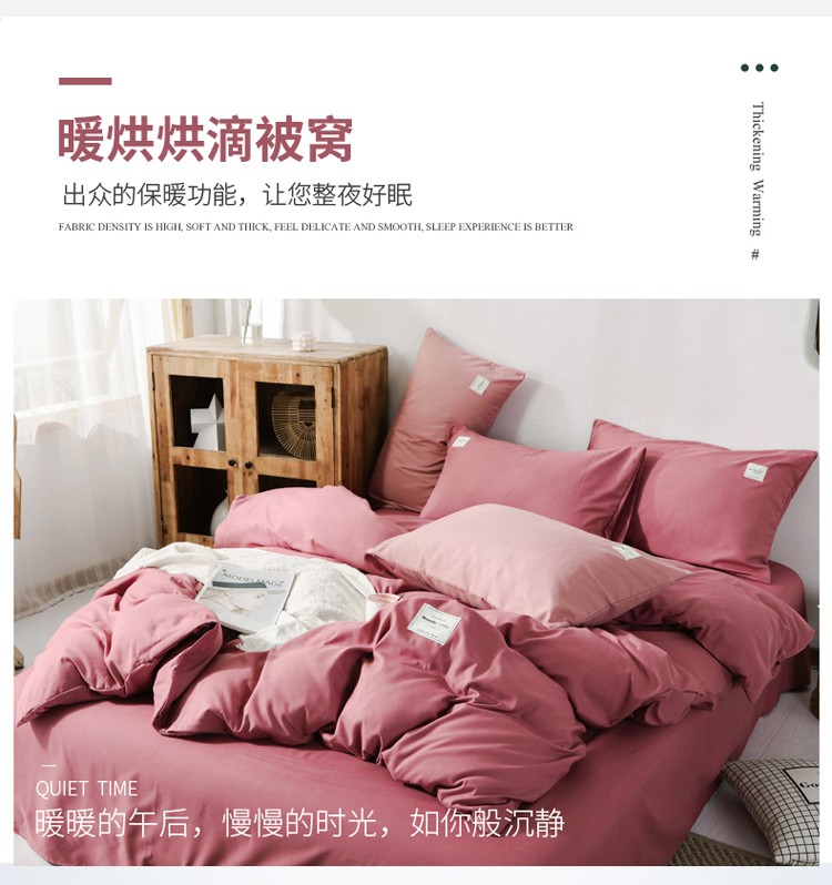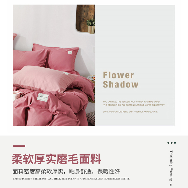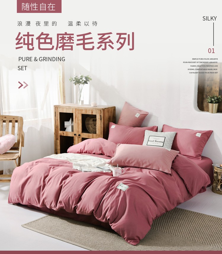 商品名称:米粒 2020新款纯色磨毛四件套 豆沙
