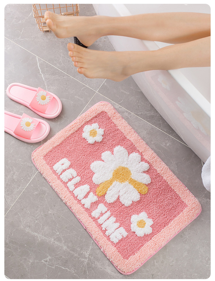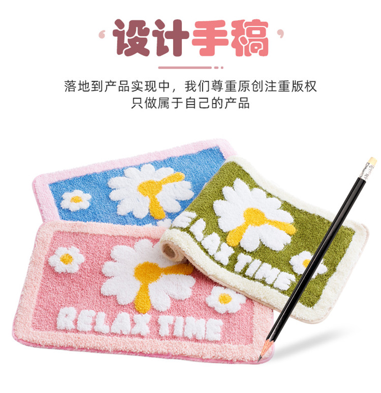 仟亿莱家纺 2020新款小雏菊地垫 绿色小雏菊