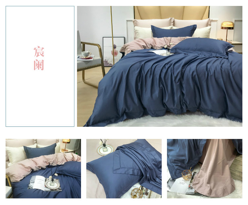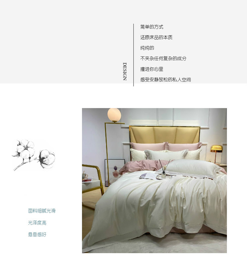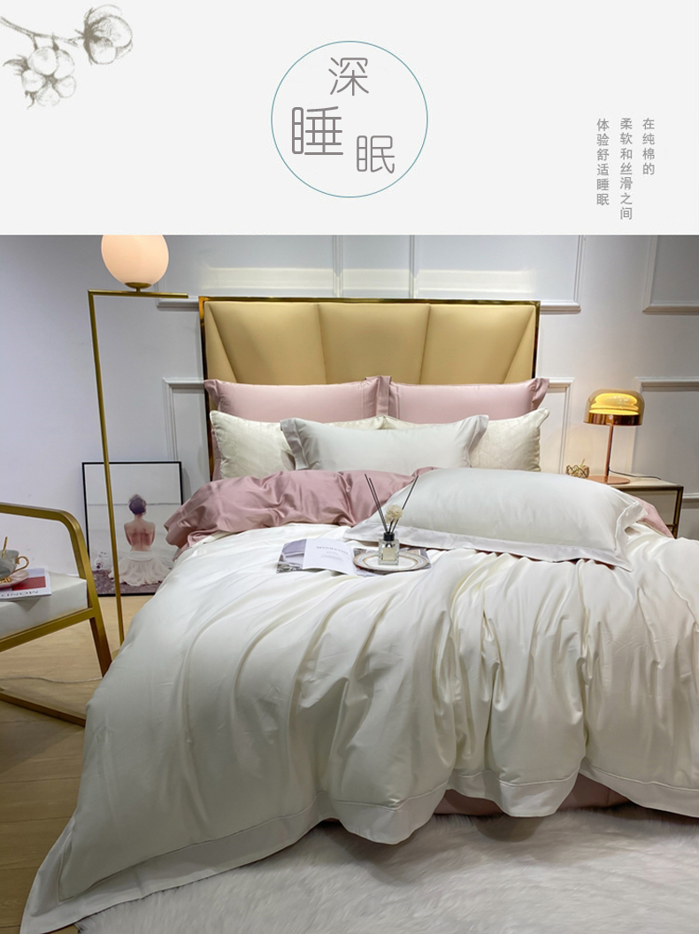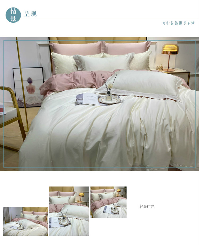 商品名称:十九色家纺 新款50*50撞色长绒棉高端埋线款全棉四件套 绮玉