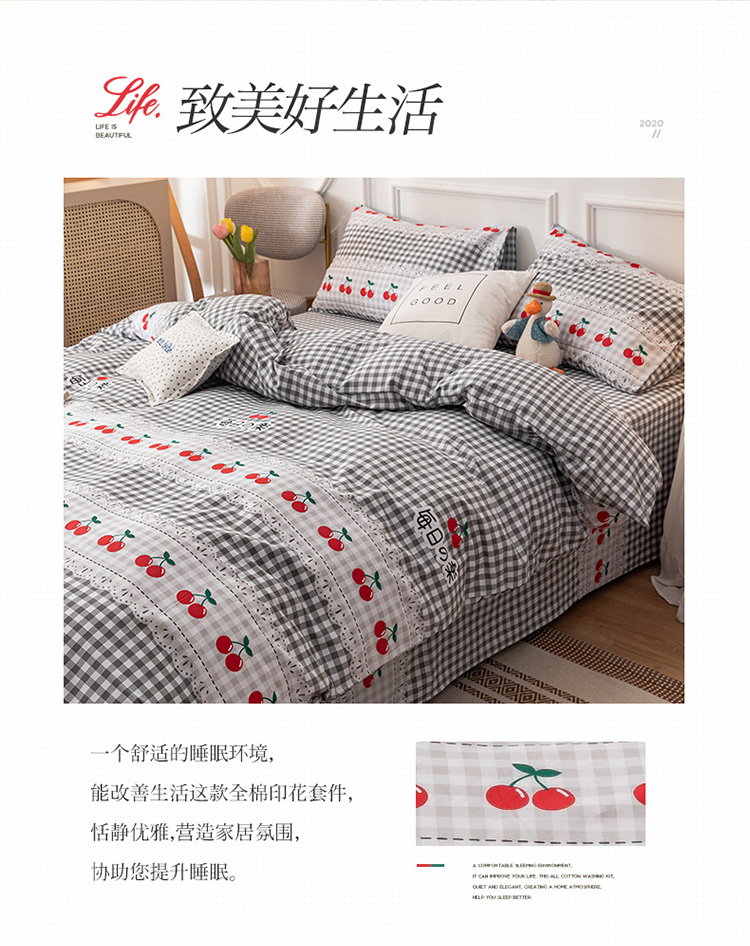 珺柔 2020新花型13070全棉四件套 日式樱桃
