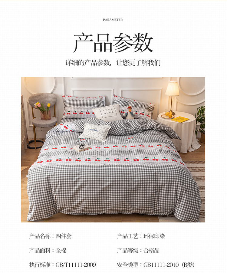 商品名称:珺柔 2020新花型13070全棉四件套 日式樱桃
