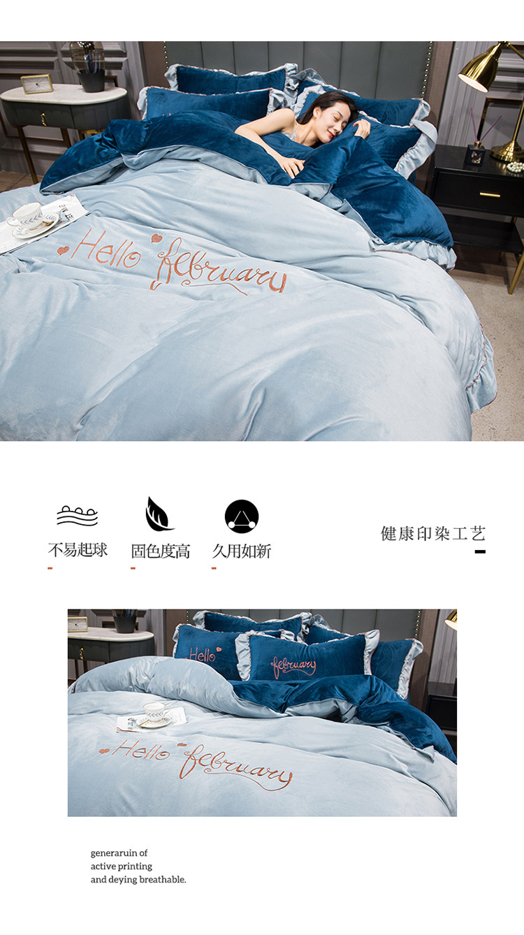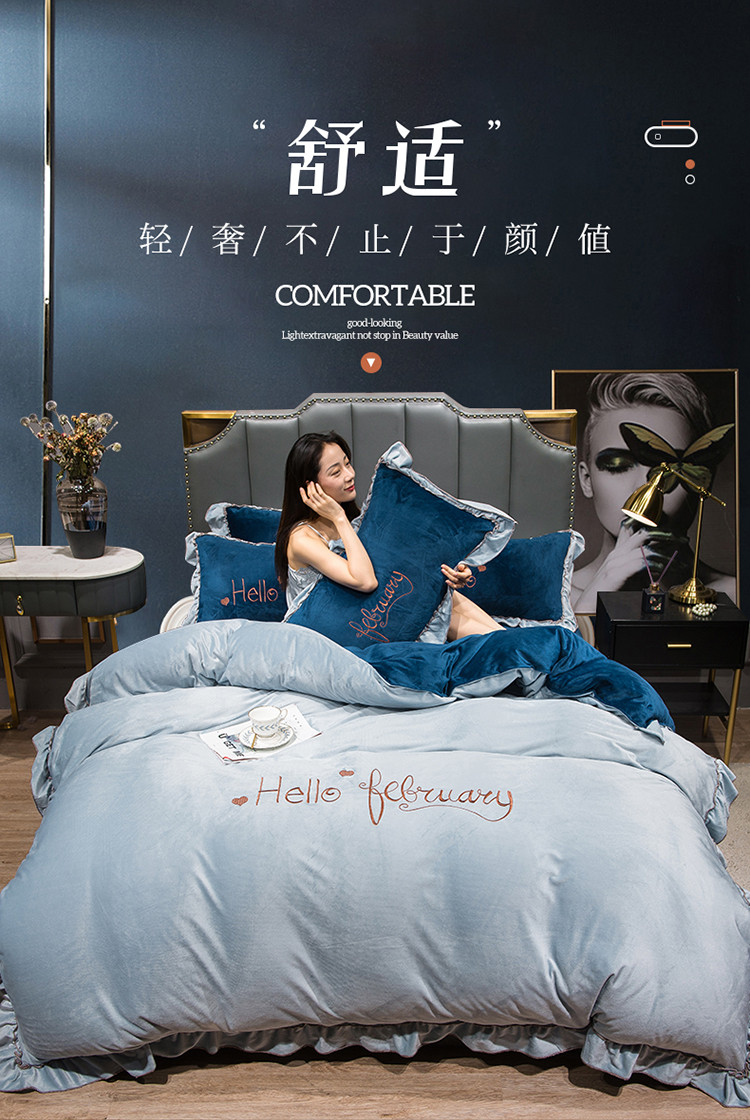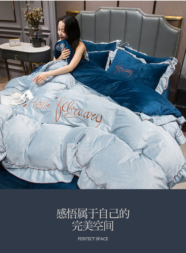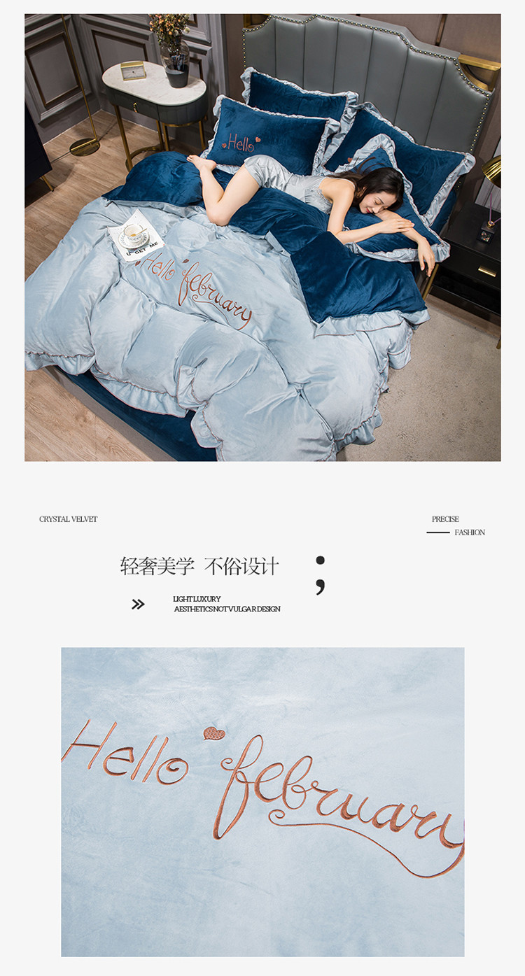 骏腾2022新款韩版绣花你好美丽系列水晶绒四件套宝宝绒宾利兰