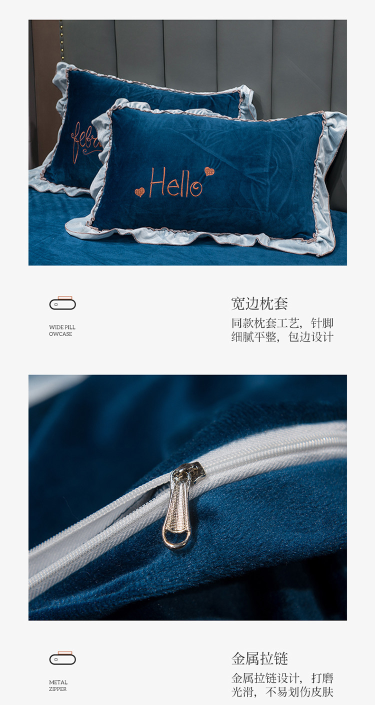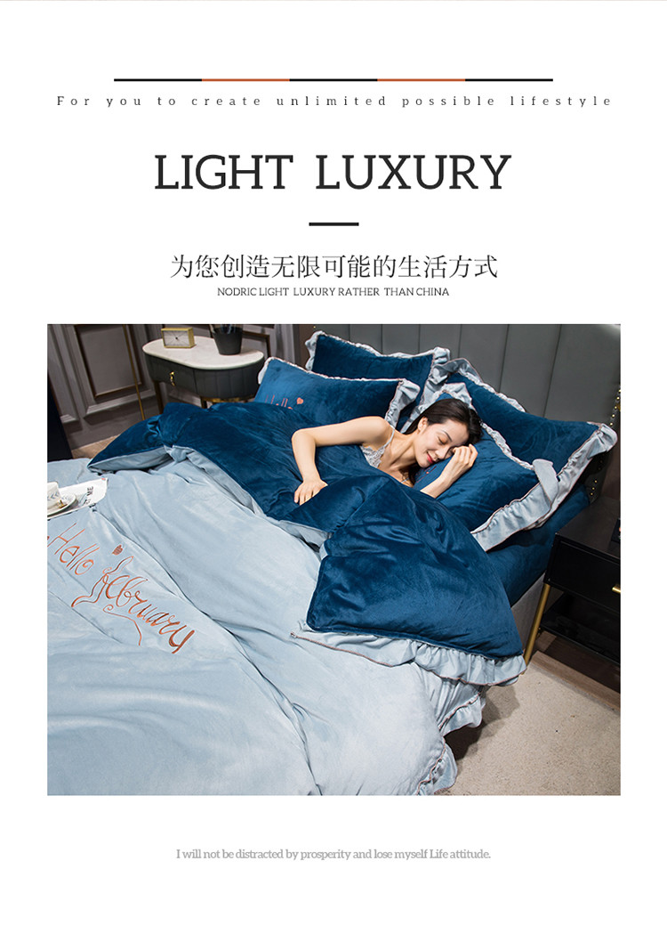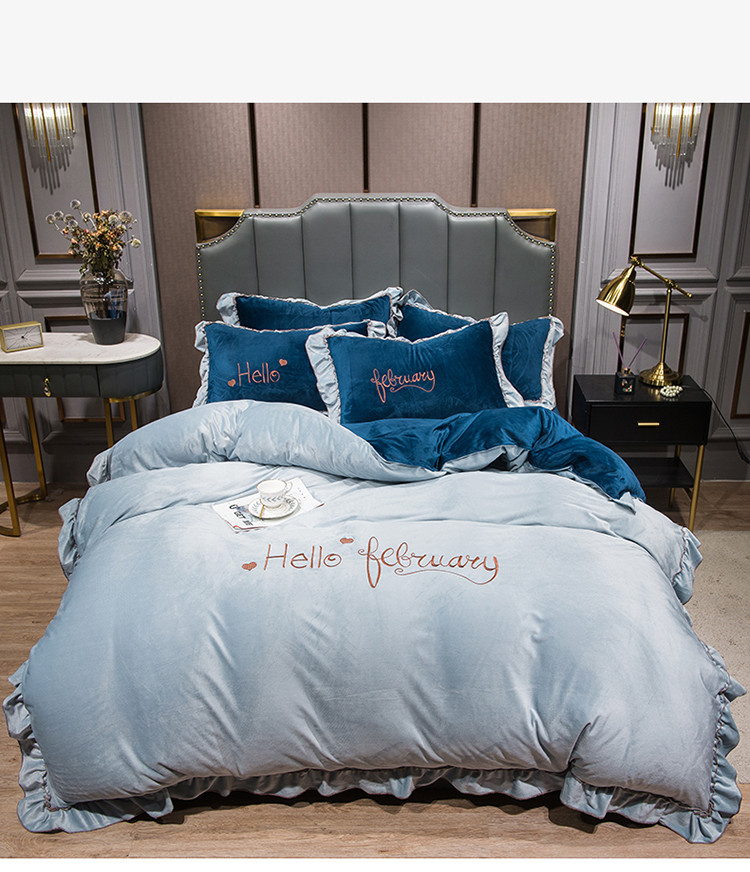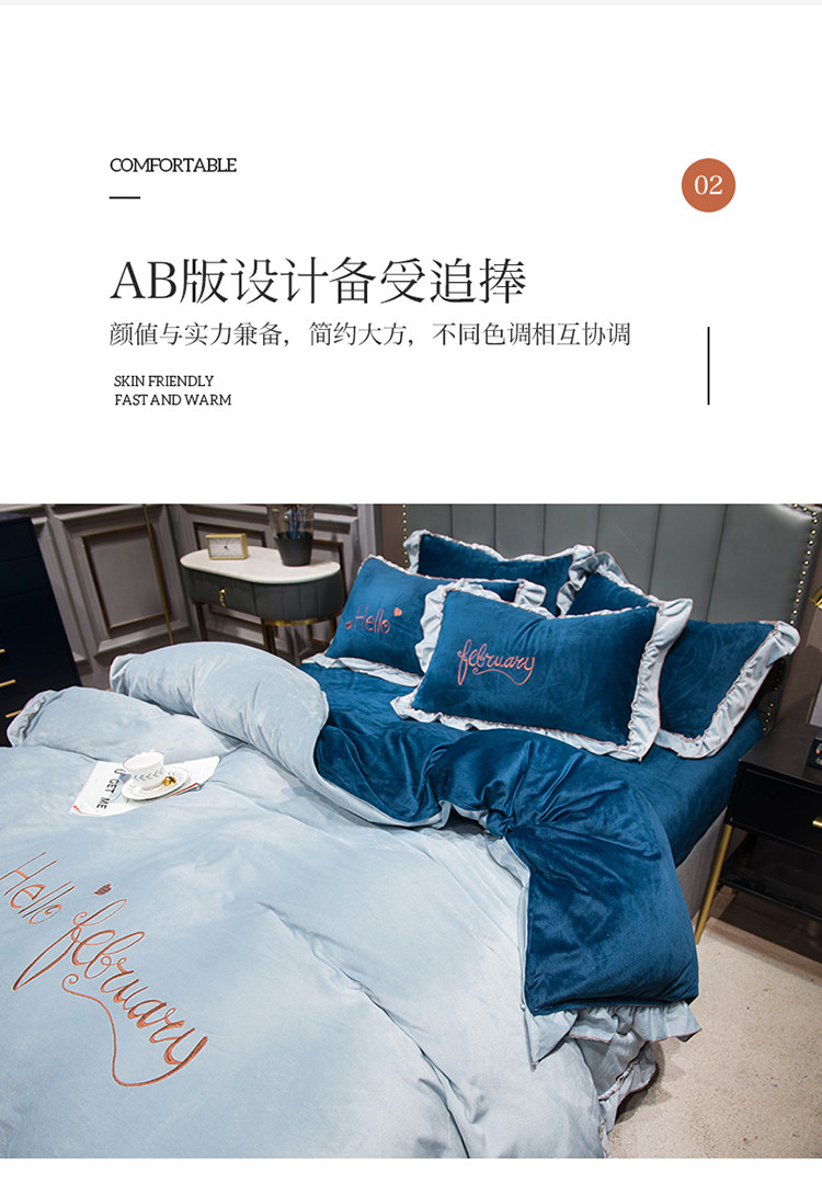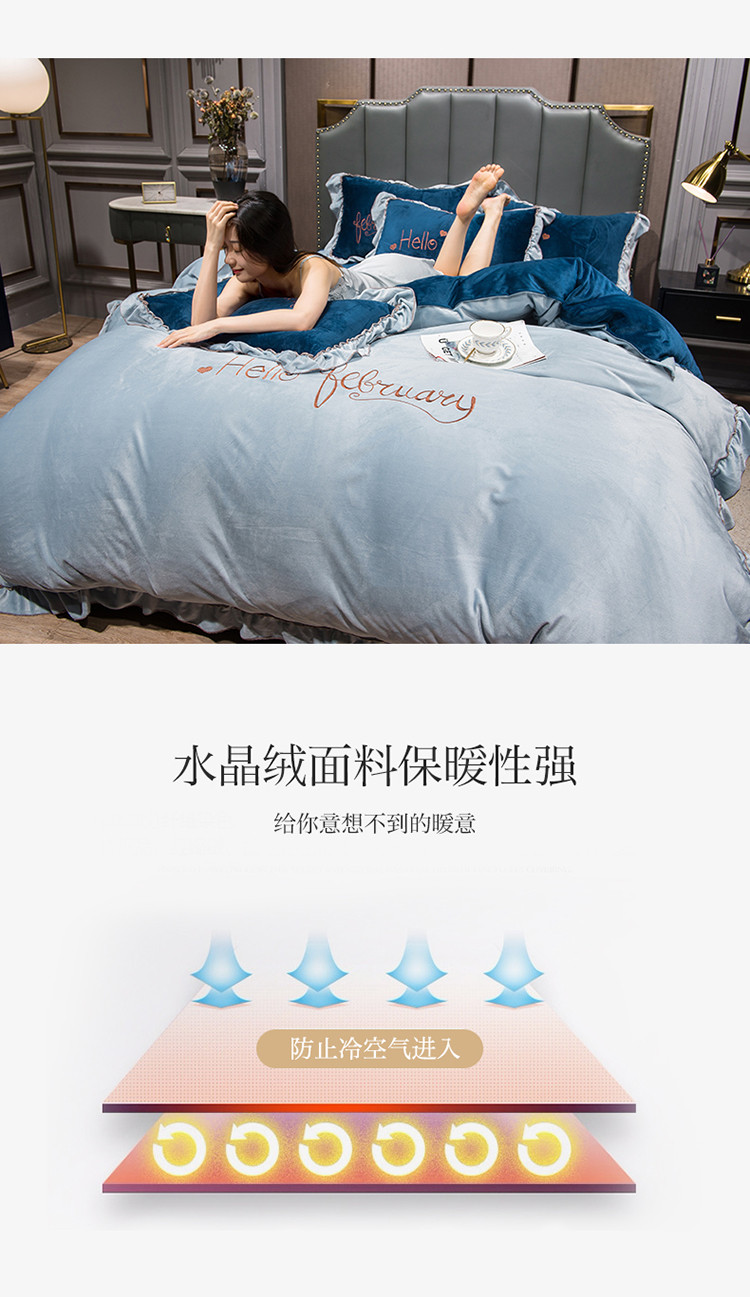 骏腾2022新款韩版绣花你好美丽系列水晶绒四件套宝宝绒宾利兰