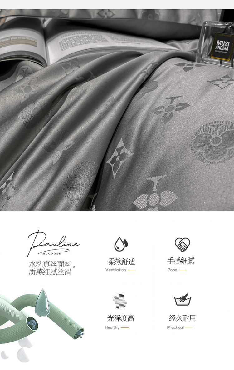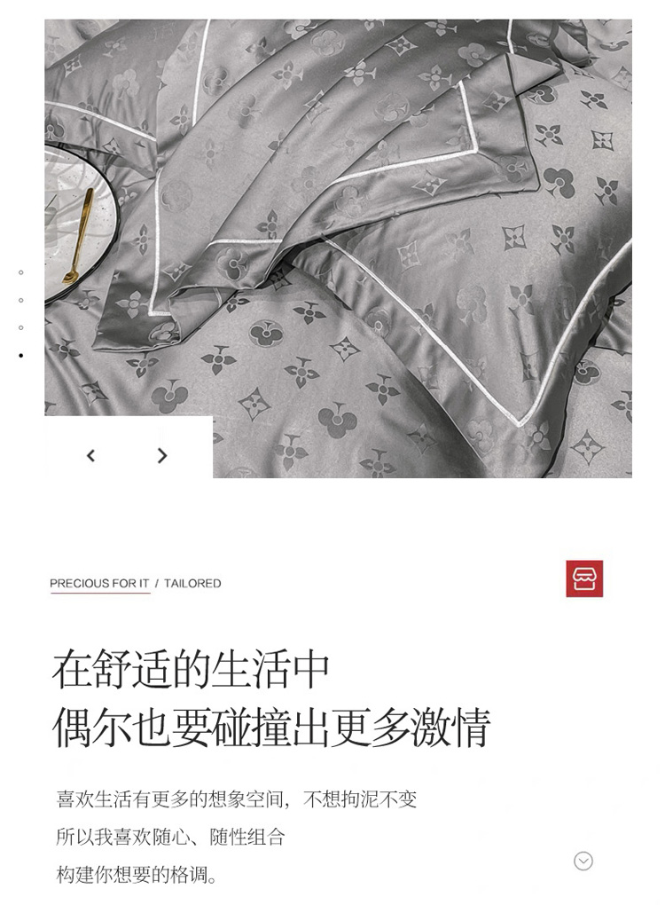 当前位置: 91家纺网 > 商品网购 > 床品套件 > 四件套 > 全棉普通四件套 > 眠帛家居全棉磨毛轻奢四件套A版贡缎提花B版全棉磨毛爱维高级灰