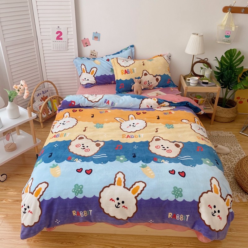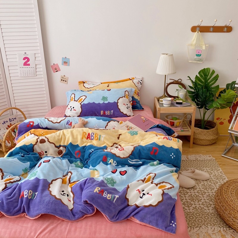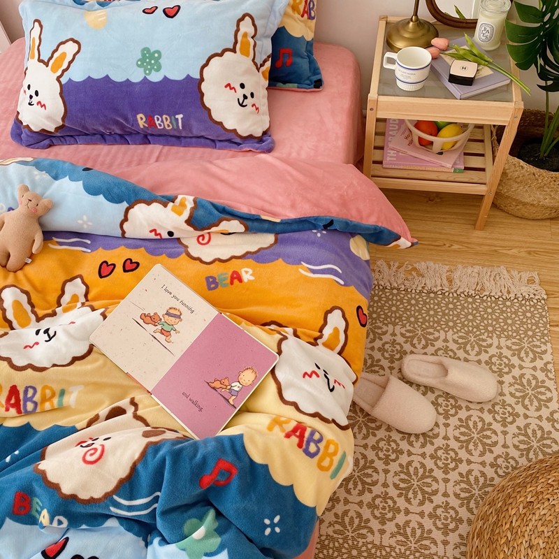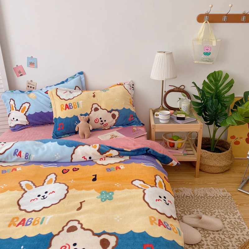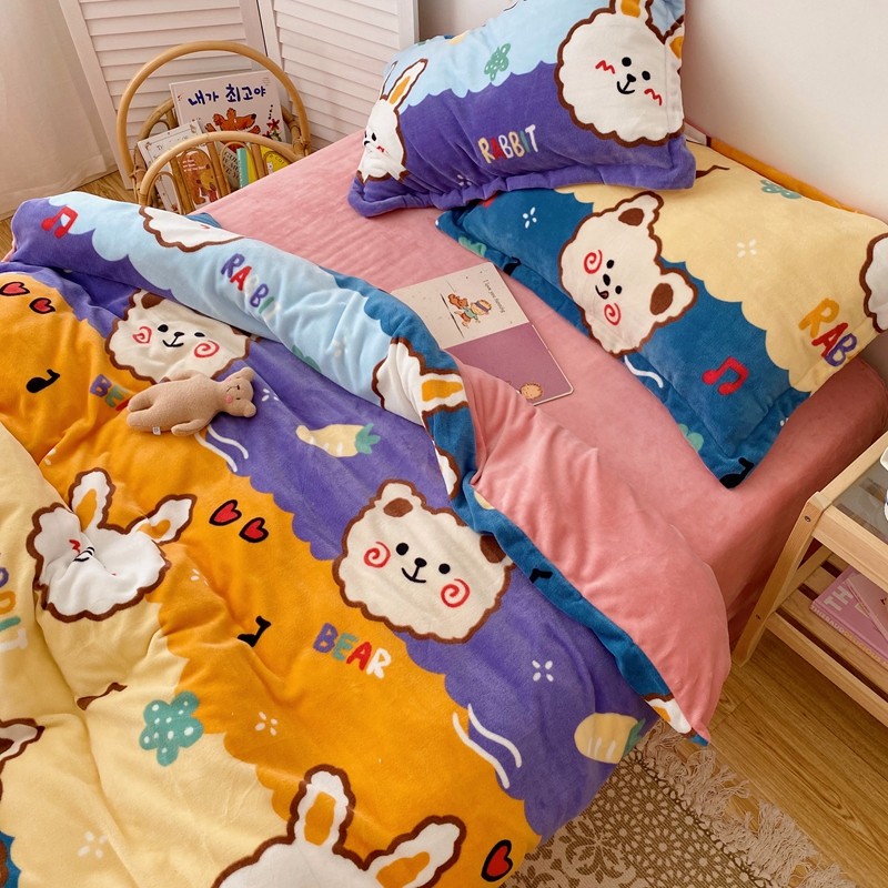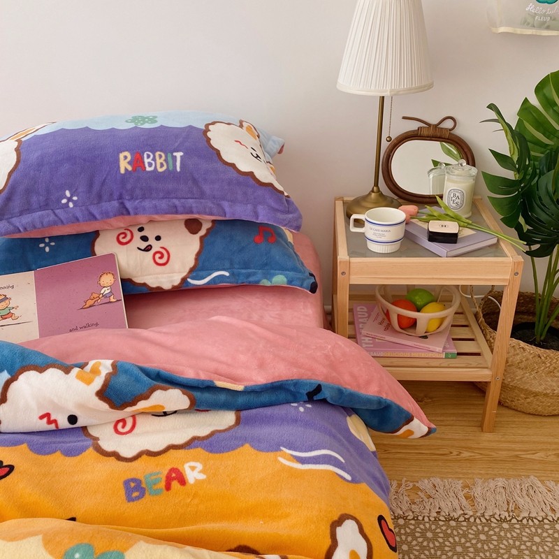 星期八 2020新款秋冬加厚保暖牛奶绒四件套 兔子熊