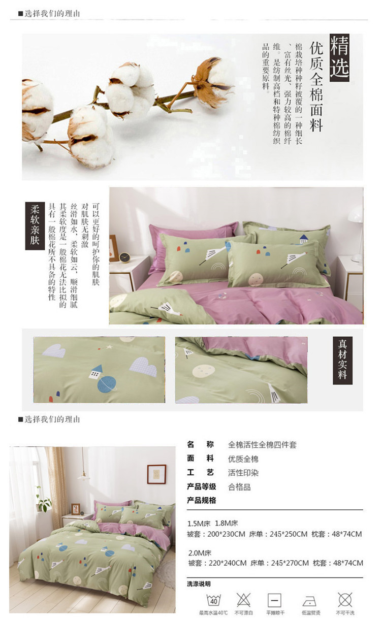 (总)星期三 2021新款5月新花型全棉四件套(加老板微信有会员价),太空熊,春鸟-兰,格调-绿,曼妮熊,星际漫游,羽叶