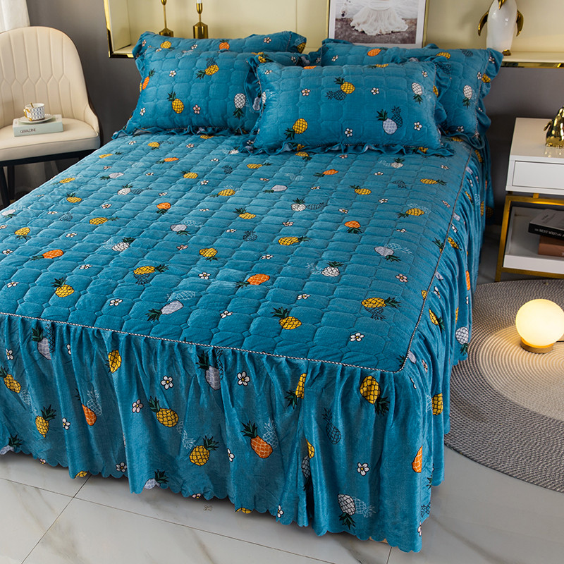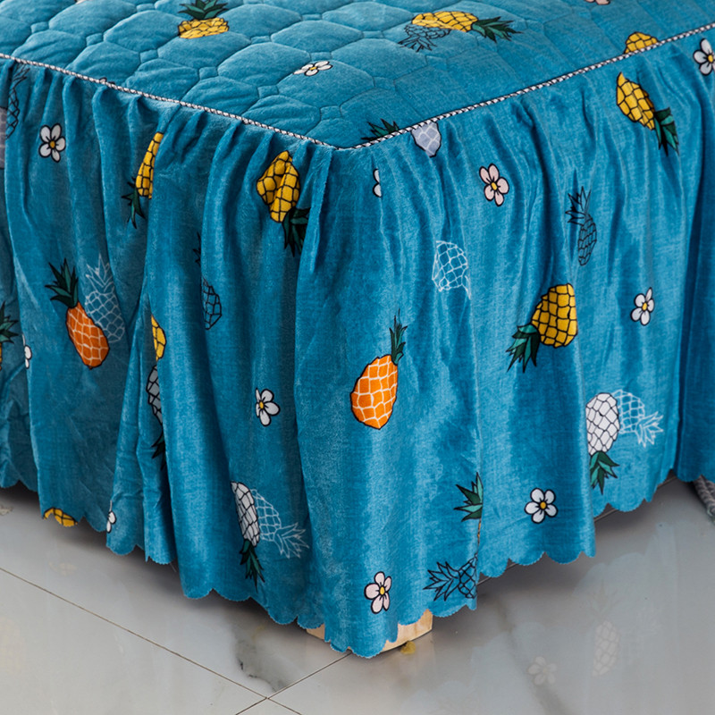 纽缦 2020新款绒夹棉床裙 菠萝蜜蓝