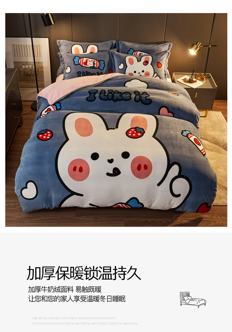 慕尚 2022新款北欧牛奶绒大版四件套实拍图 奶糖兔
