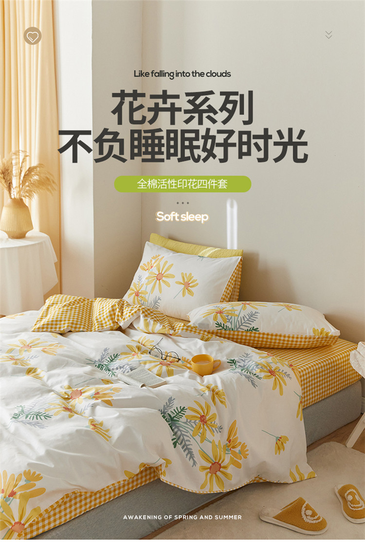 (总)窝米2022新款13370全棉四件套花卉系列,春风里,青柚,秋收,水波纹米驼,水波纹炭黑,恬谧,夏花,云溪红,云溪黄