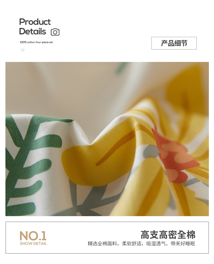 商品名称:窝米 2021新款全棉四件套花卉系列 篱种