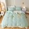商品名称:沐棉家居2022年新款全棉印花13372荷叶边系列四件套直播爆款 爱心-绿