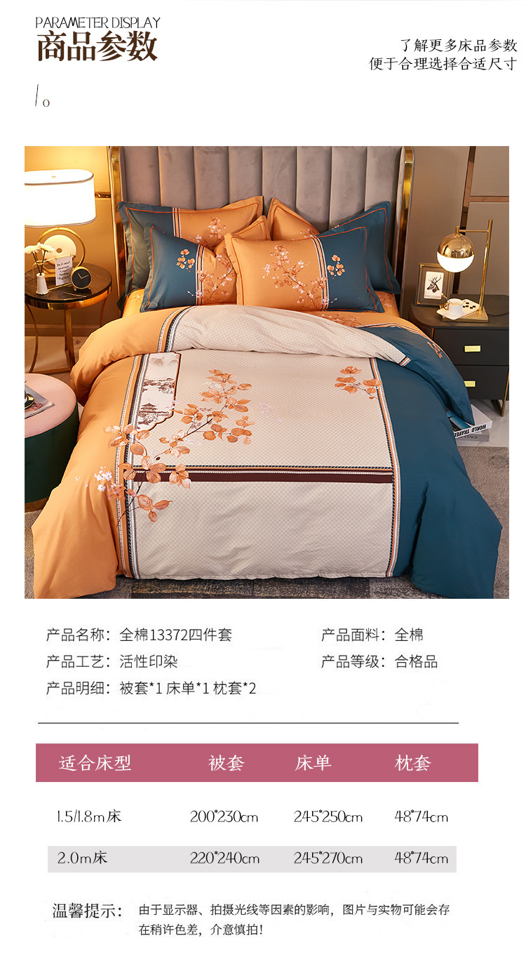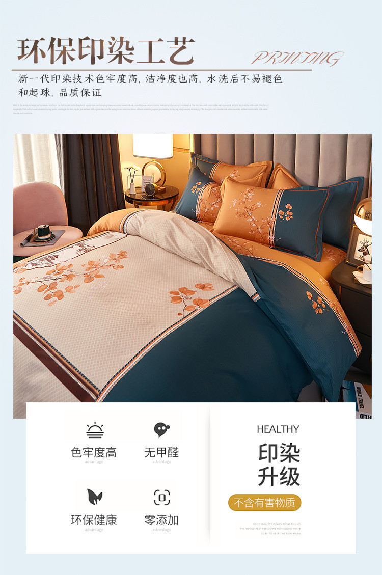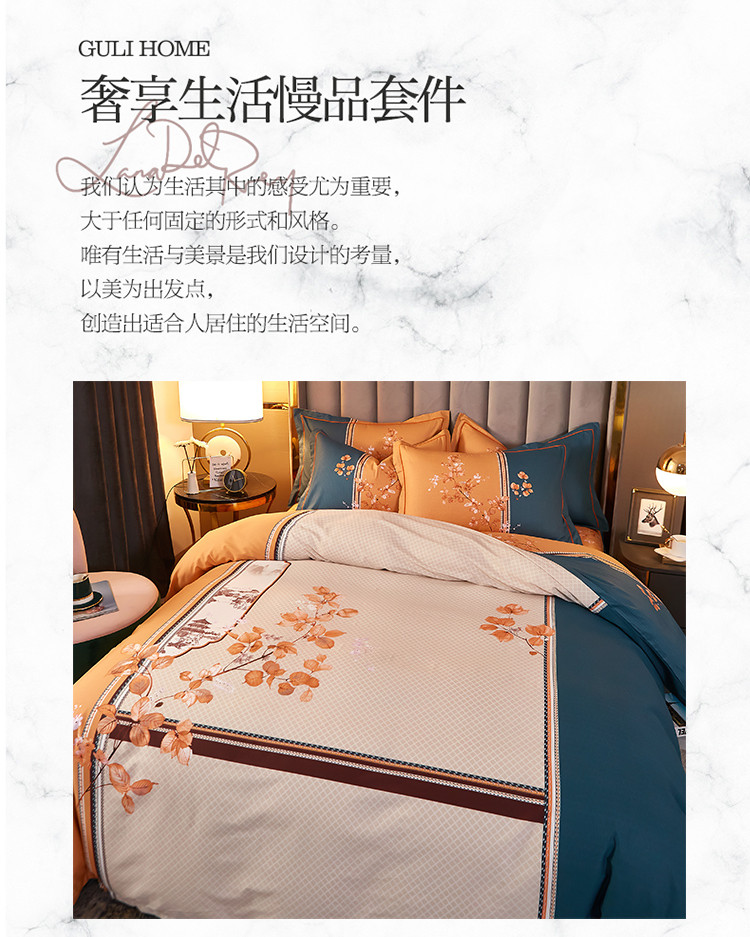 商品名称:雲归梦2021全棉大版四件套第二批花卉格调系列 江山如画橙