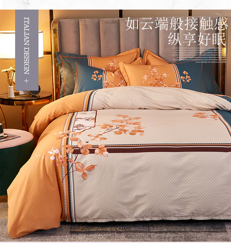 雲归梦2021全棉大版四件套第二批花卉格调系列 江山如画橙
