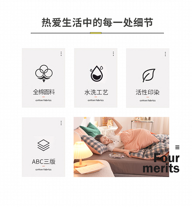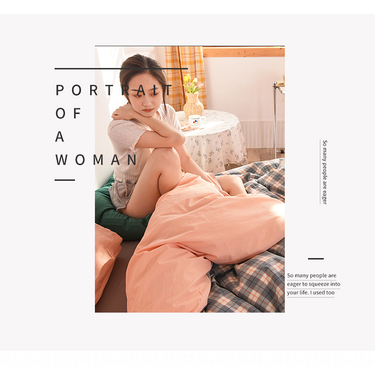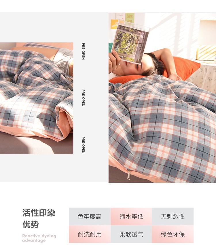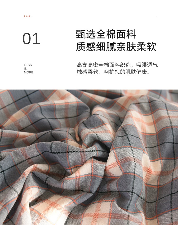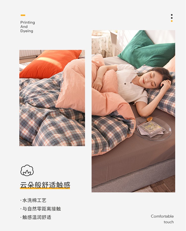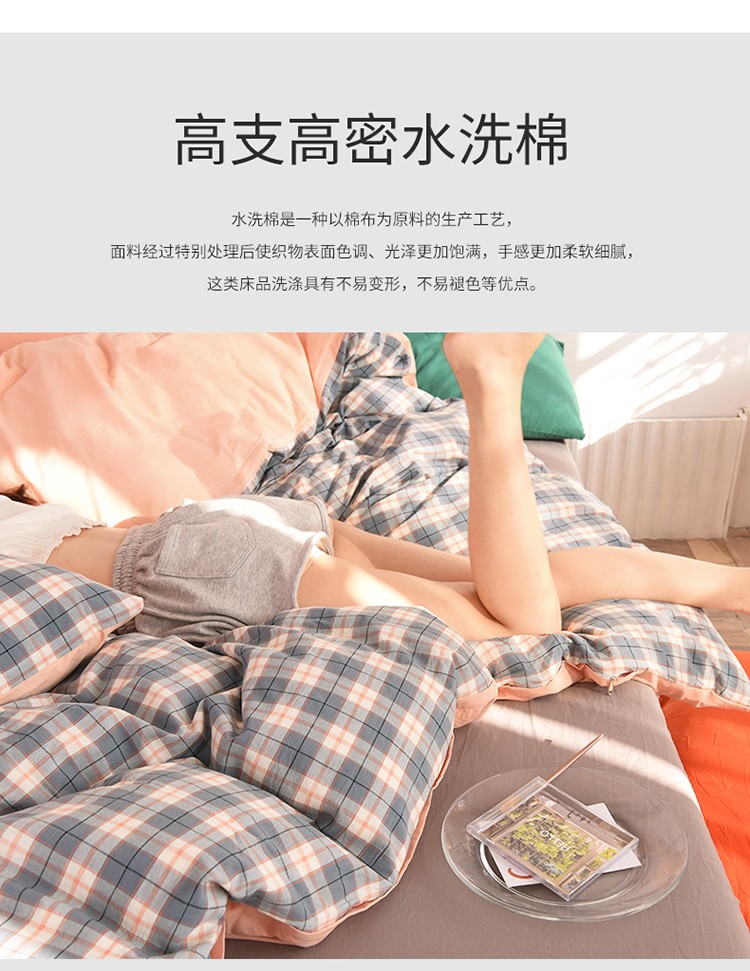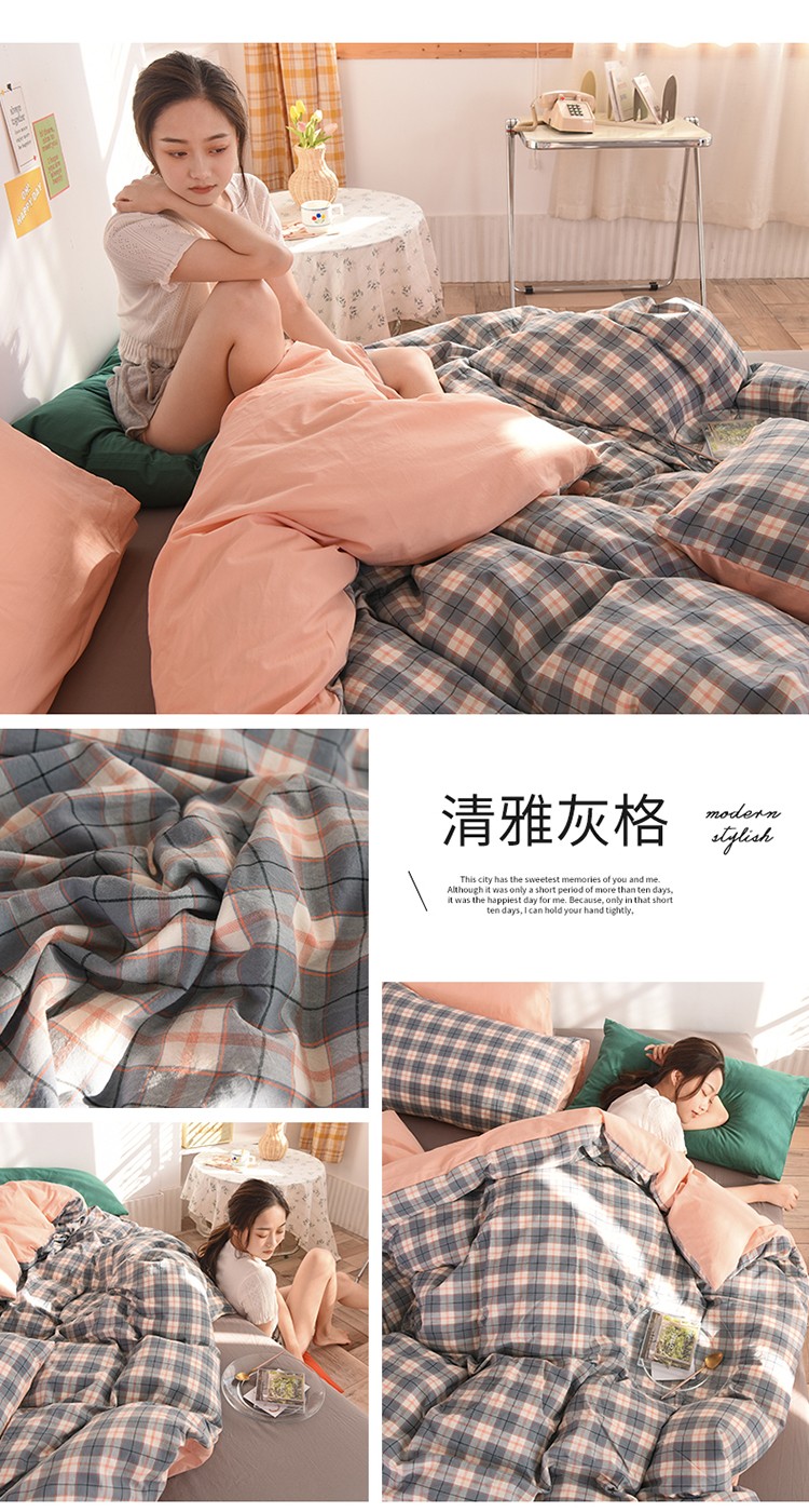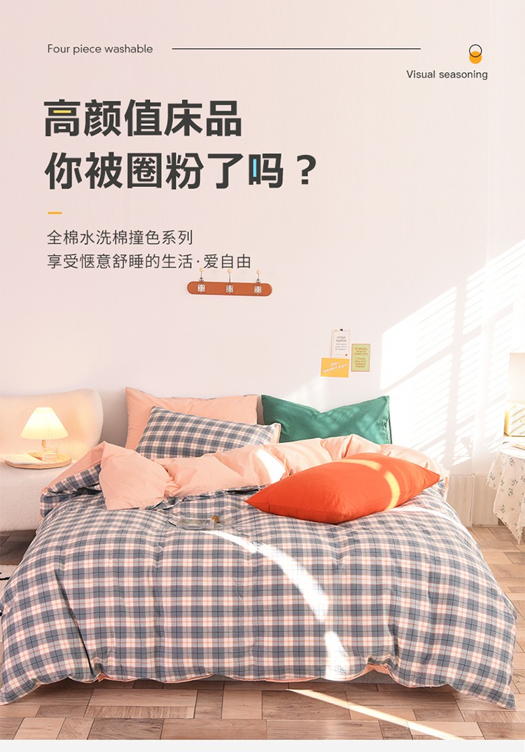 商品名称:慕梵 2021新款全棉水洗棉撞色系列四件套 清雅灰格