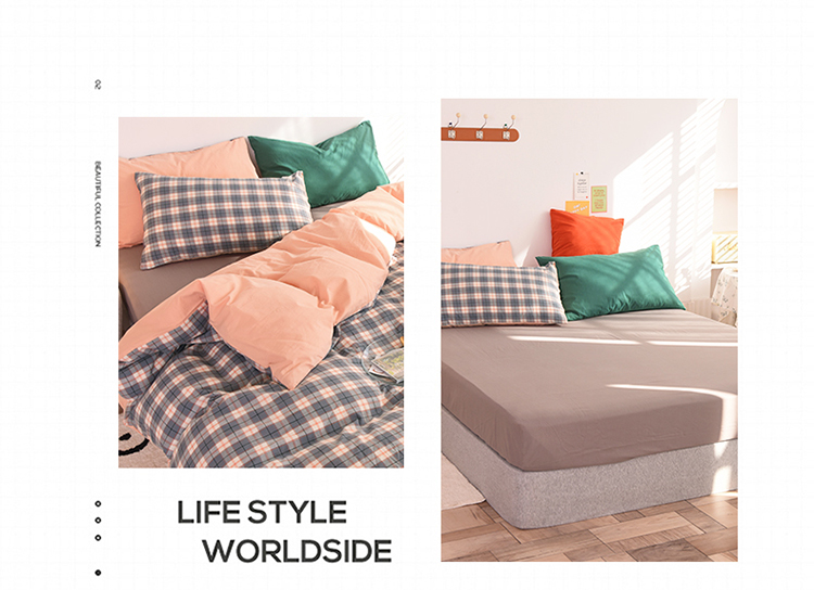 慕梵 2021新款全棉水洗棉撞色系列四件套 清雅灰格