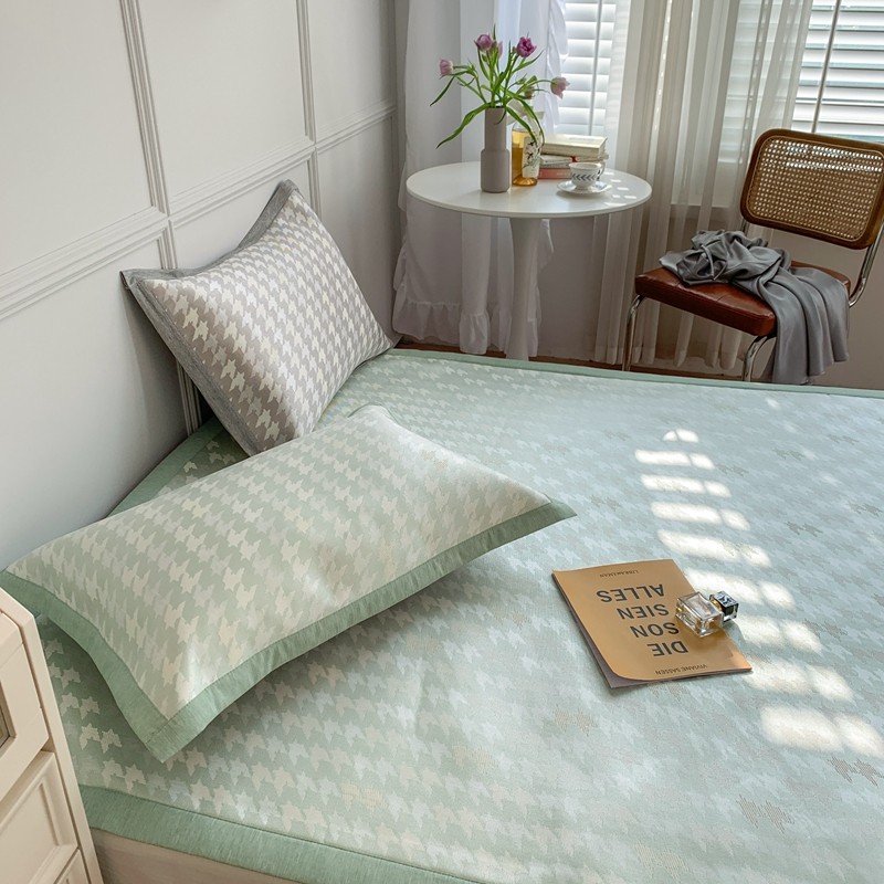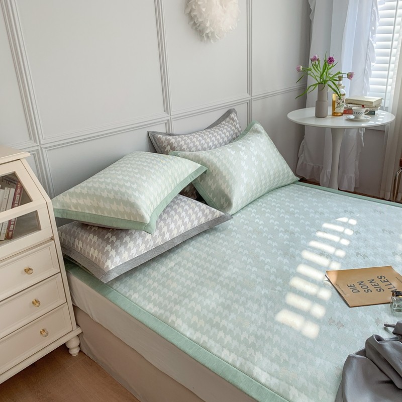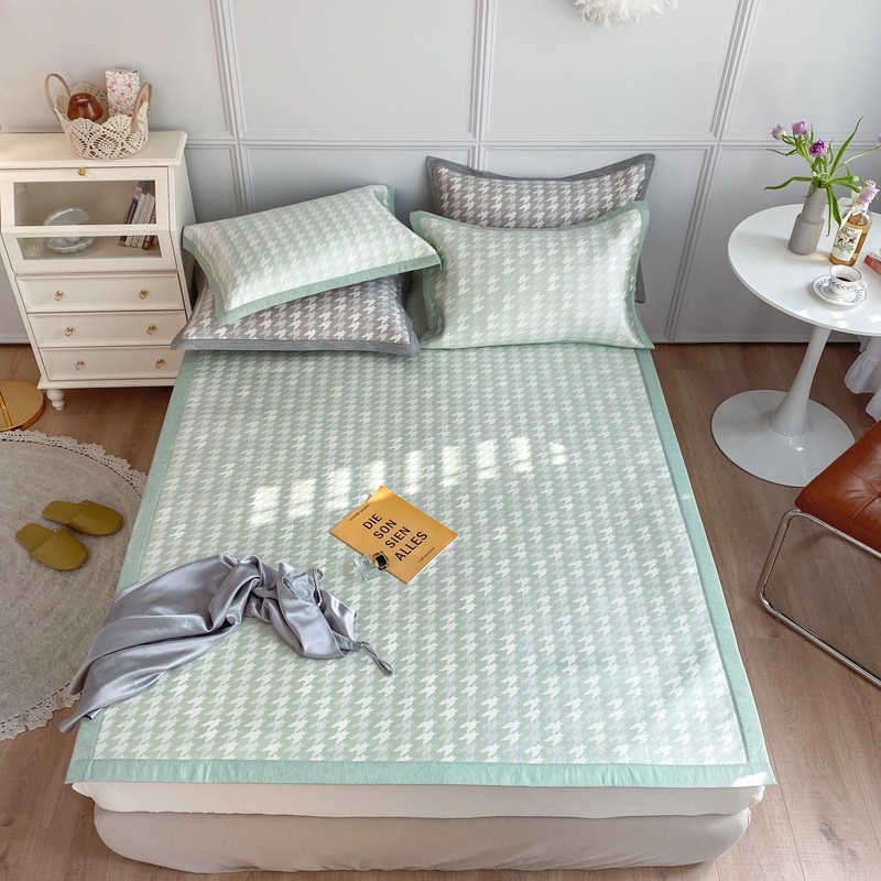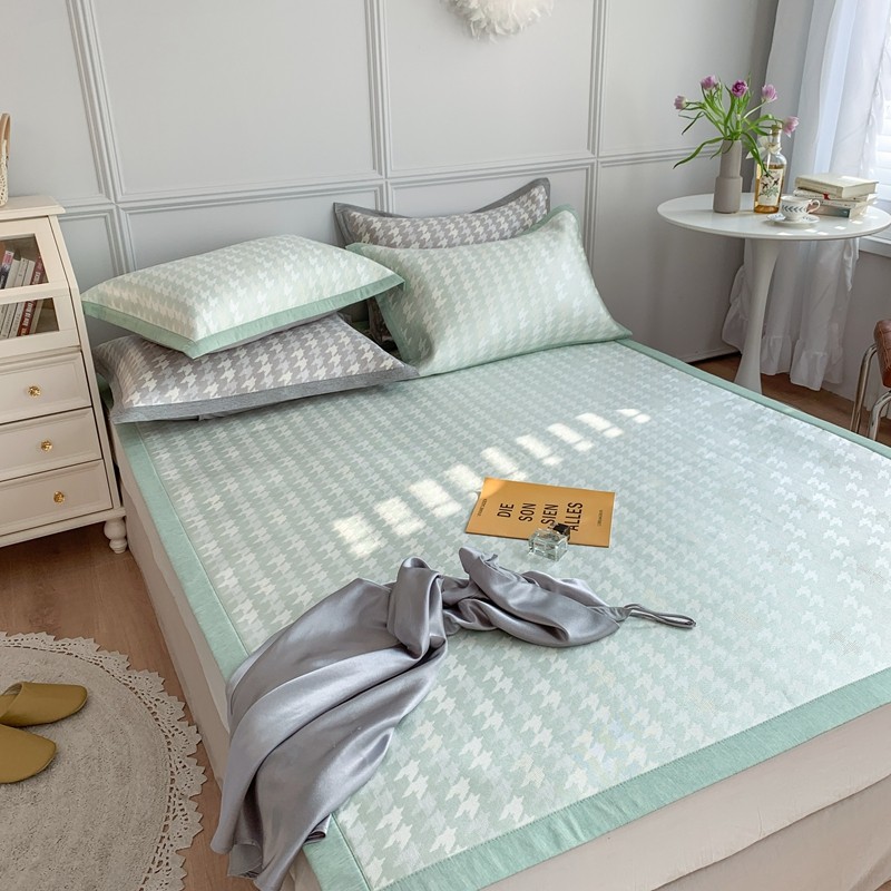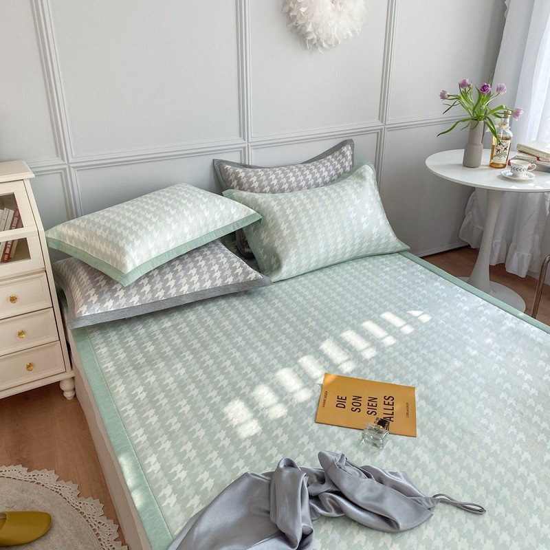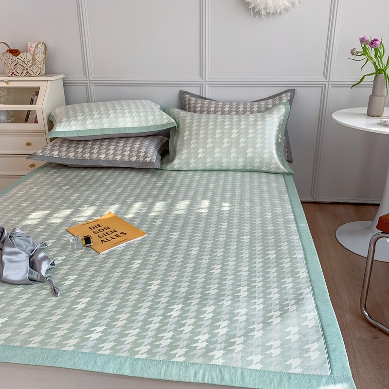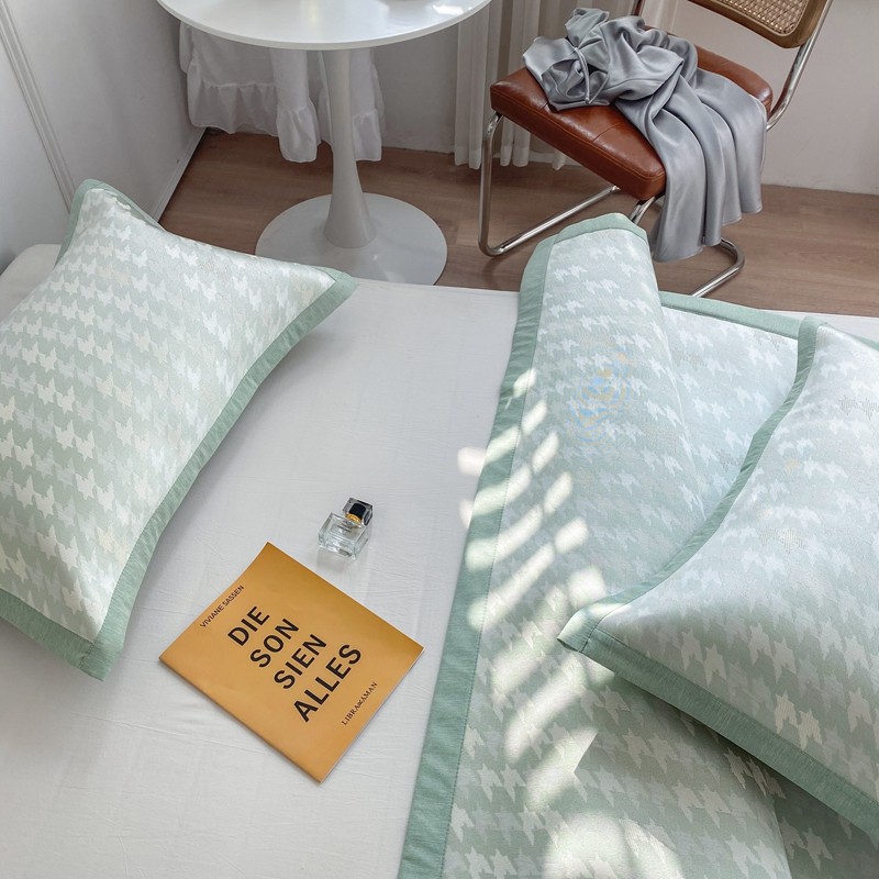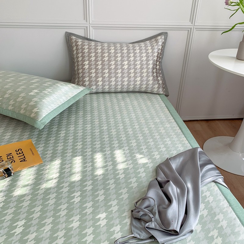 涞澳家纺 2021新款凉席三件套-千鸟格 千鸟格-绿
