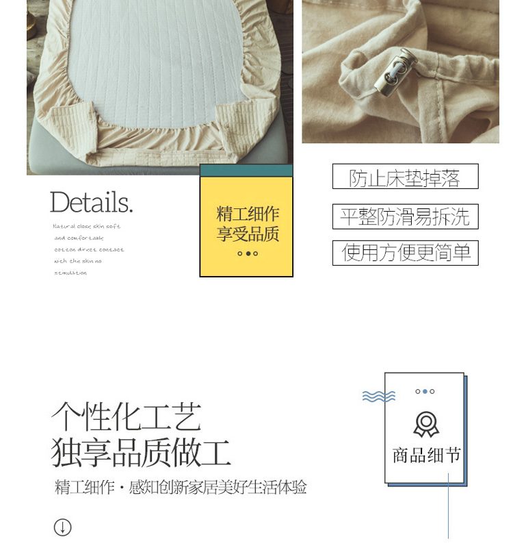 商品名称:菊上 2021新款日式-水洗棉床笠(全棉夹棉款) 卡奇
