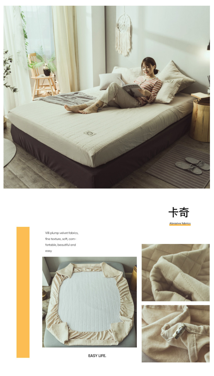 菊上 2021新款日式-水洗棉床笠(全棉夹棉款) 卡奇