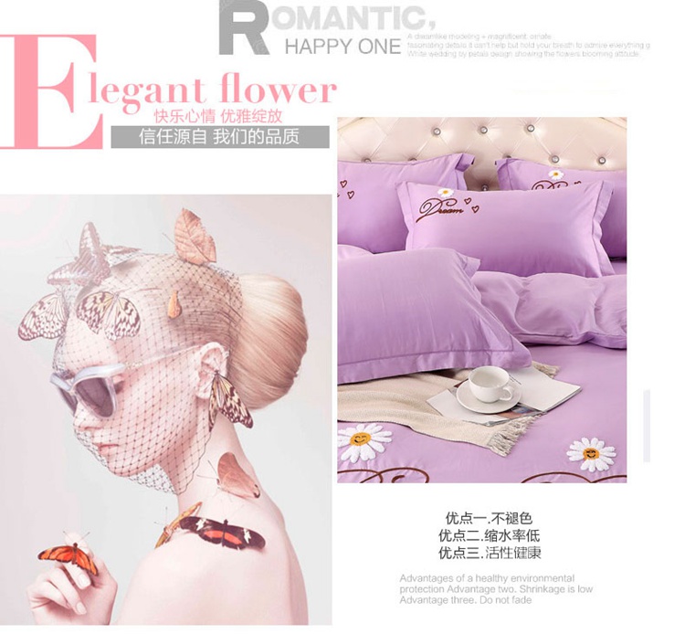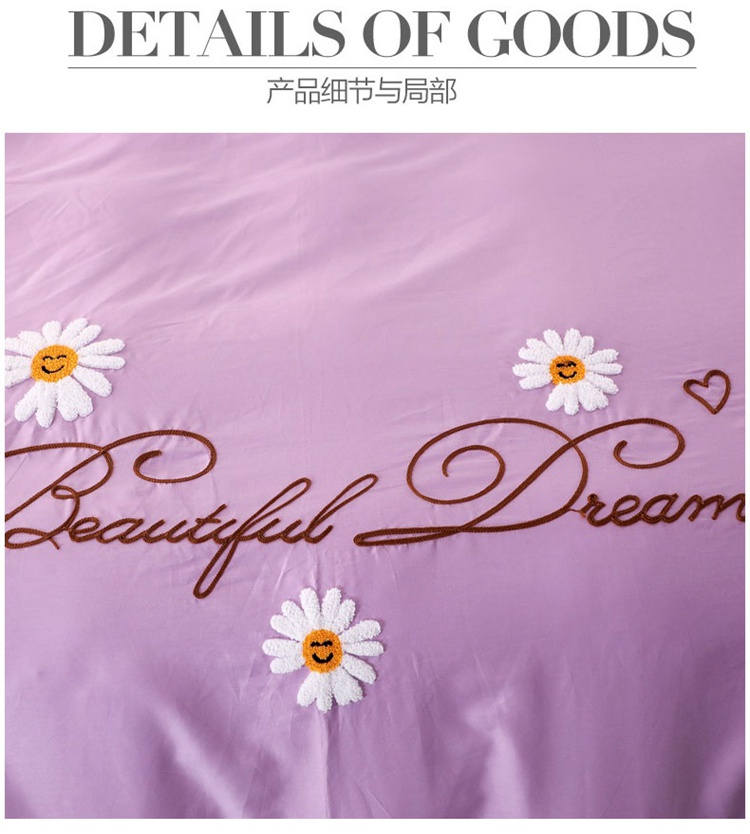 商品名称:晶缦家纺 美梦雏菊全棉13372毛巾绣四件套 美梦雏菊-浅紫