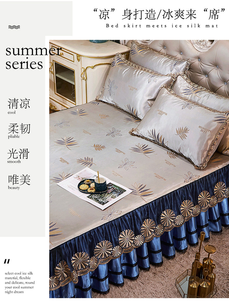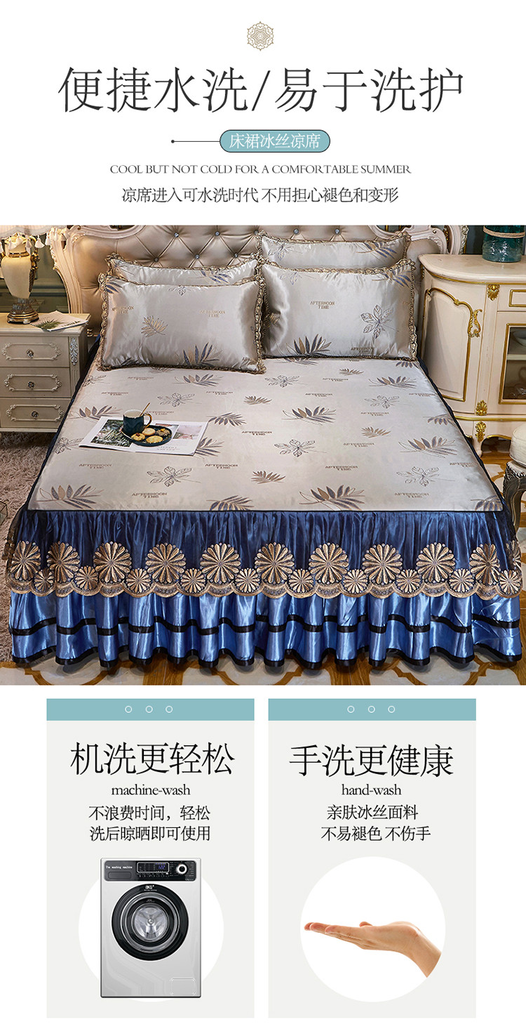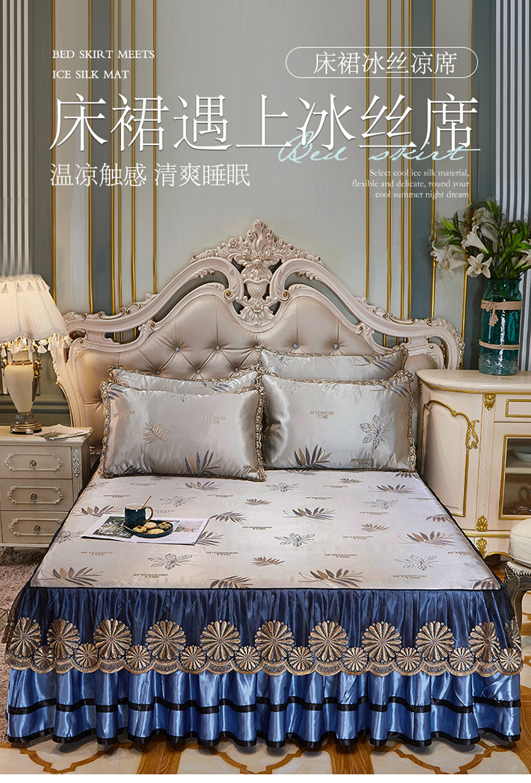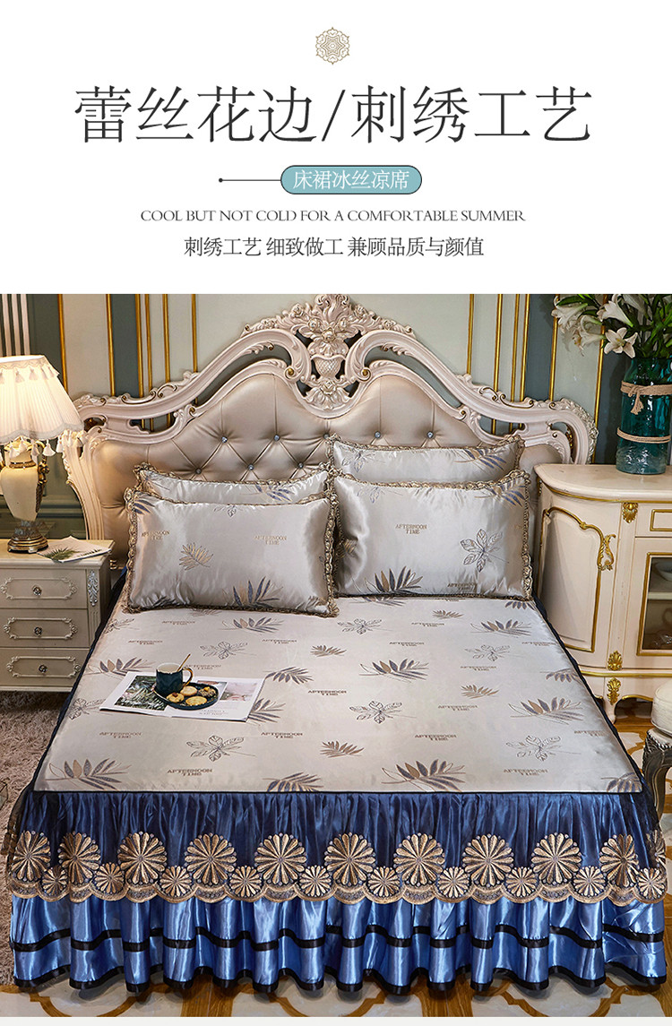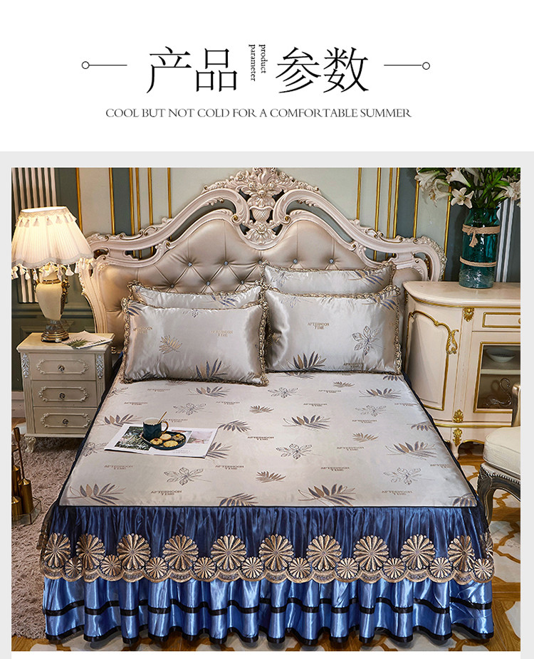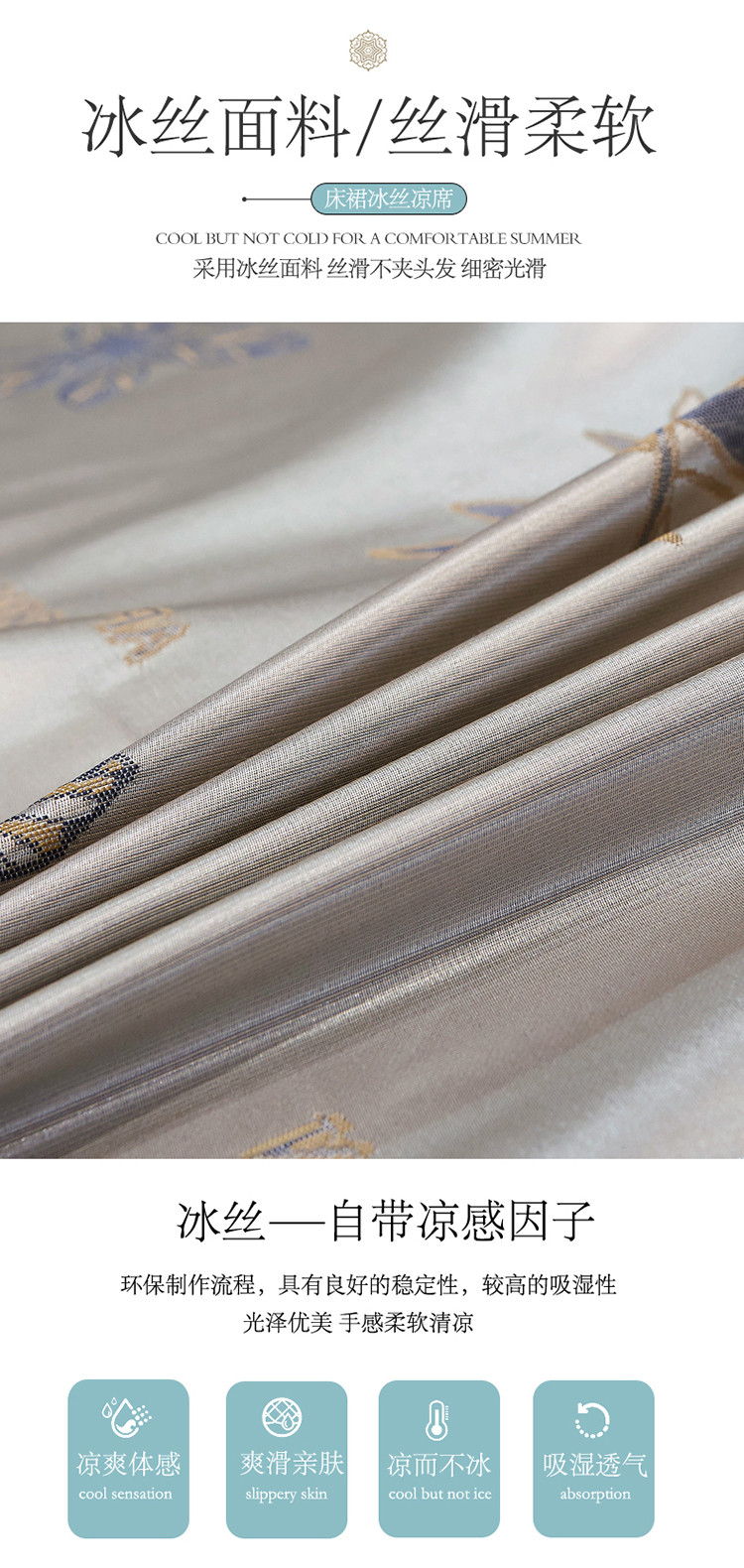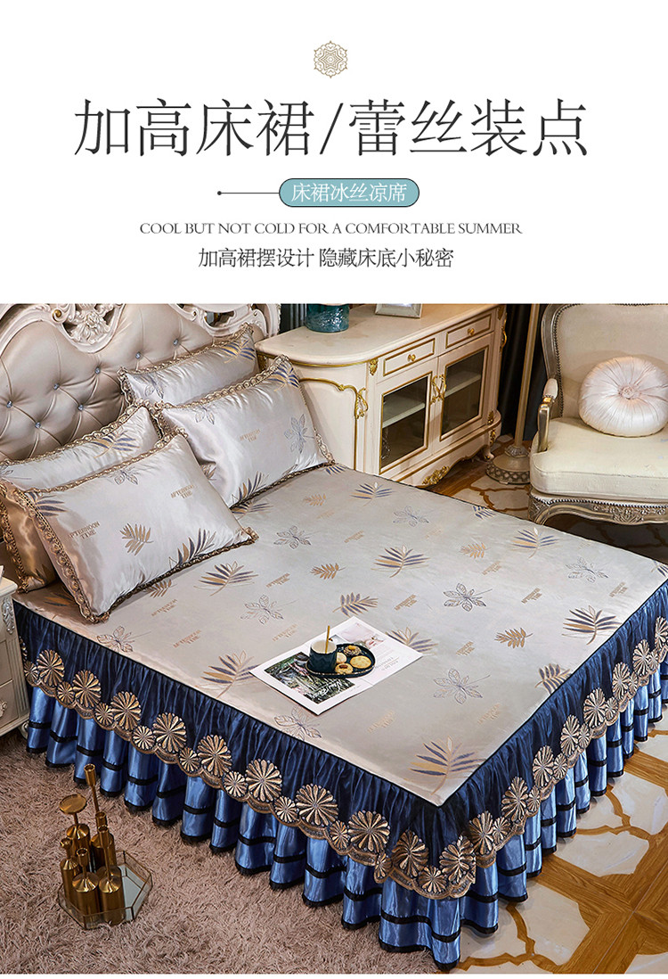商品名称:网红馆 2025新款大提花冰丝凉席床裙款三件套 午后时光