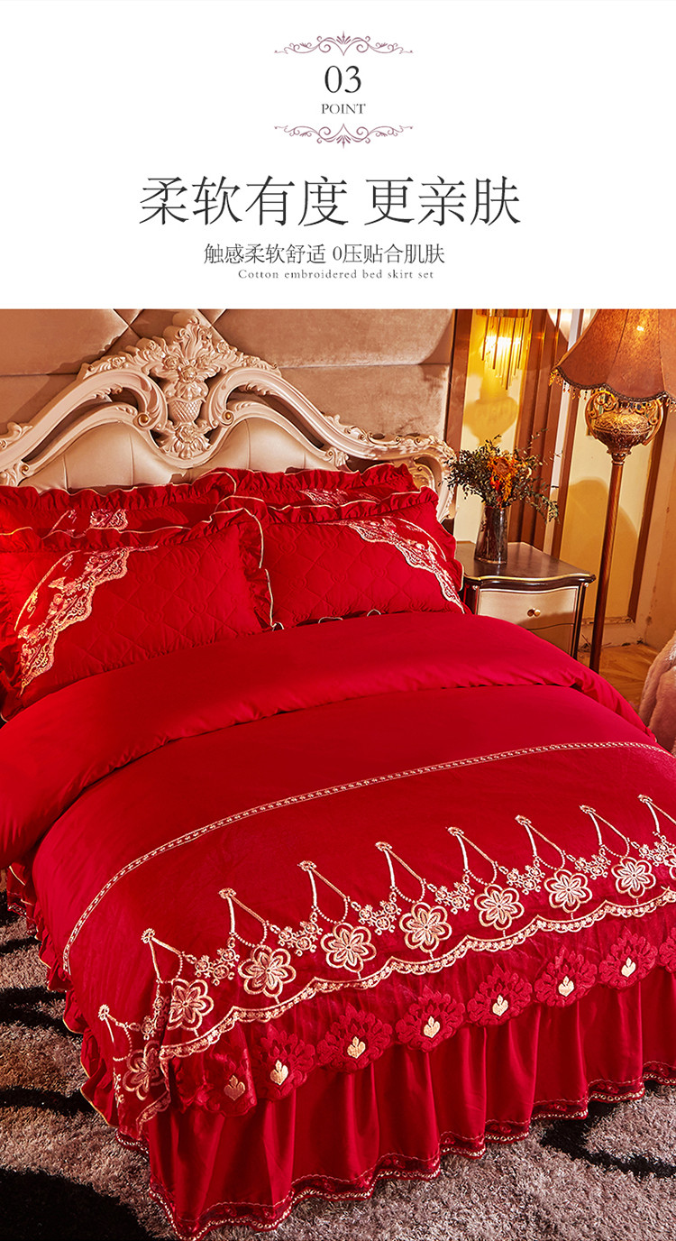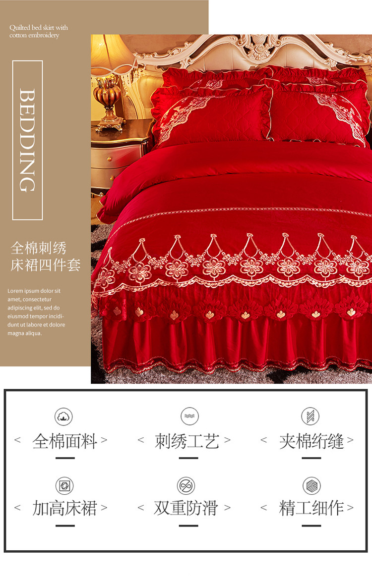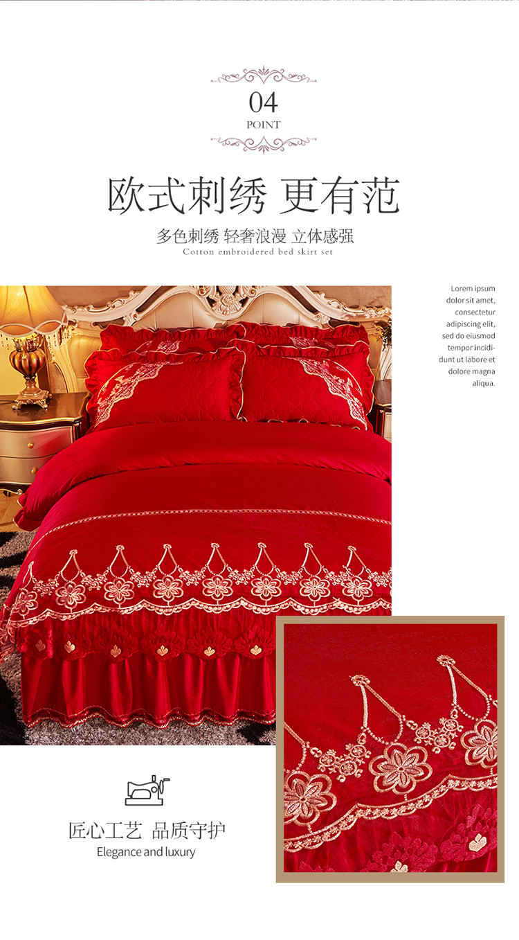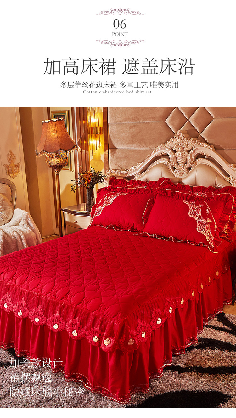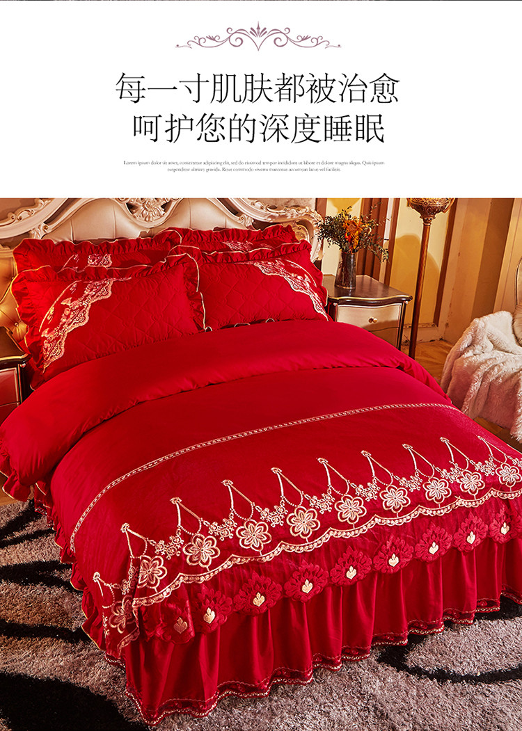 (总)宜凡家纺 2025新款婴儿绒压花全夹棉床裙四件套,韵雅-中国红,韵雅-黑天鹅