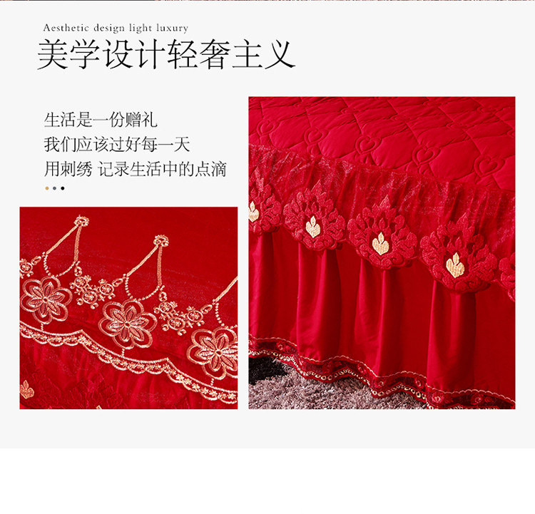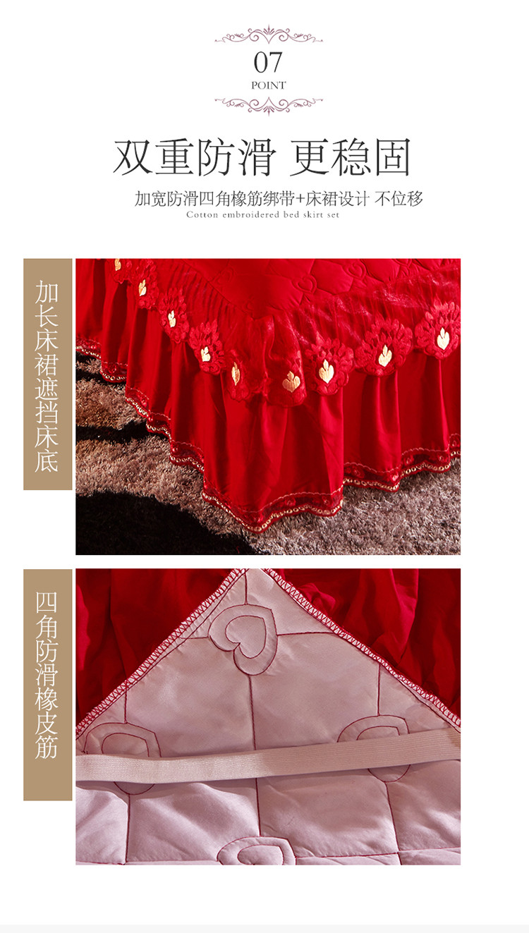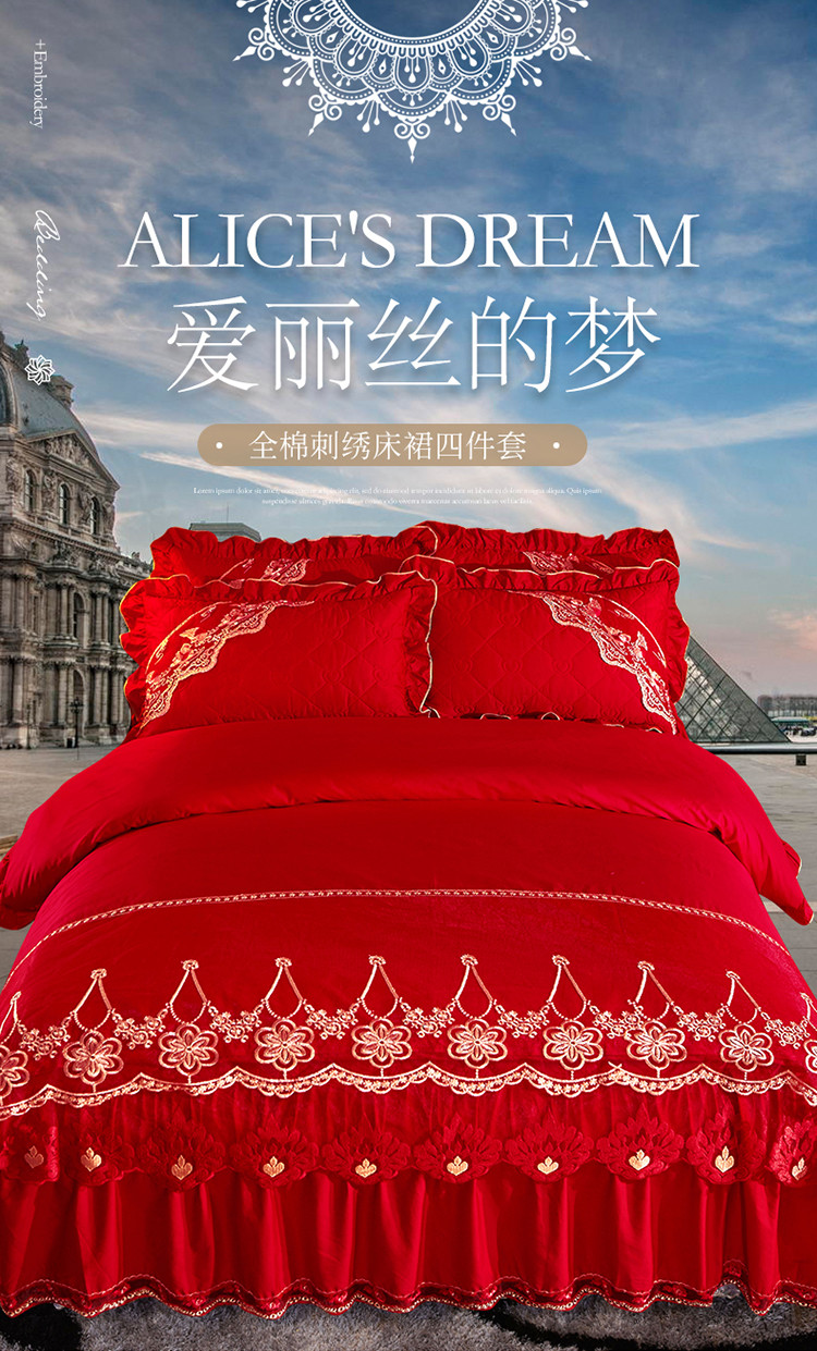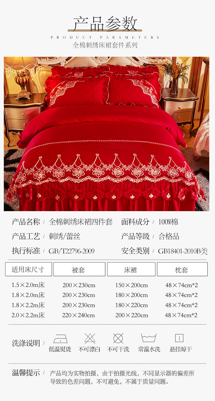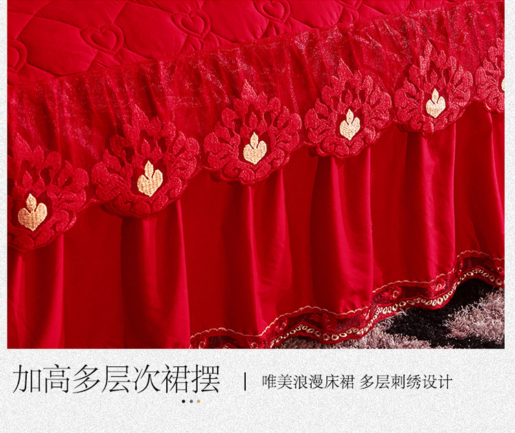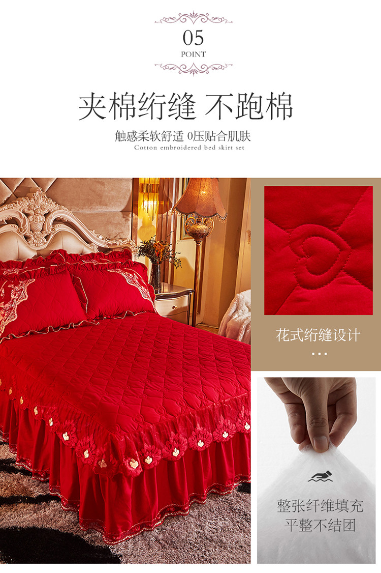 (总)宜凡家纺 2025新款婴儿绒压花全夹棉床裙四件套,韵雅-中国红,韵雅-黑天鹅