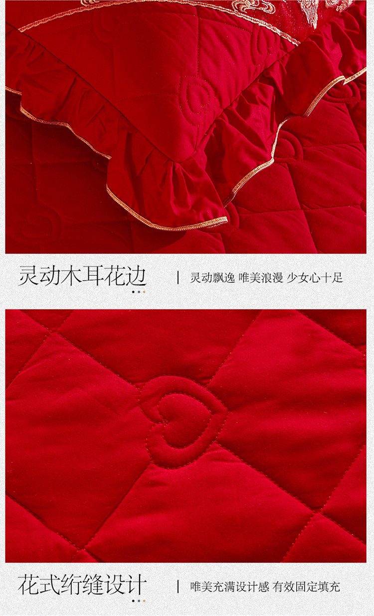 (总)宜凡家纺 2025新款婴儿绒压花全夹棉床盖四件套,韵雅-中国红,韵雅-黑天鹅