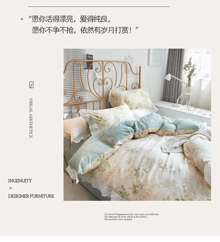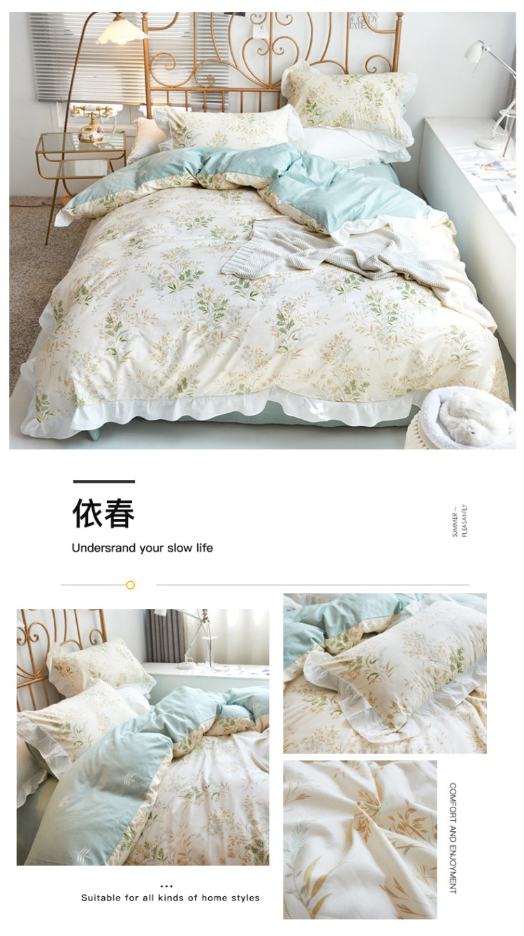 商品名称:捌月 2021新款全棉田园花边款四件套 依春