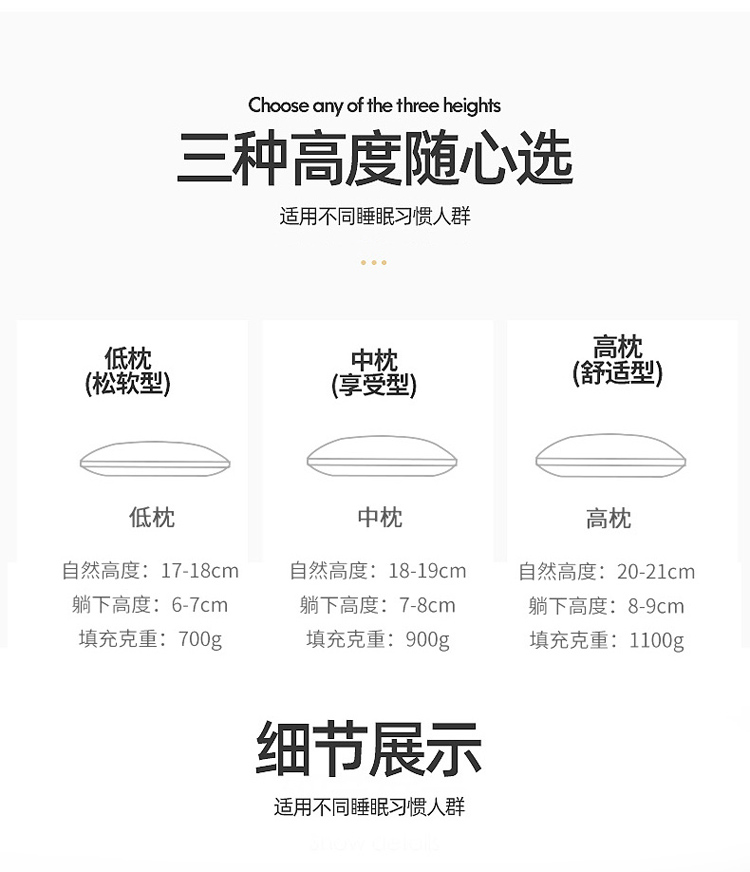 商品名称:(总)其乐枕芯 2021新款全棉绗缝羽丝绒枕超30天不退不换