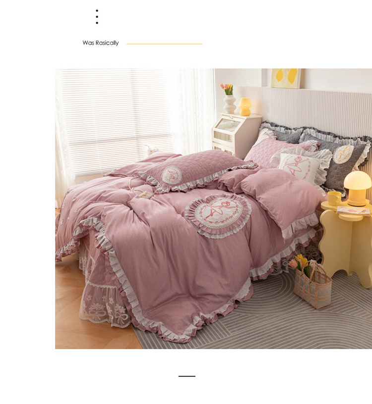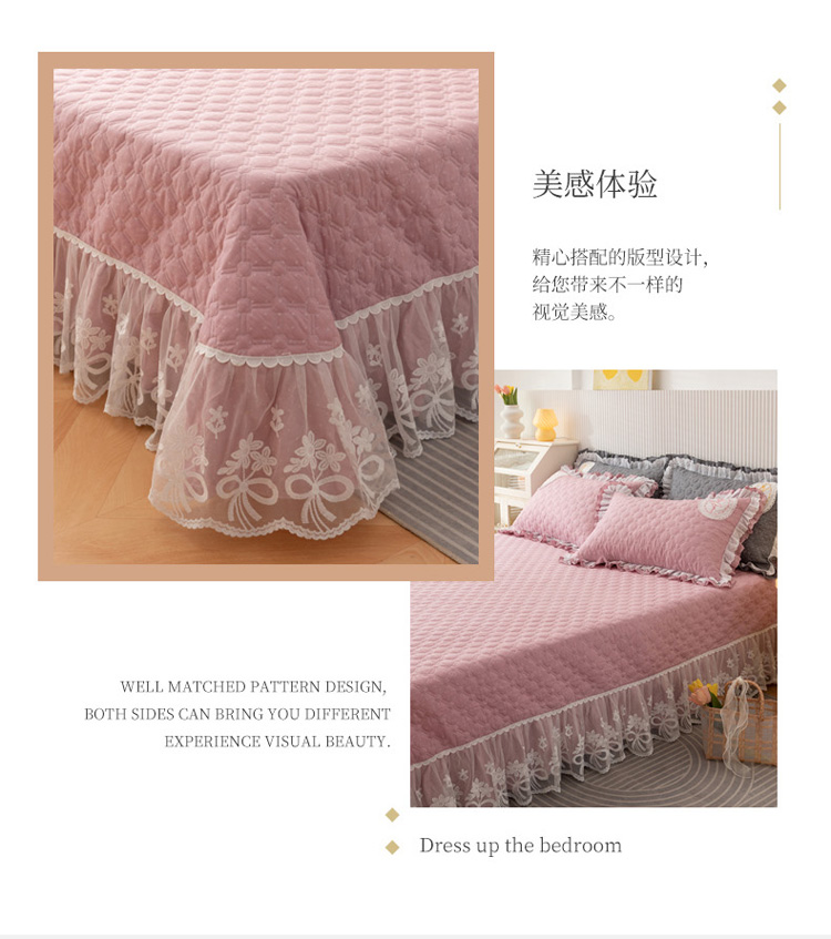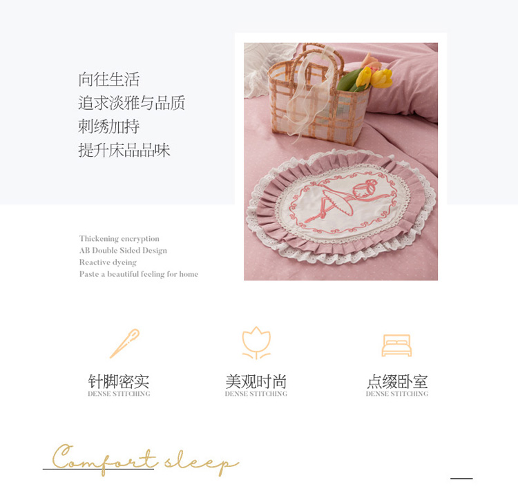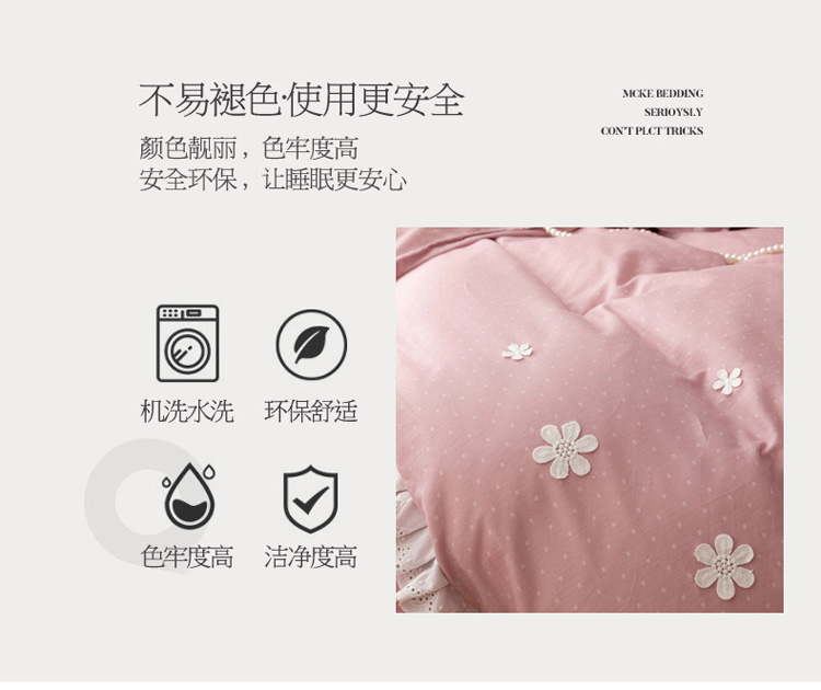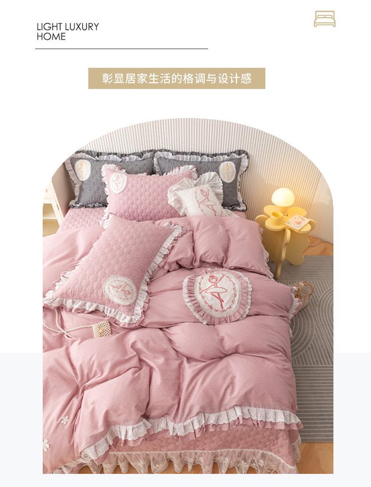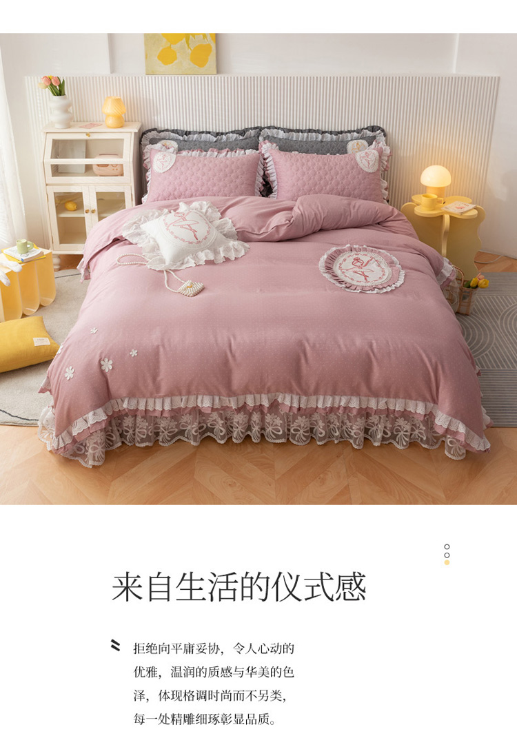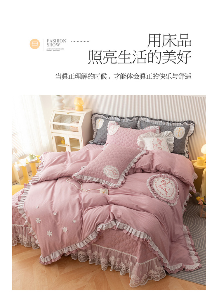当前位置: 91家纺网 > 商品网购 > 床品套件 > 四件套 > 全棉普通四件套 > 菊上家纺 2021新款全棉贴布绣花花边床盖四件套 伊莲-粉