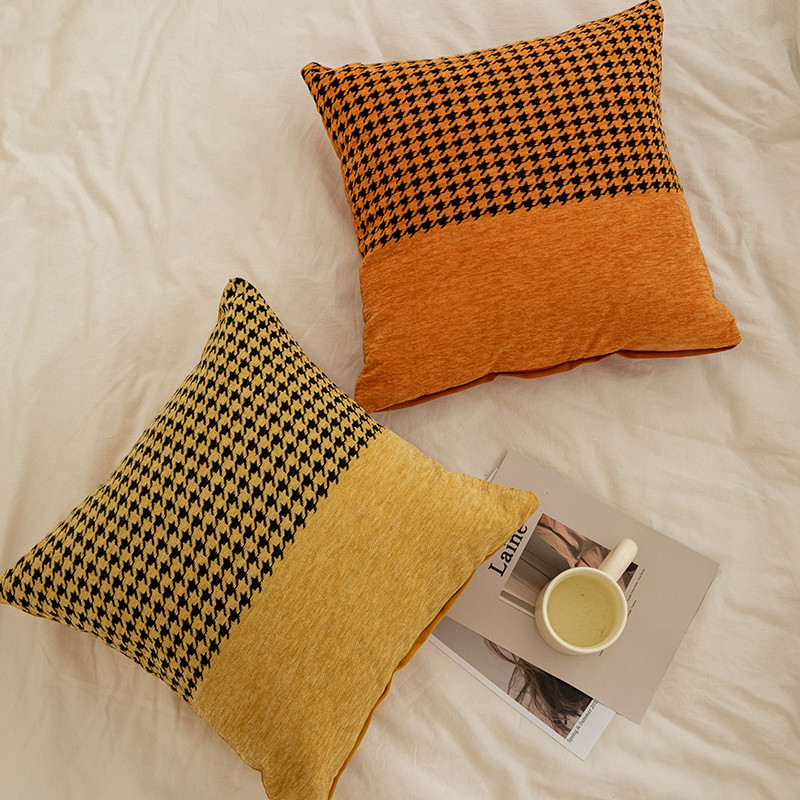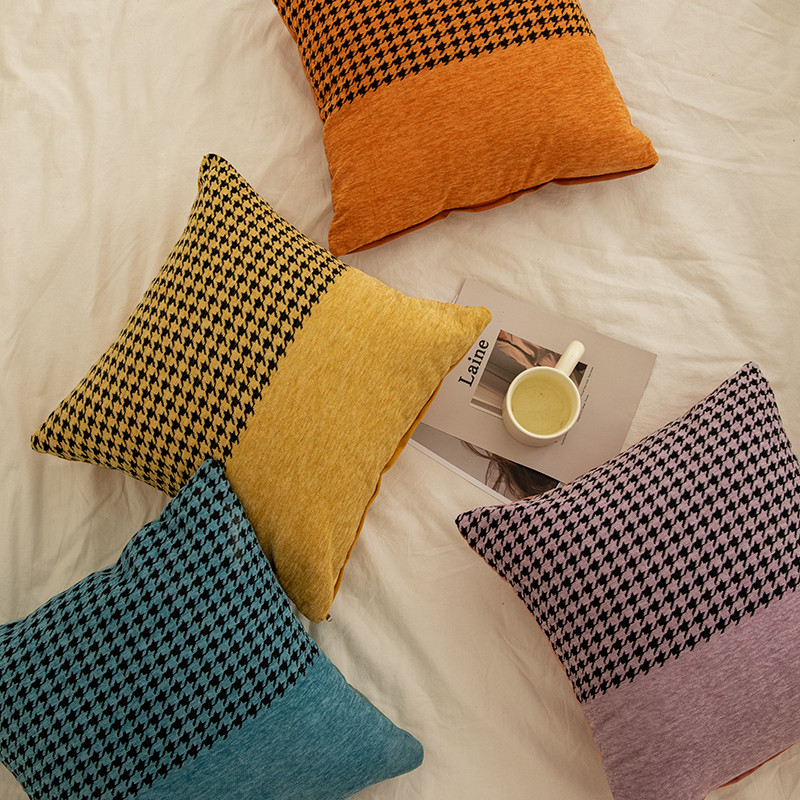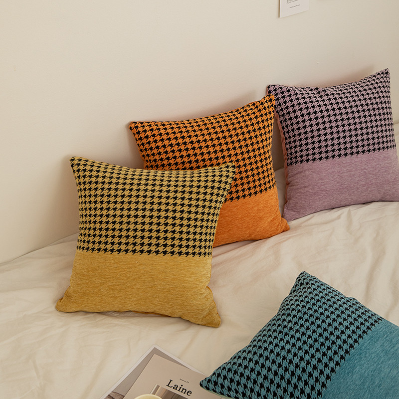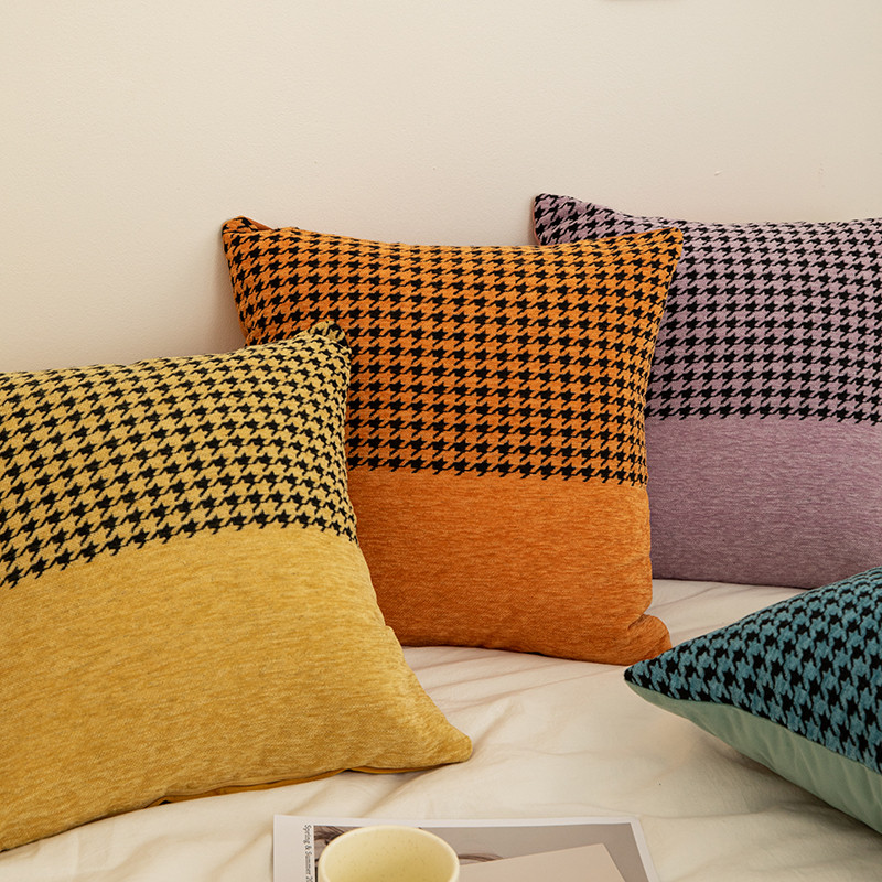 (总)希诺千鸟格抱枕 轻奢民宿北欧百搭风抱枕沙发靠垫,千鸟格-黄,千鸟格-桔,千鸟格-蓝,千鸟格-紫