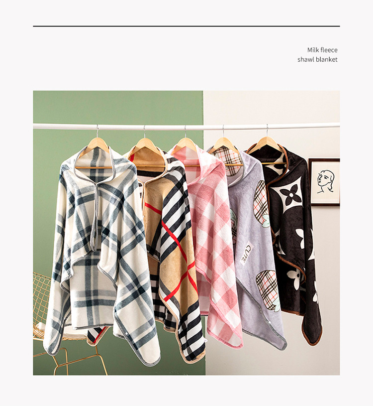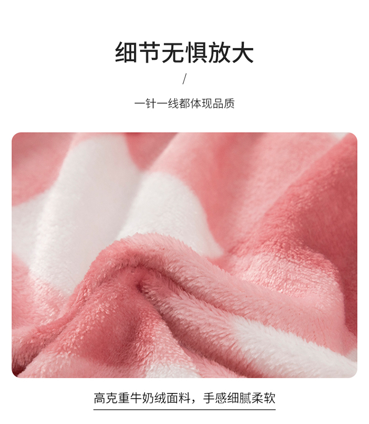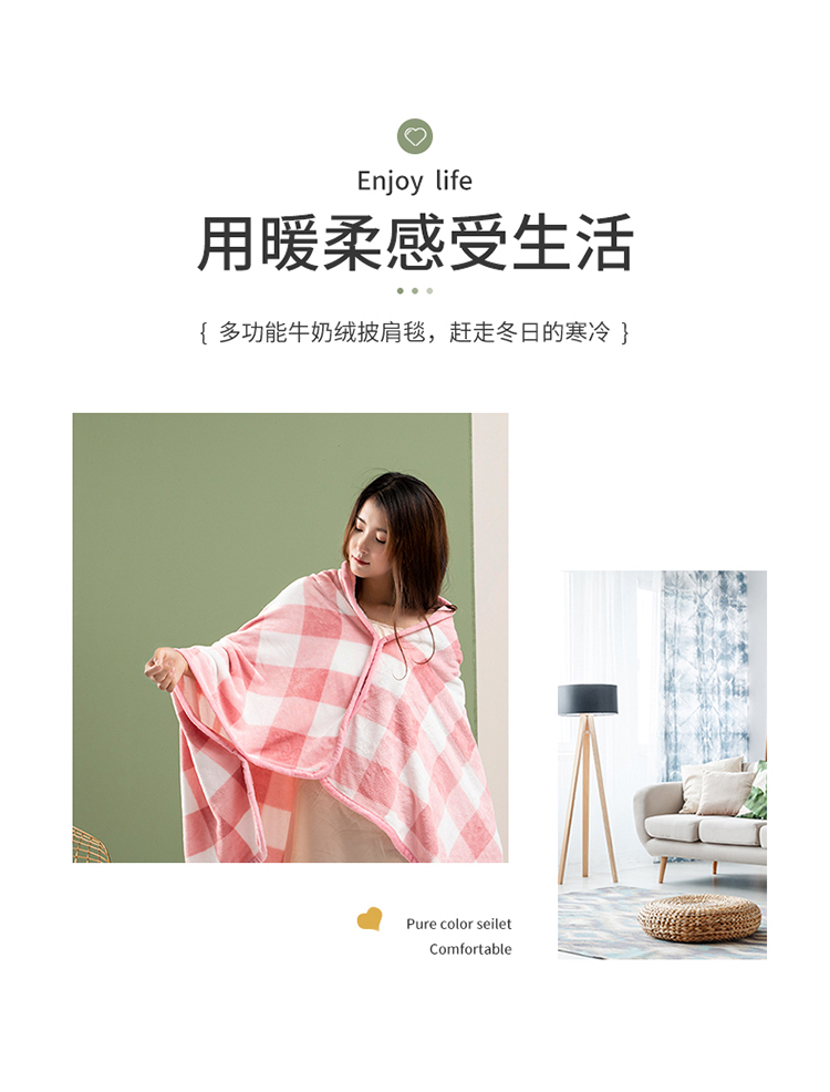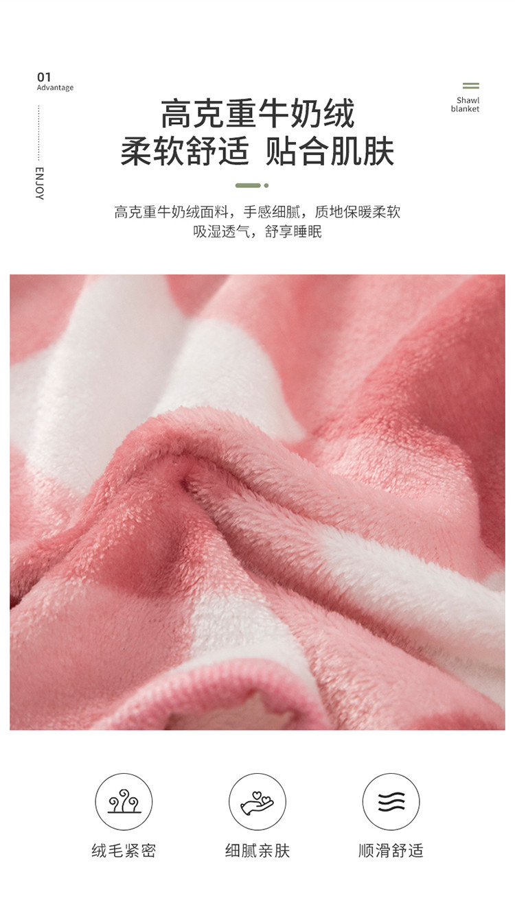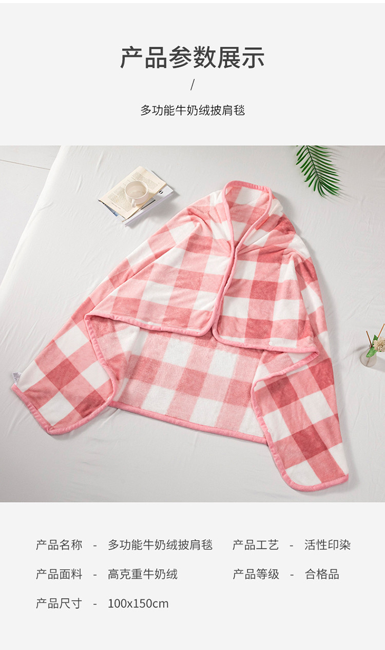 网客家纺 2024新款多功能牛奶绒披肩毯 粉色格