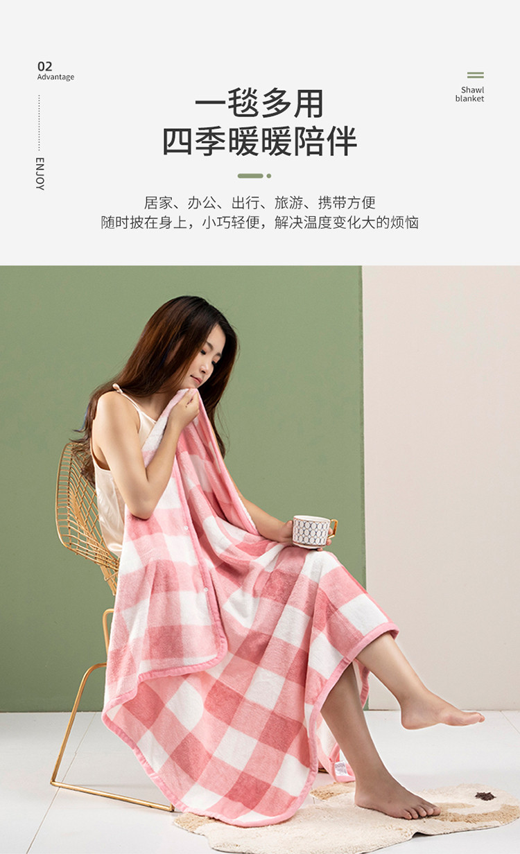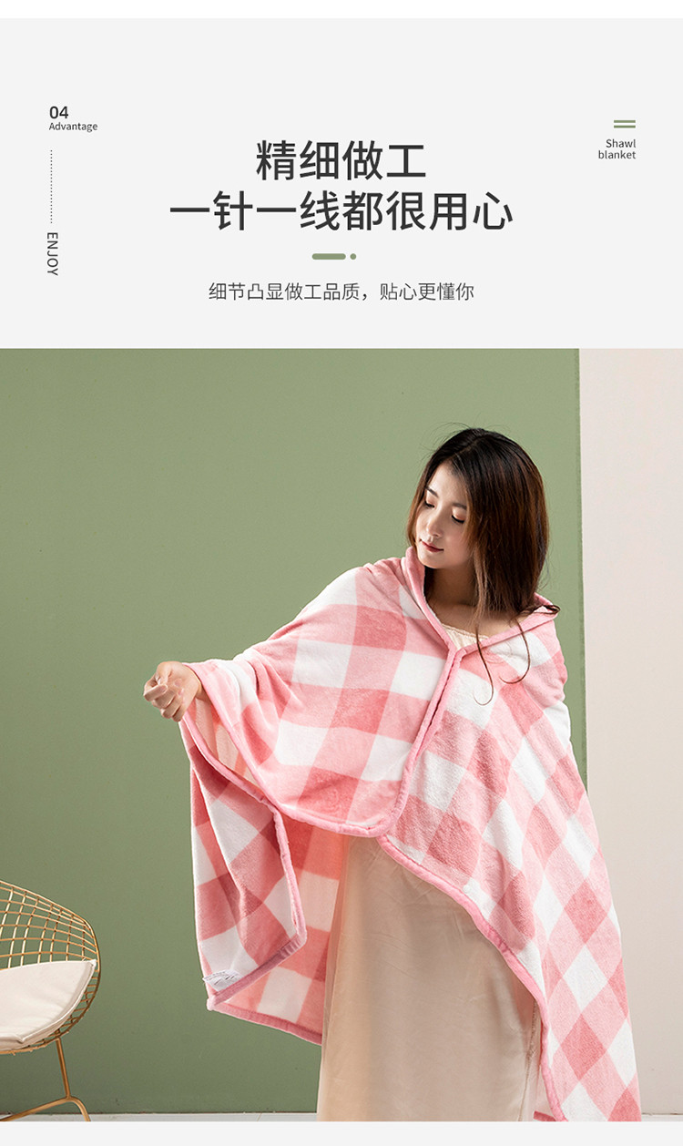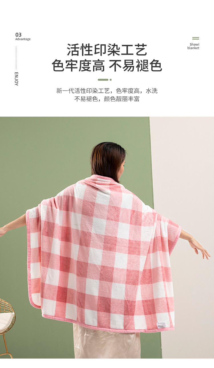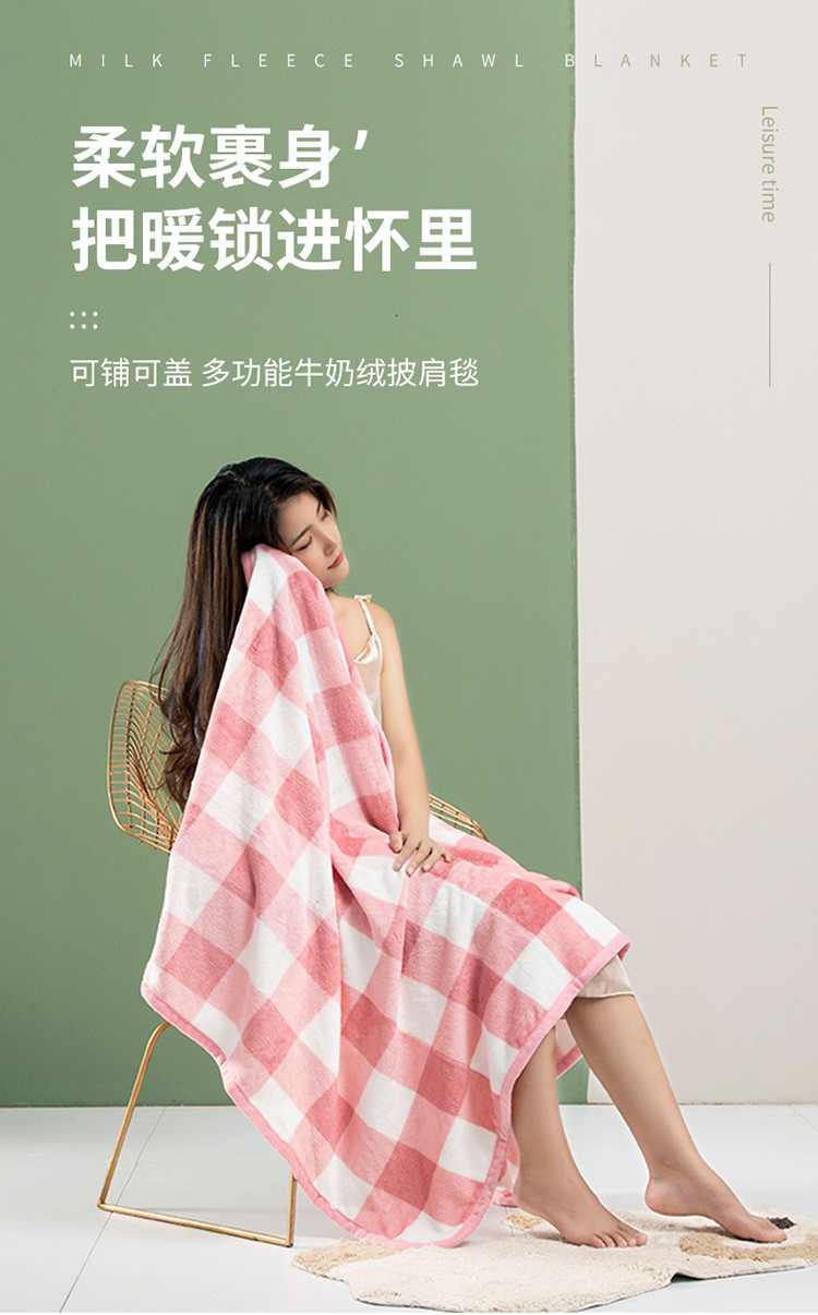 商品名称:网客家纺 2024新款多功能牛奶绒披肩毯 粉色格