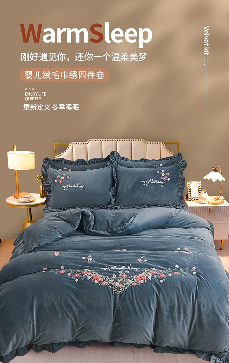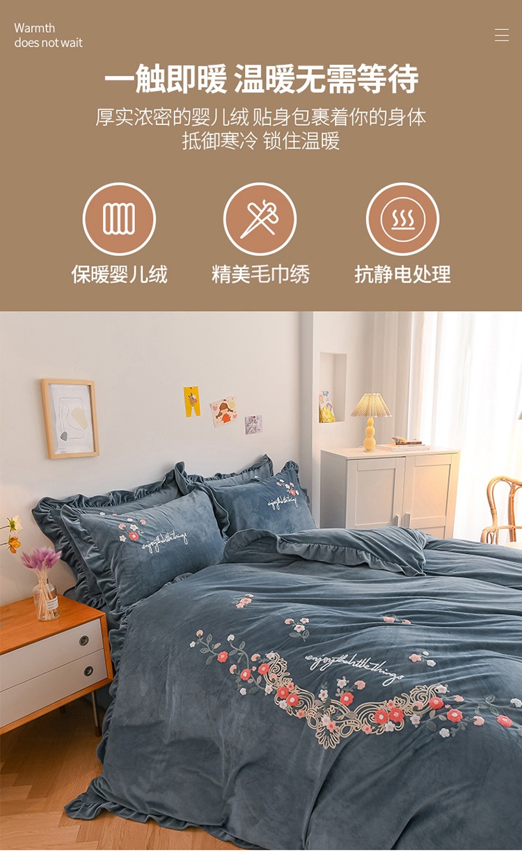 (总)诗黛尔 2021新款秋冬锦簇花香保暖婴儿绒毛巾绣四件套
