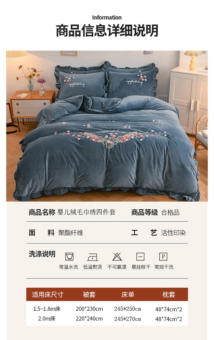 商品名称:(总)诗黛尔 2021新款秋冬锦簇花香保暖婴儿绒毛巾绣四件套