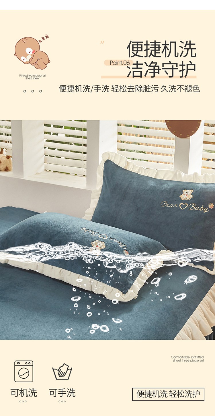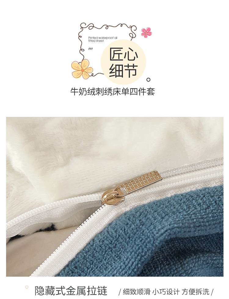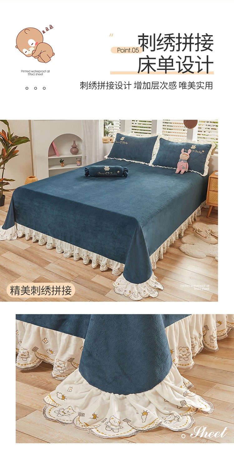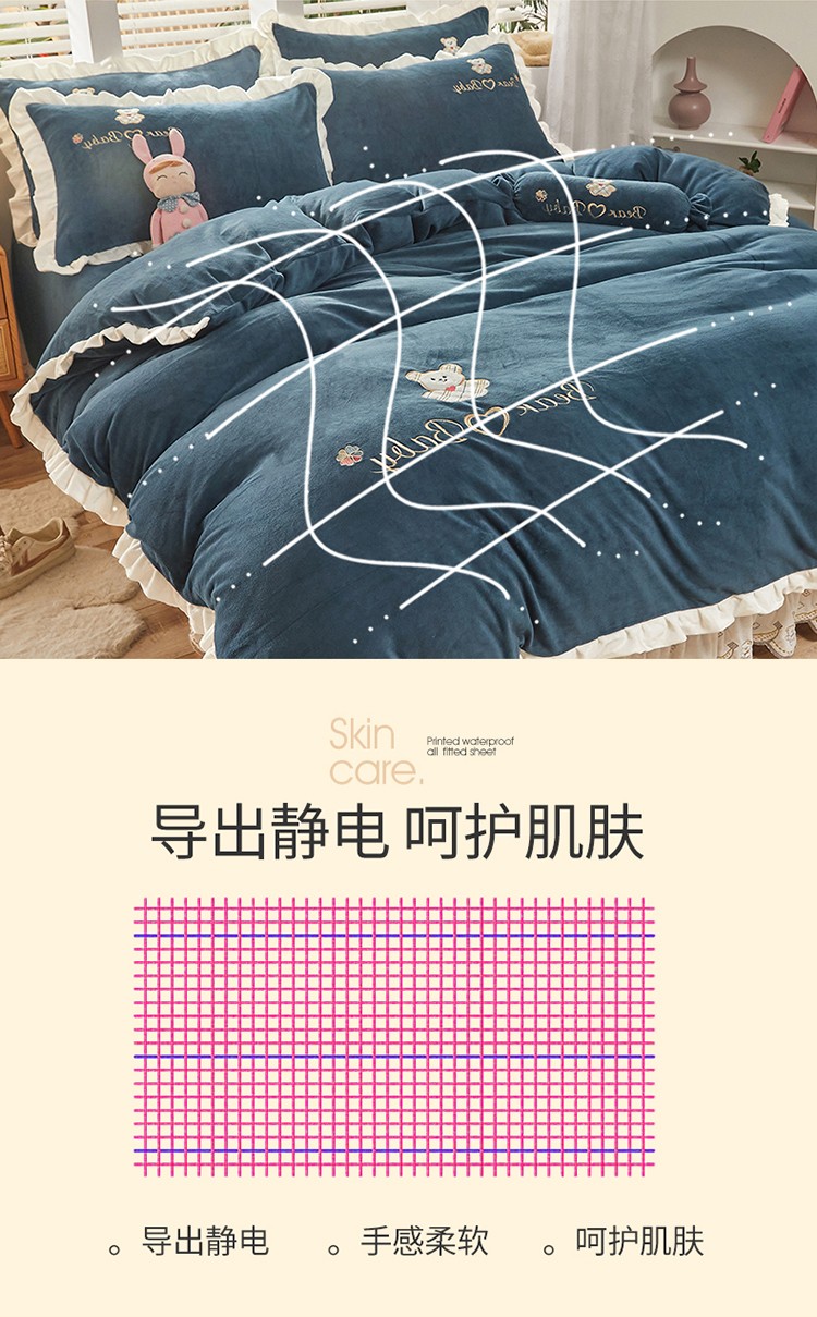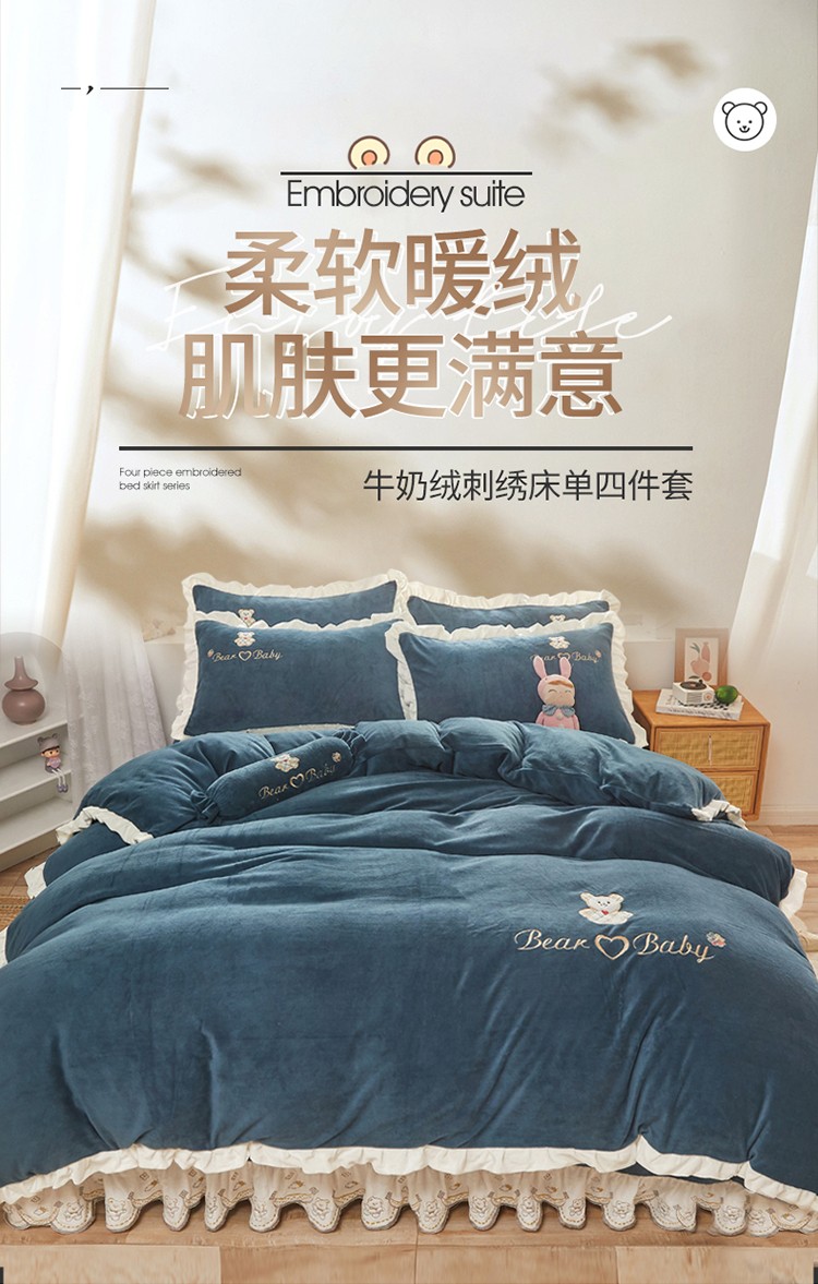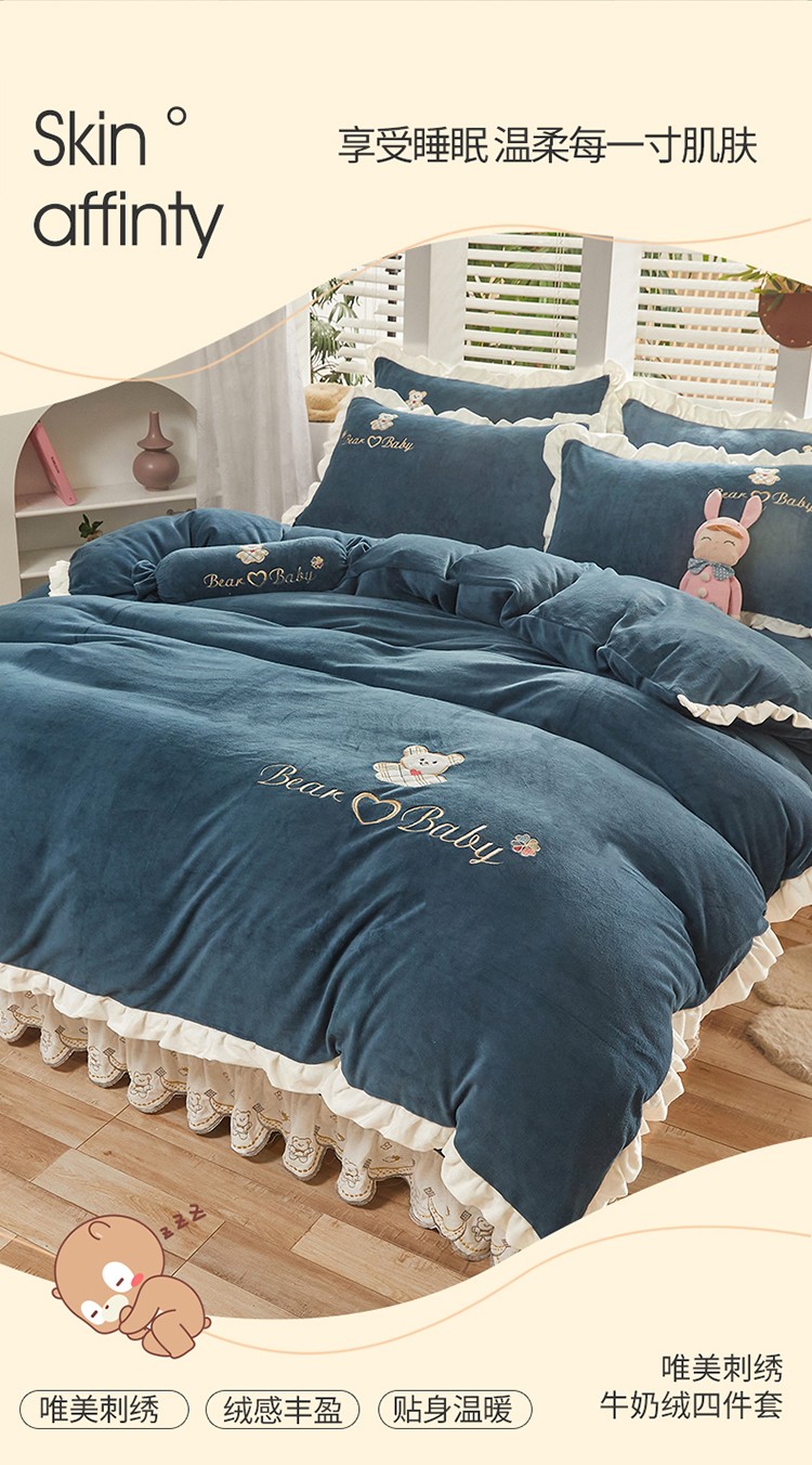 商品名称:宜凡家纺 2021新款牛奶绒绣花熊床单四件套 可爱熊-藏蓝