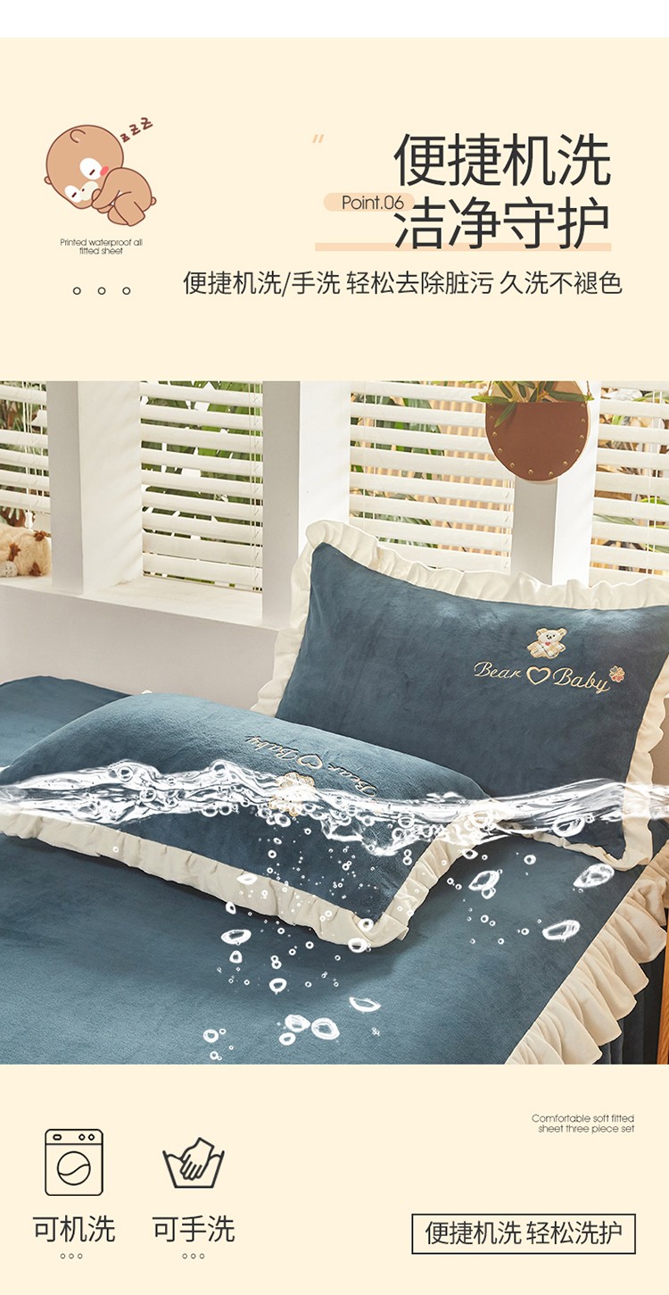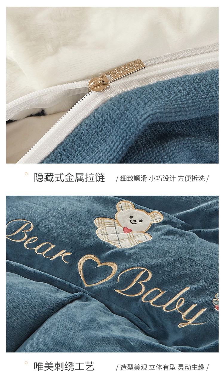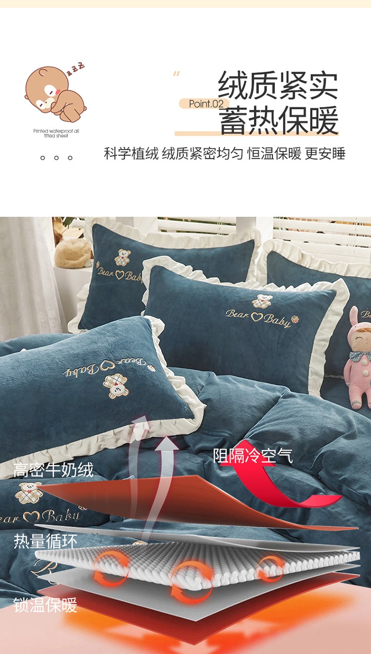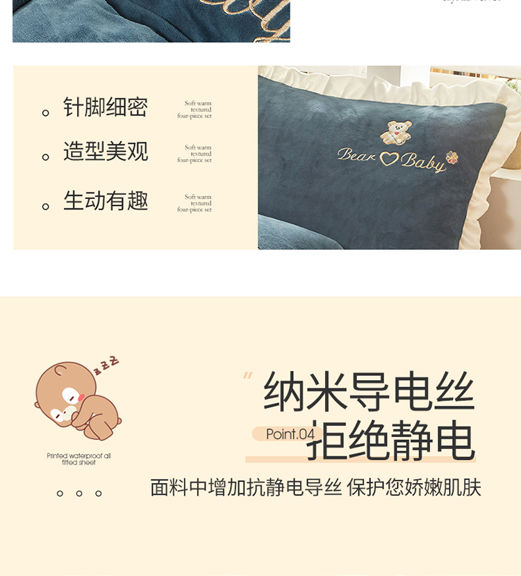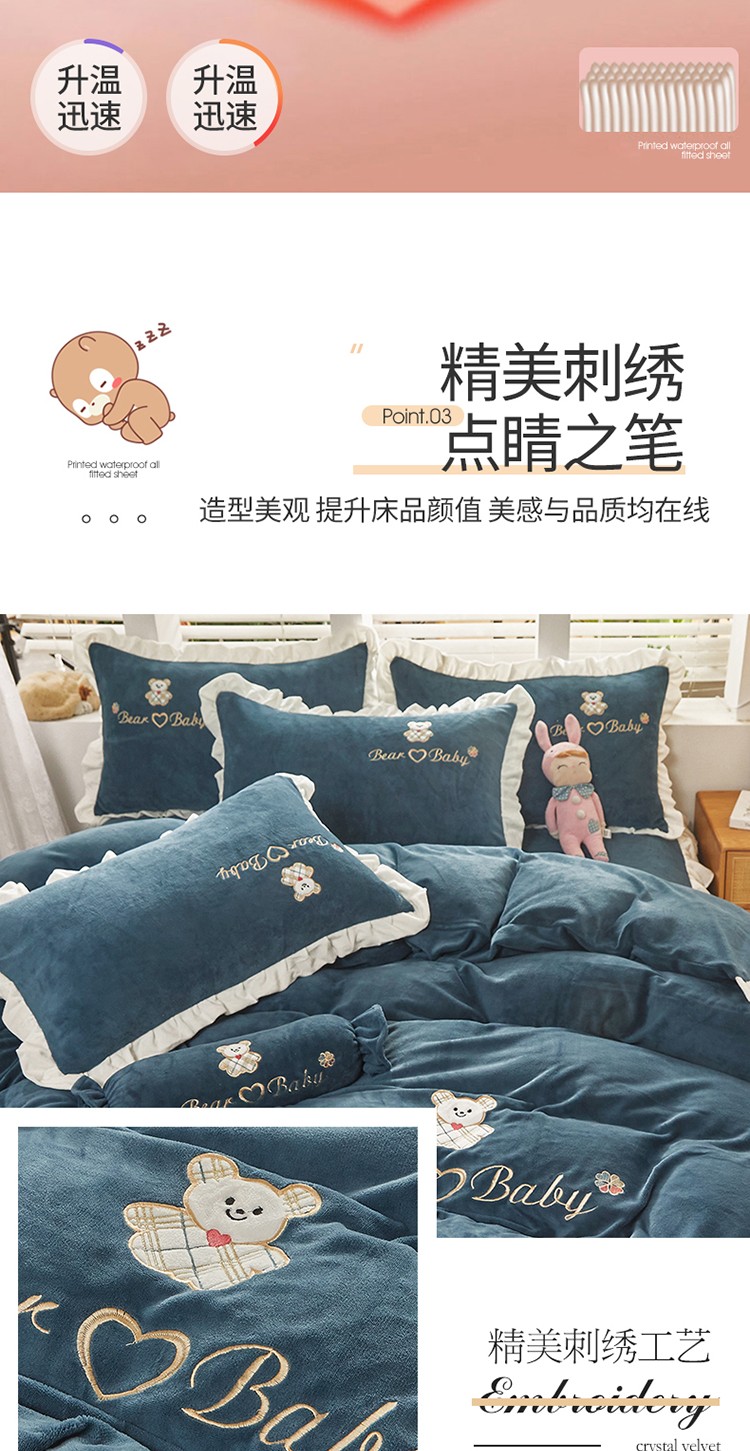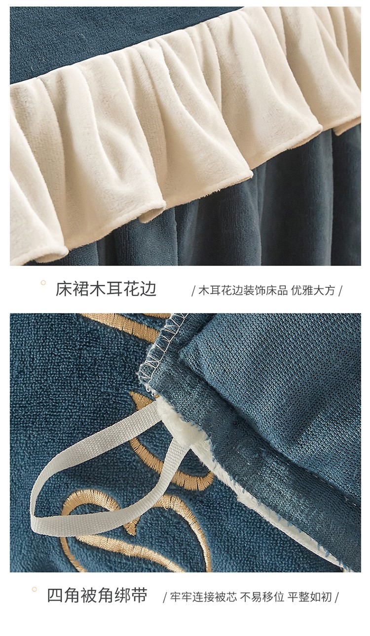 商品名称:宜凡家纺 2021新款牛奶绒绣花熊床裙四件套 可爱熊-藏蓝