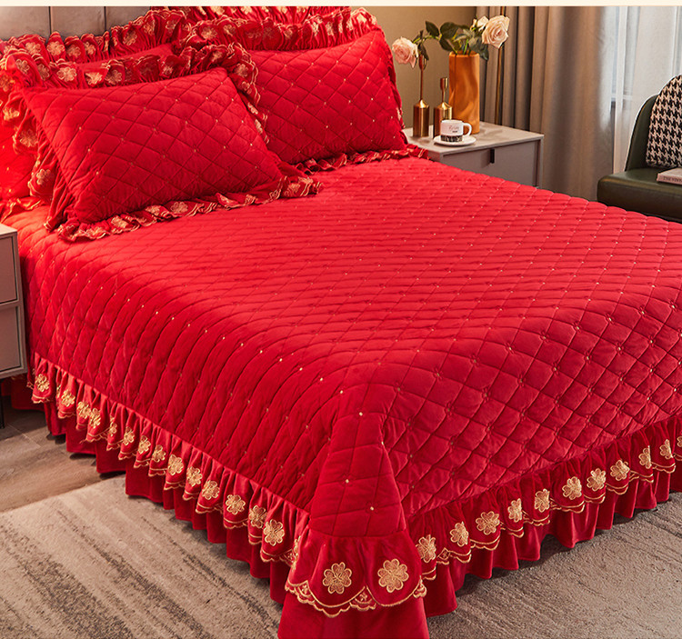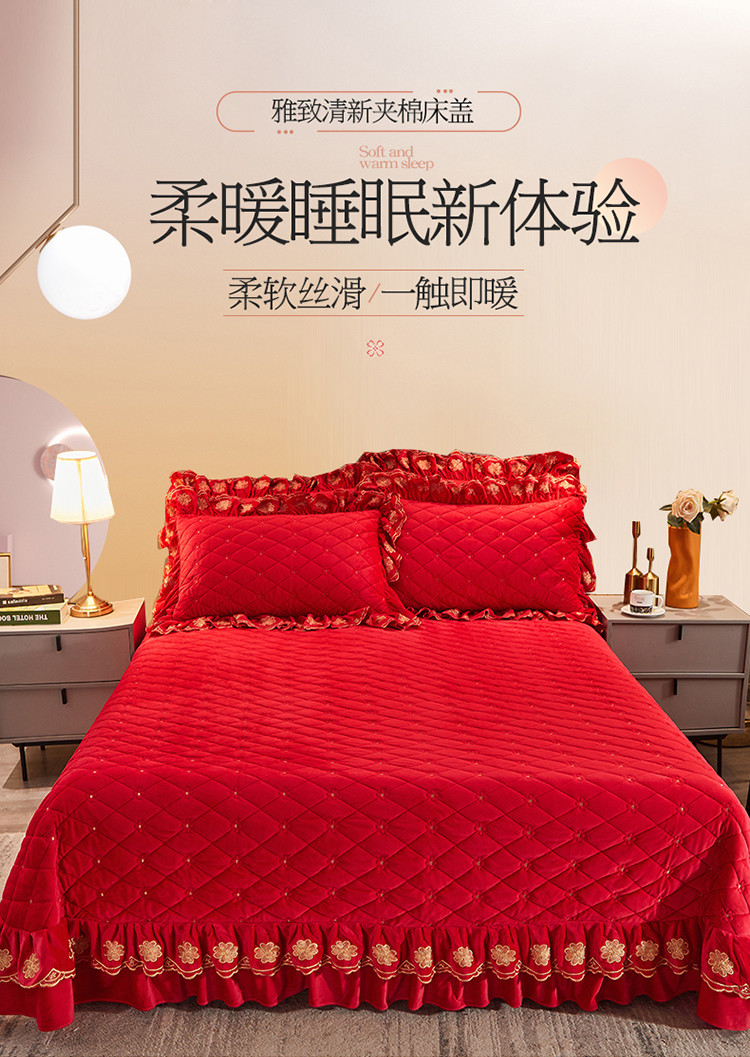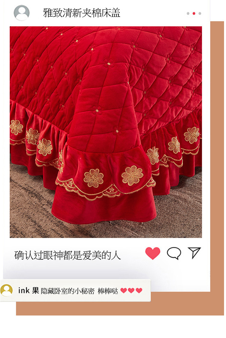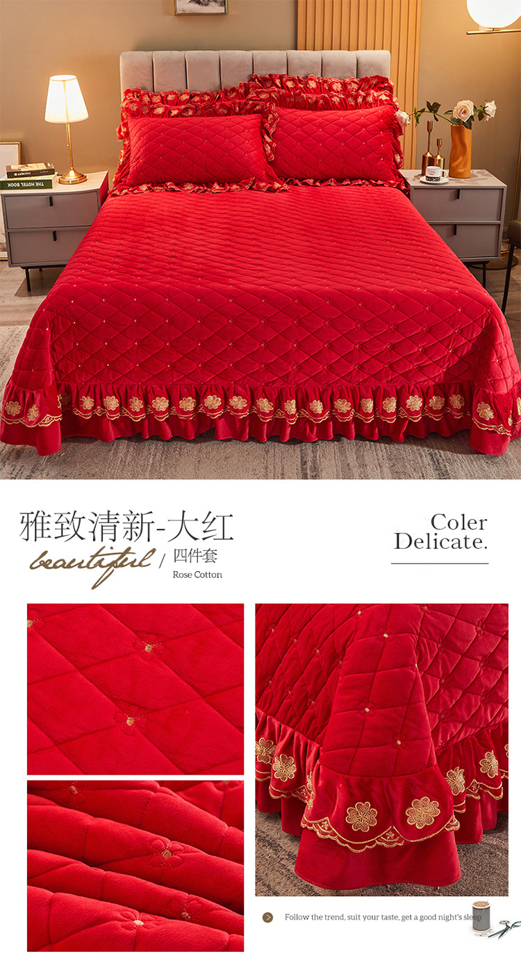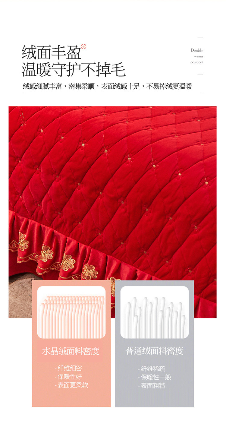 (总)恒爱 2022秋冬水晶绒翩翩花舞夹棉床裙四件套,大红色,豆沙红,橄榄绿,公主粉,桔色,咖啡色,孔雀绿,拉菲红,罗兰紫,玫红色,美人玉,米白色,米驼色,抹茶绿,浅灰色,紫色