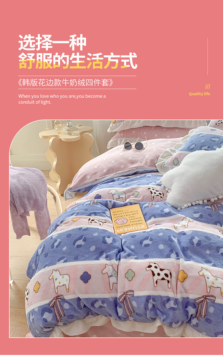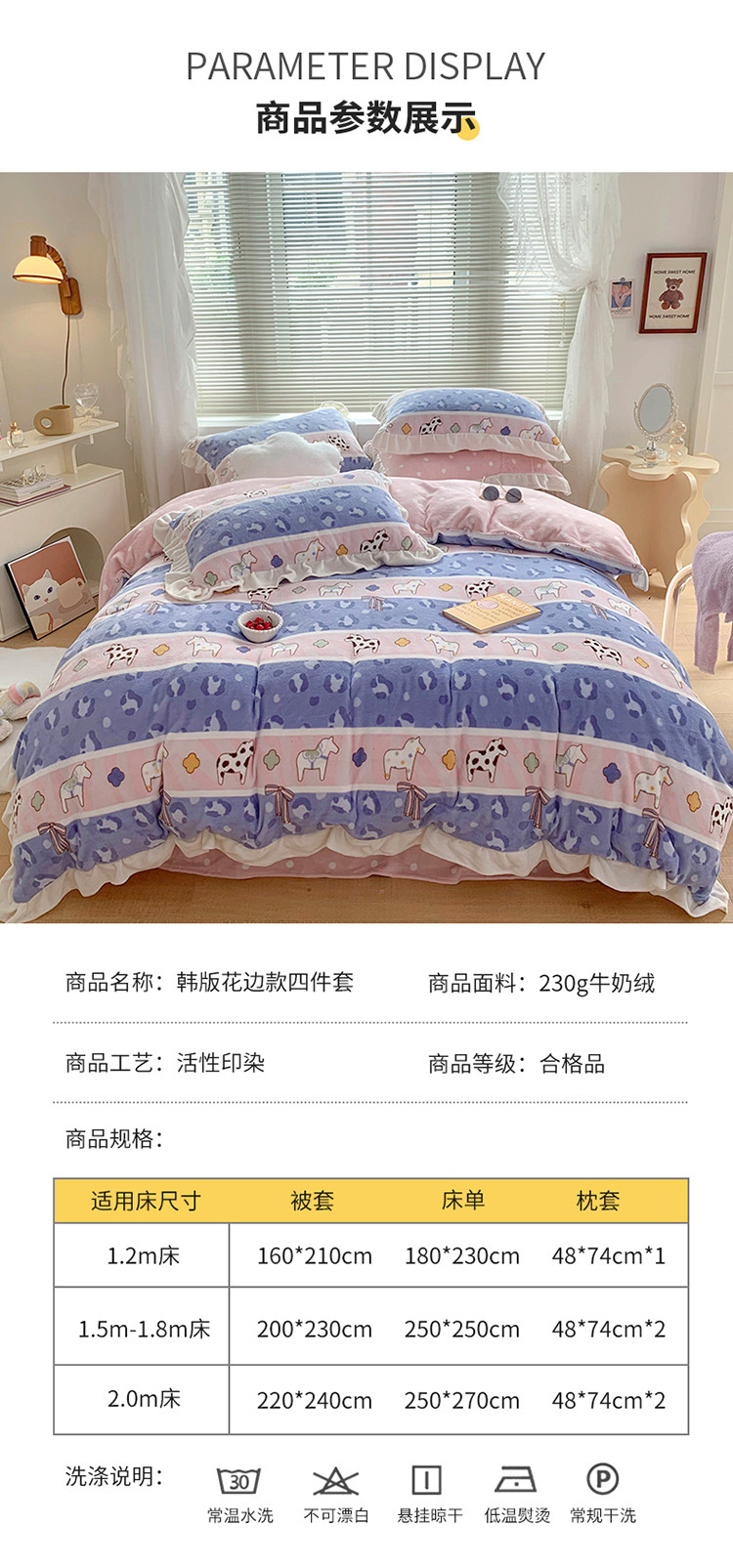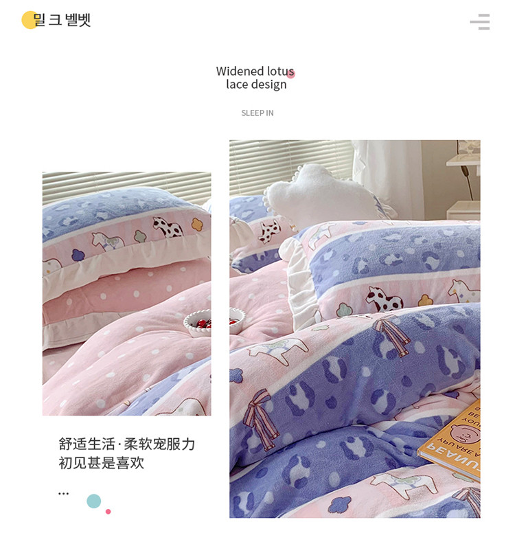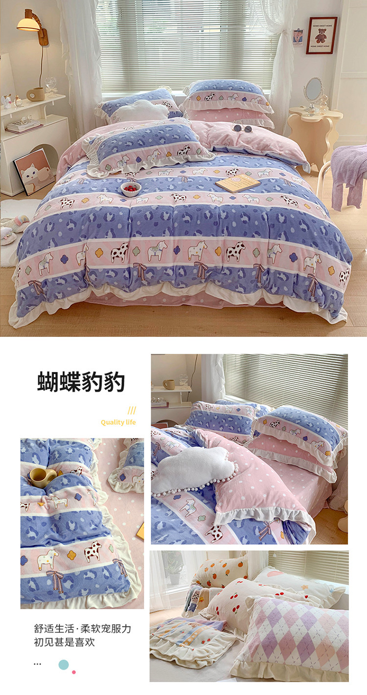 商品名称:眠屿家纺2021新款韩版ins牛奶绒花边款四件套 蝴蝶豹豹