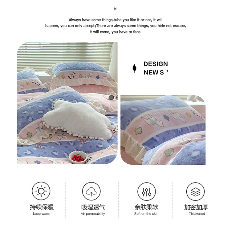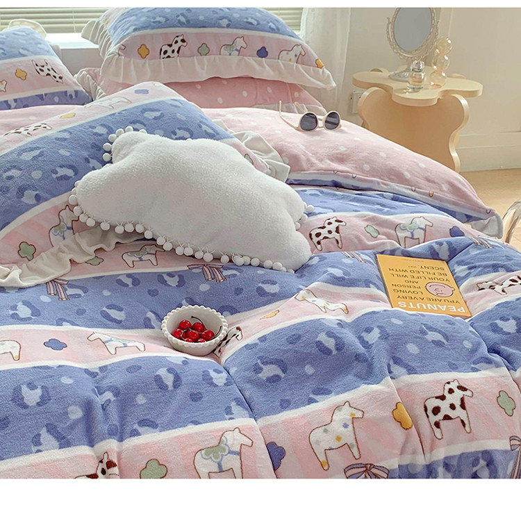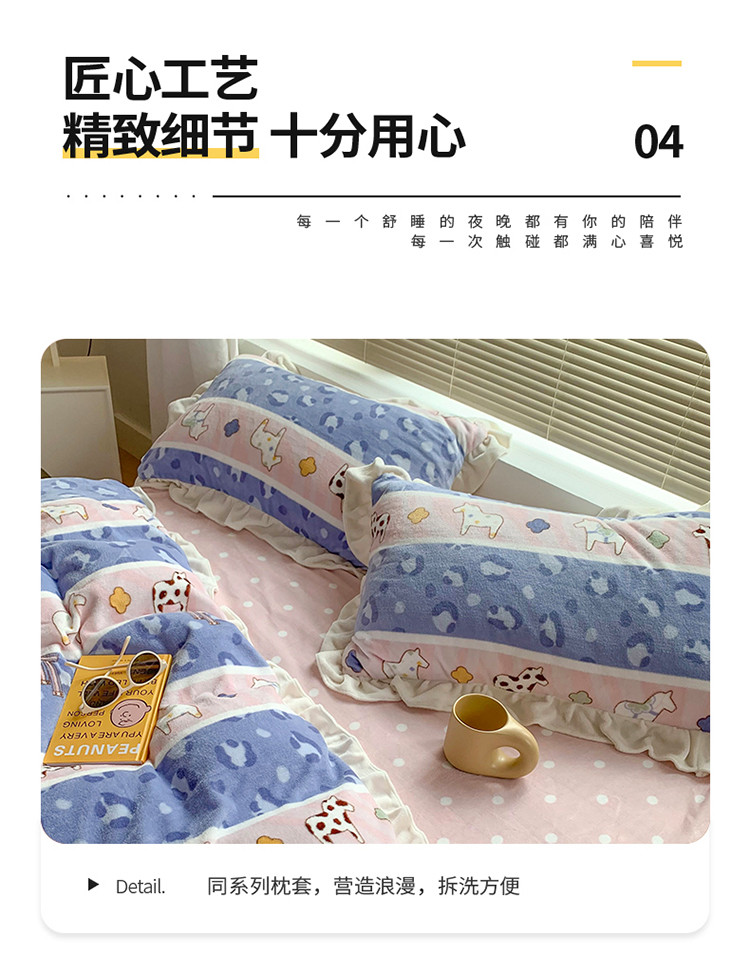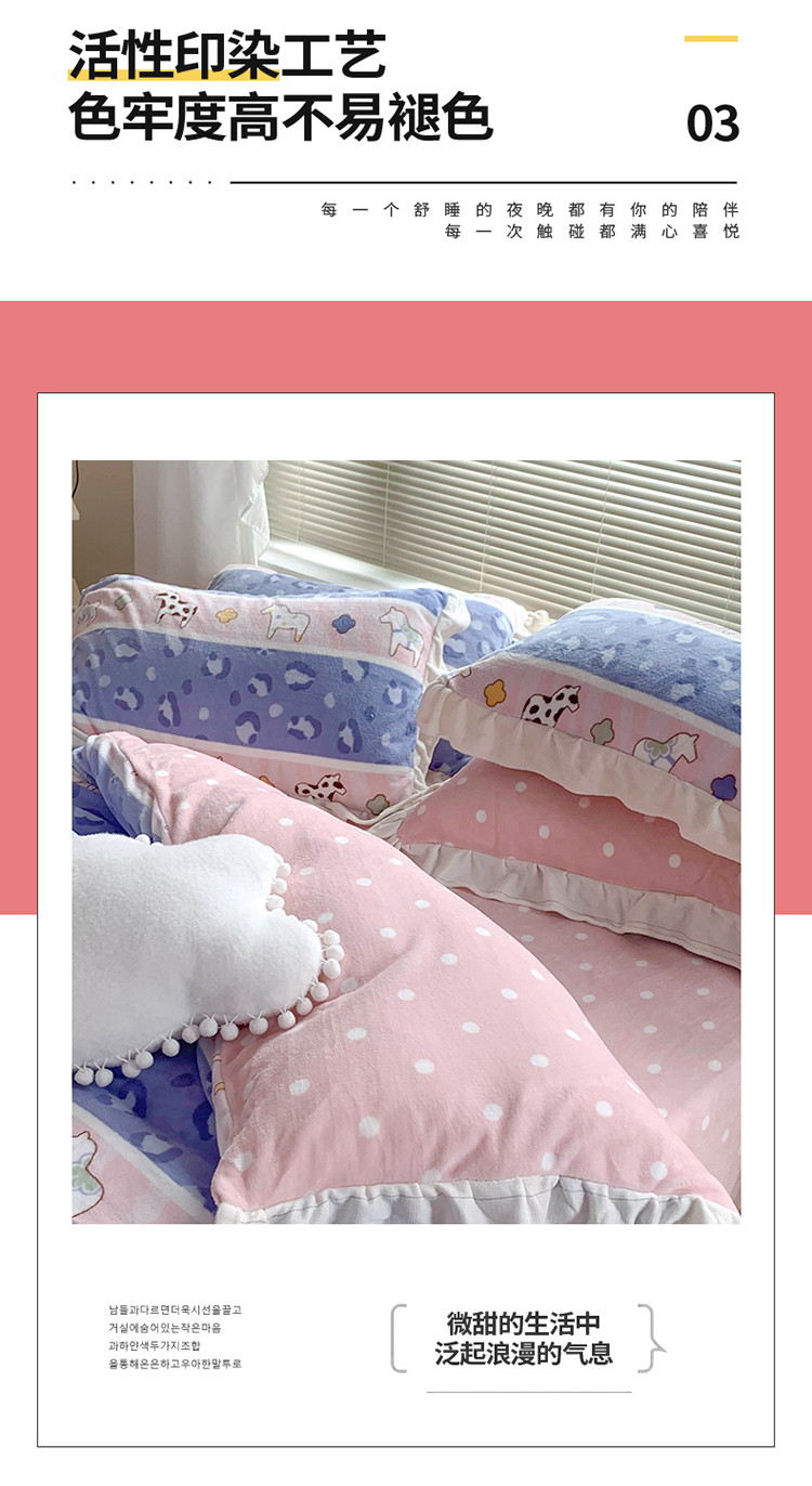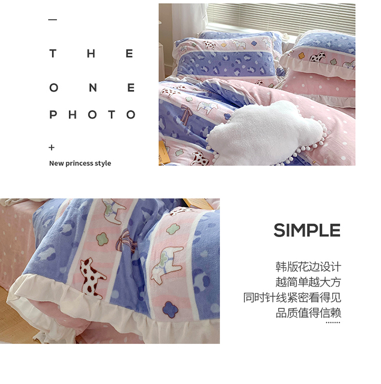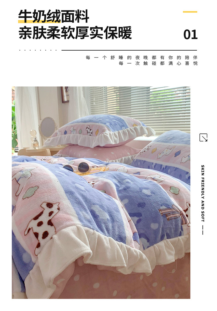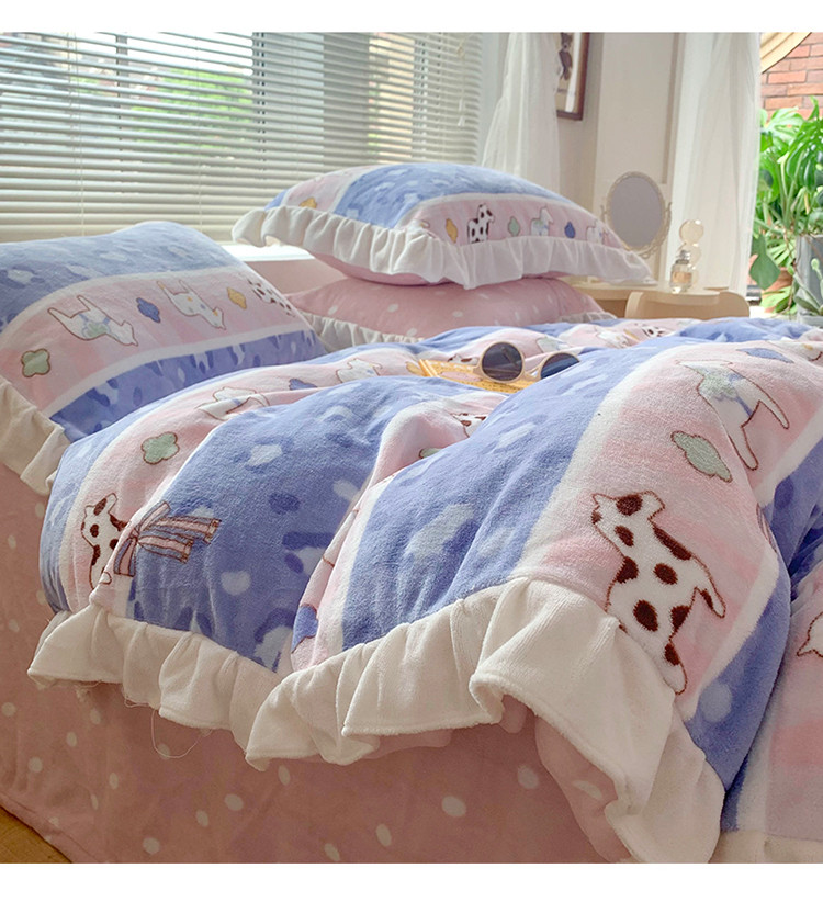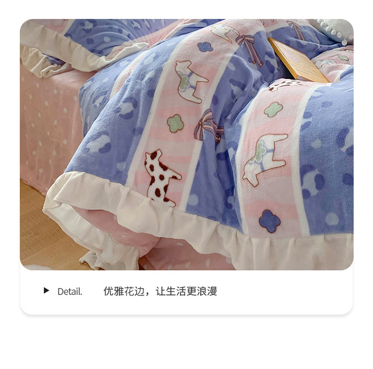 眠屿家纺2021新款韩版ins牛奶绒花边款四件套 蝴蝶豹豹