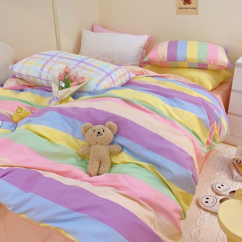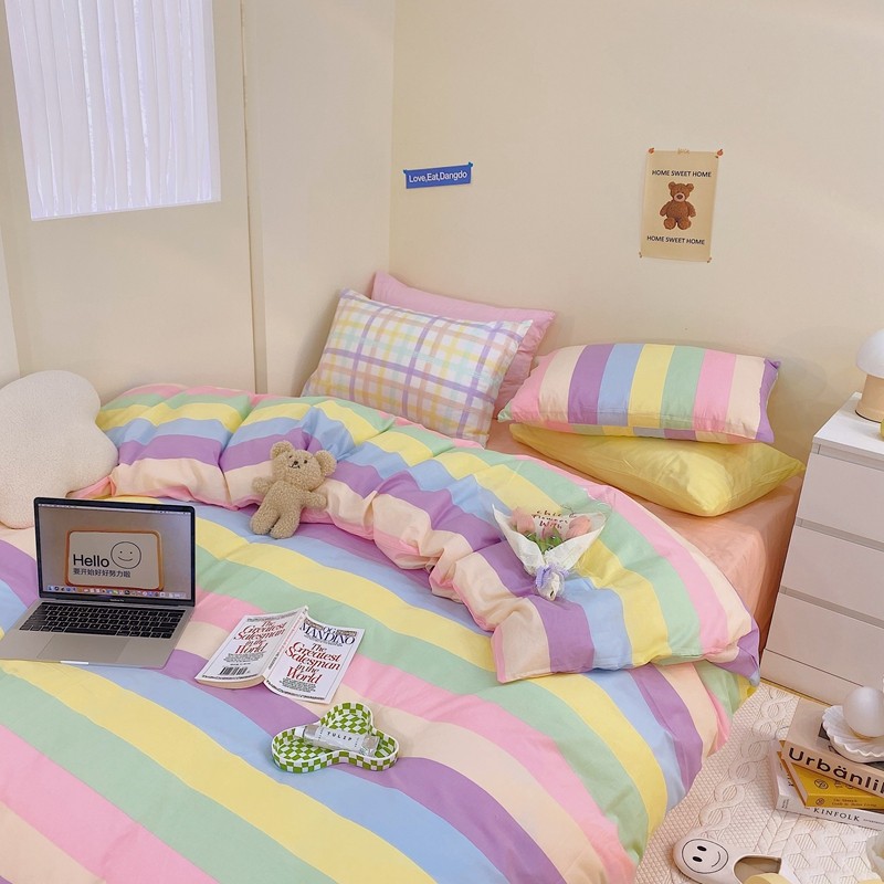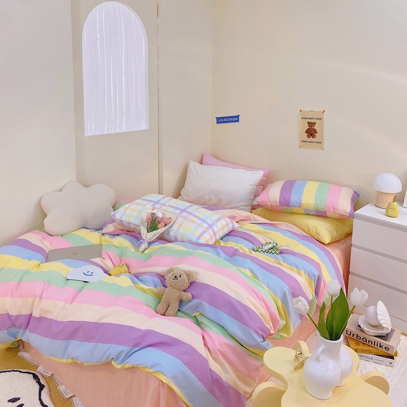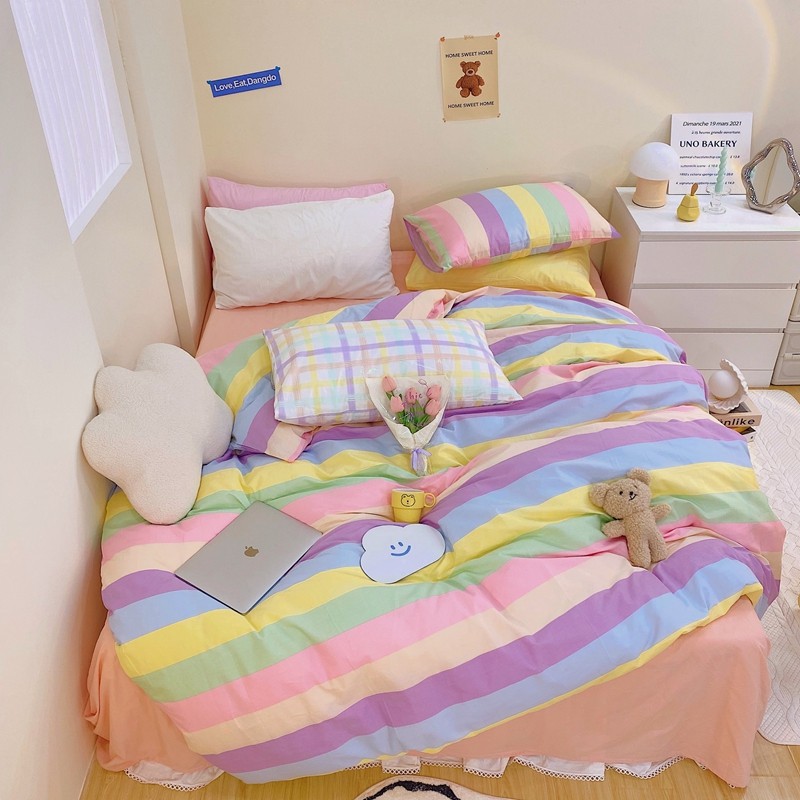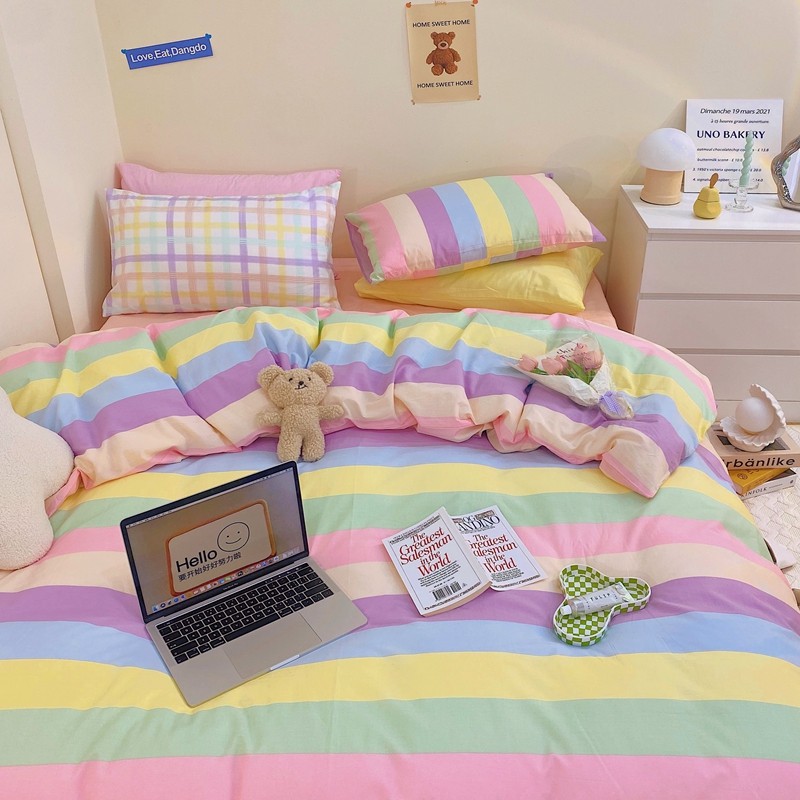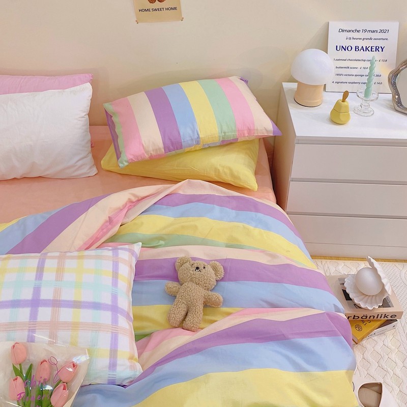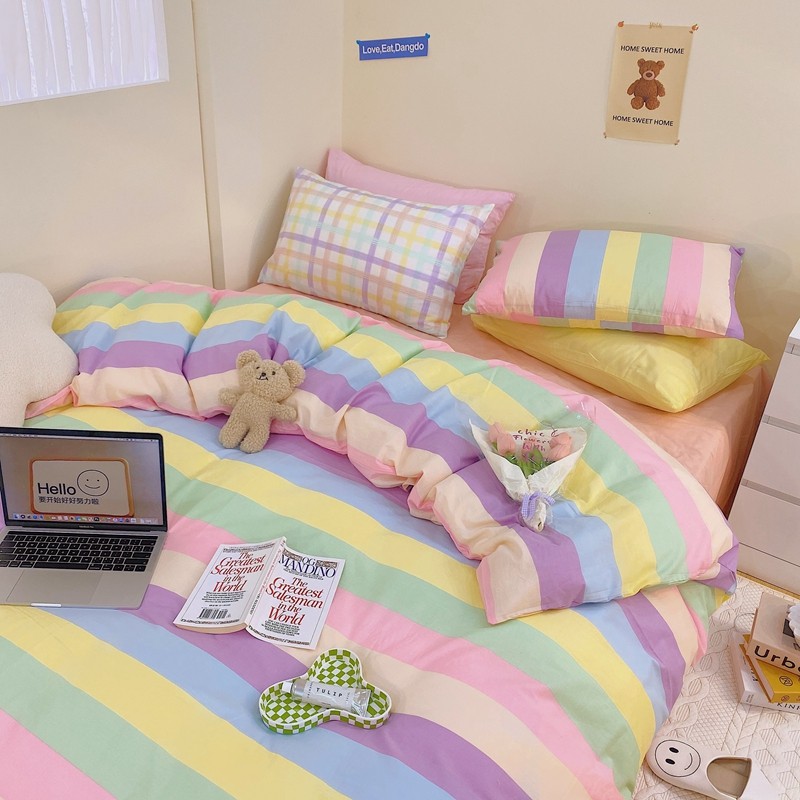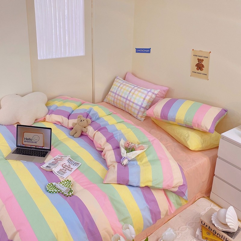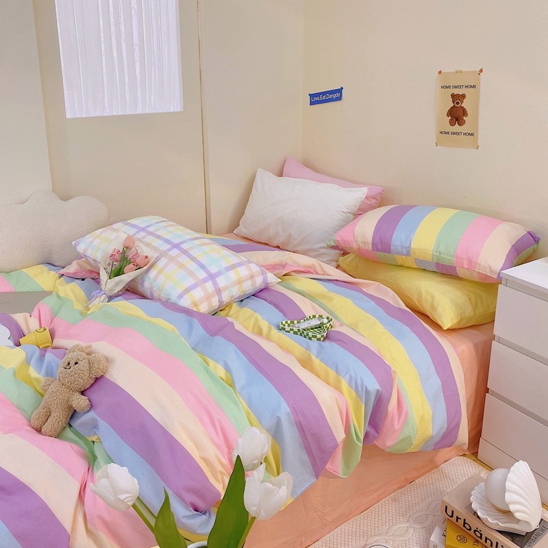 当前位置: 91家纺网 > 商品网购 > 床品套件 > 四件套 > 水洗棉四件套 > 顾里家纺202140支高密度奶油撞色水洗棉四件套 彩虹条纹
