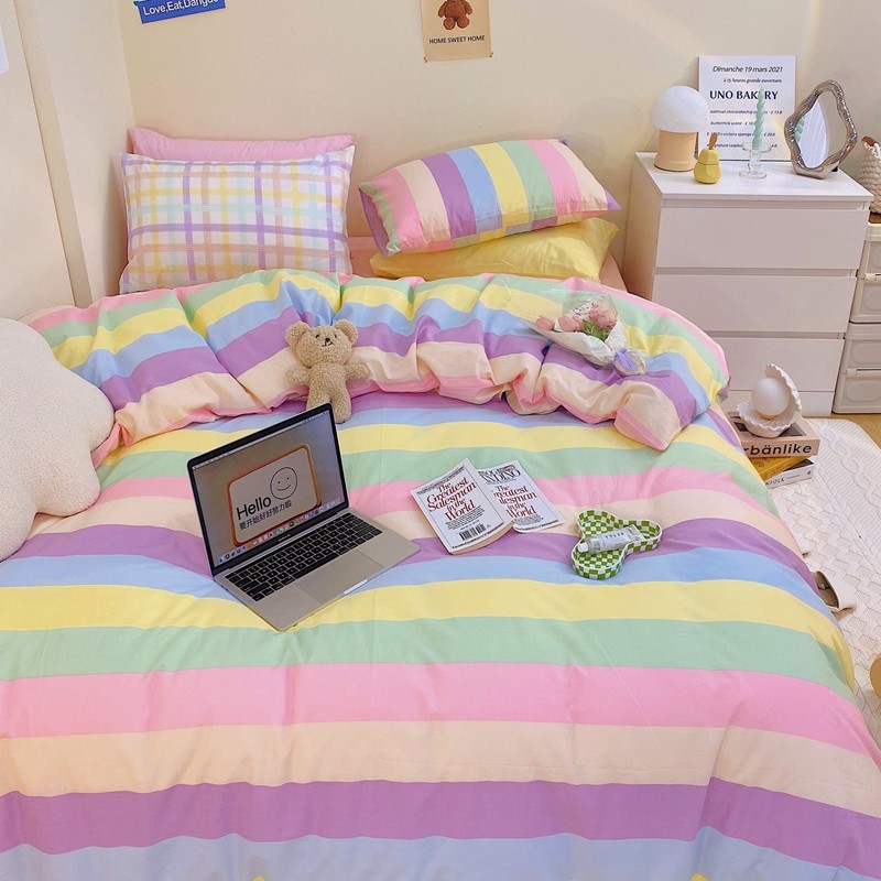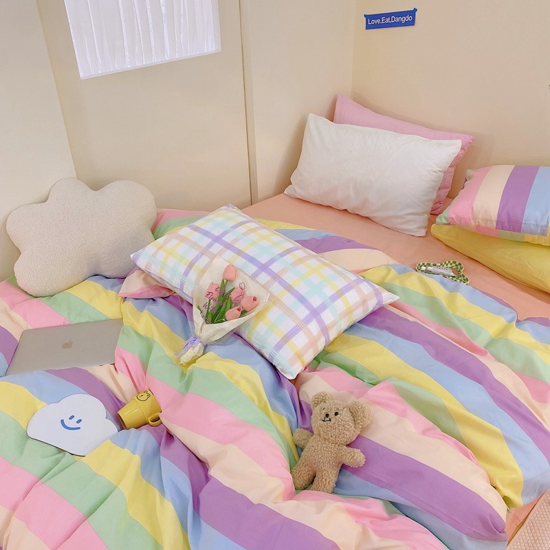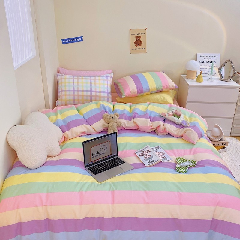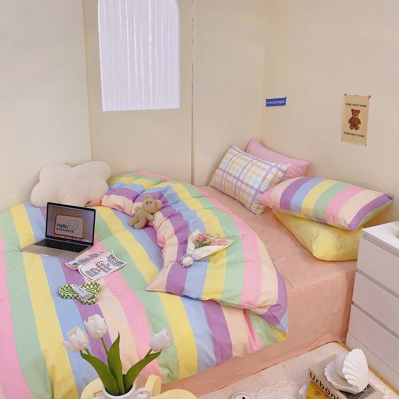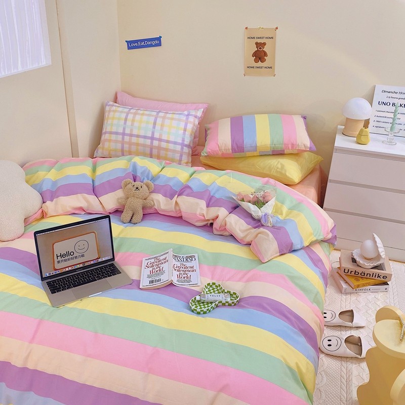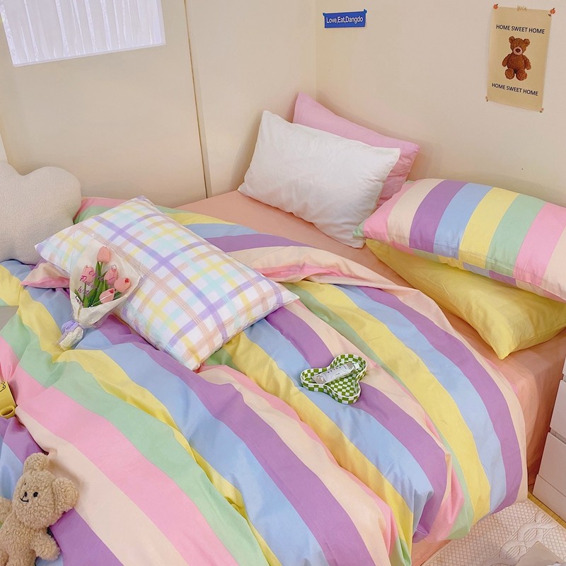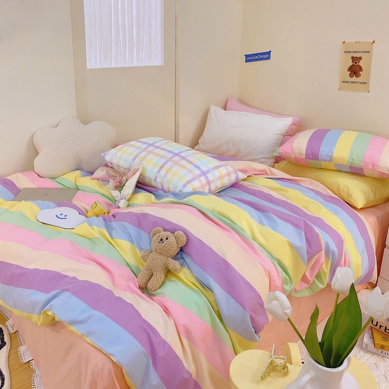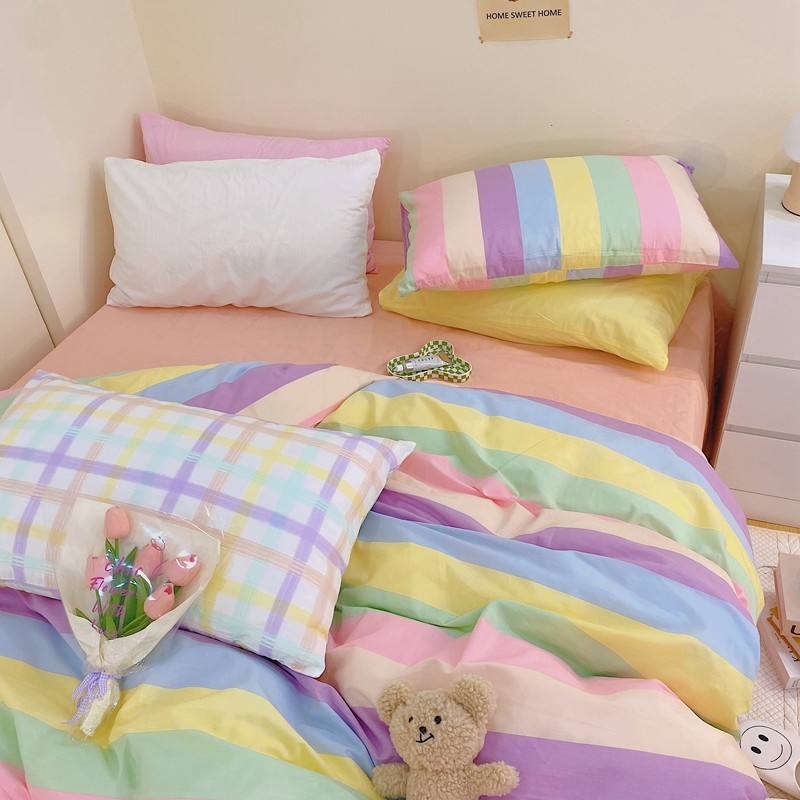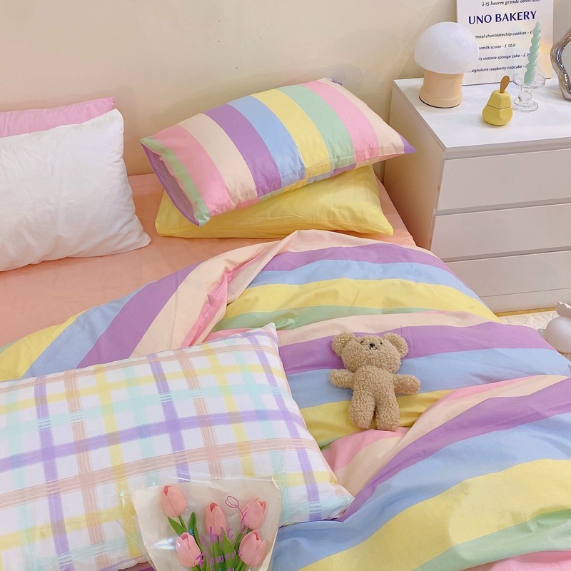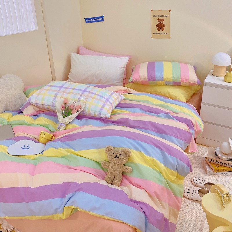当前位置: 91家纺网 > 商品网购 > 床品套件 > 四件套 > 水洗棉四件套 > 顾里家纺202140支高密度奶油撞色水洗棉四件套 彩虹条纹