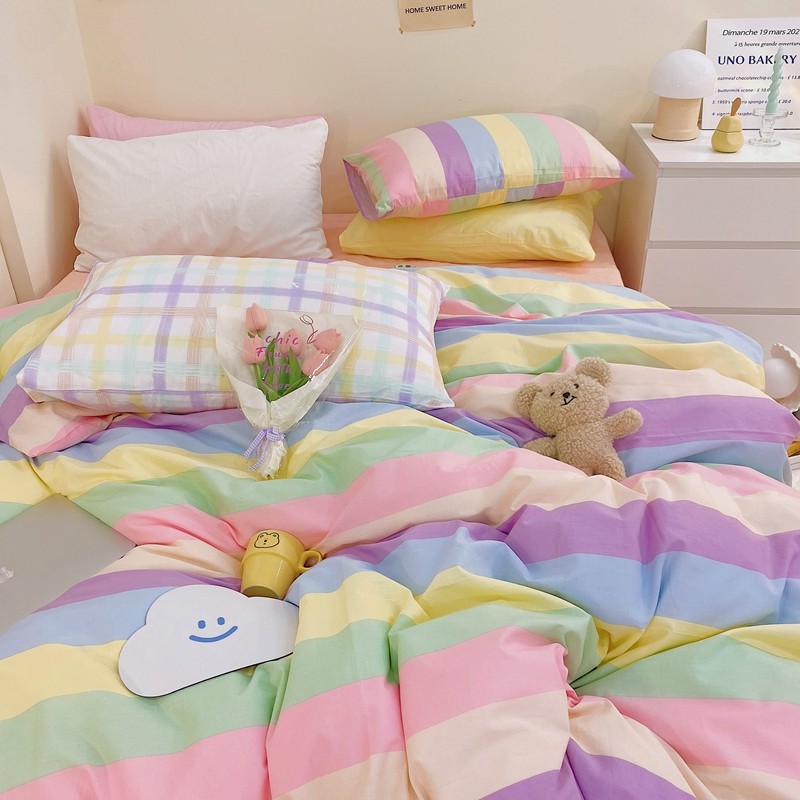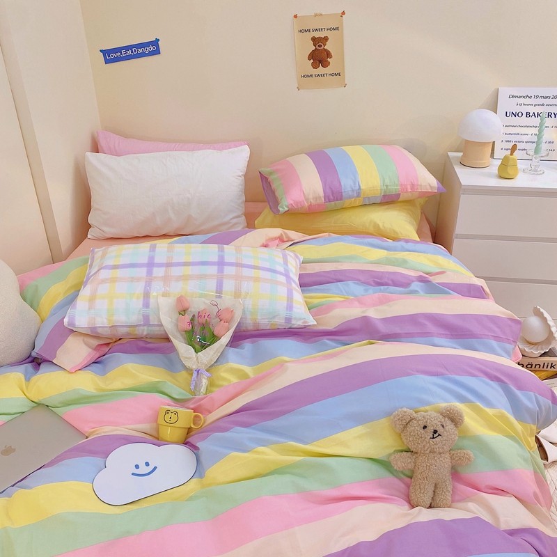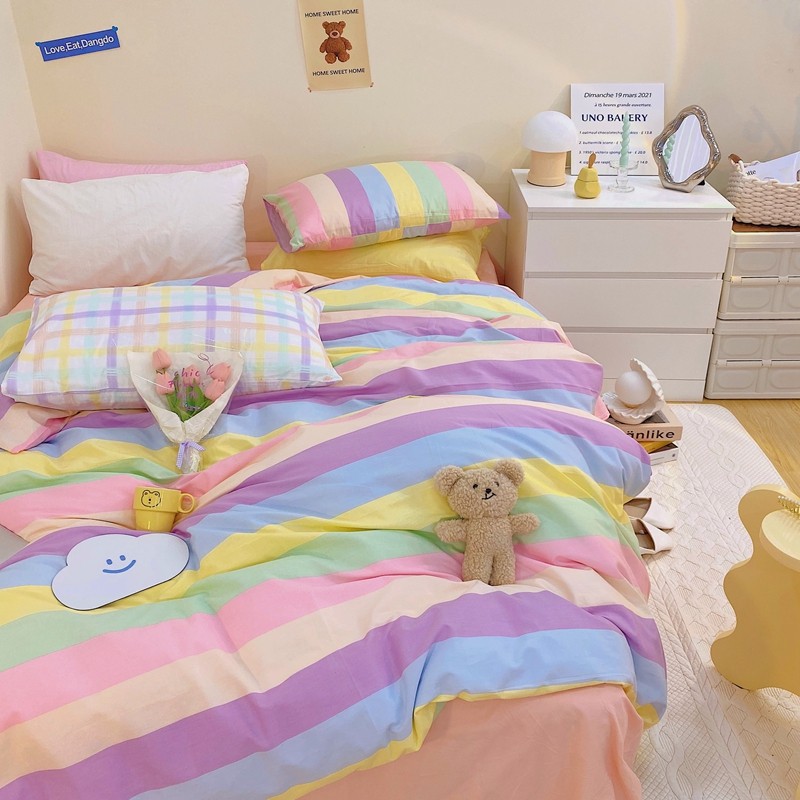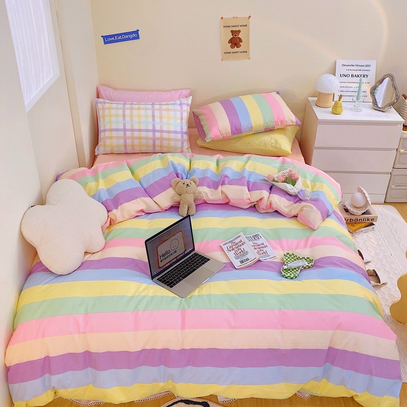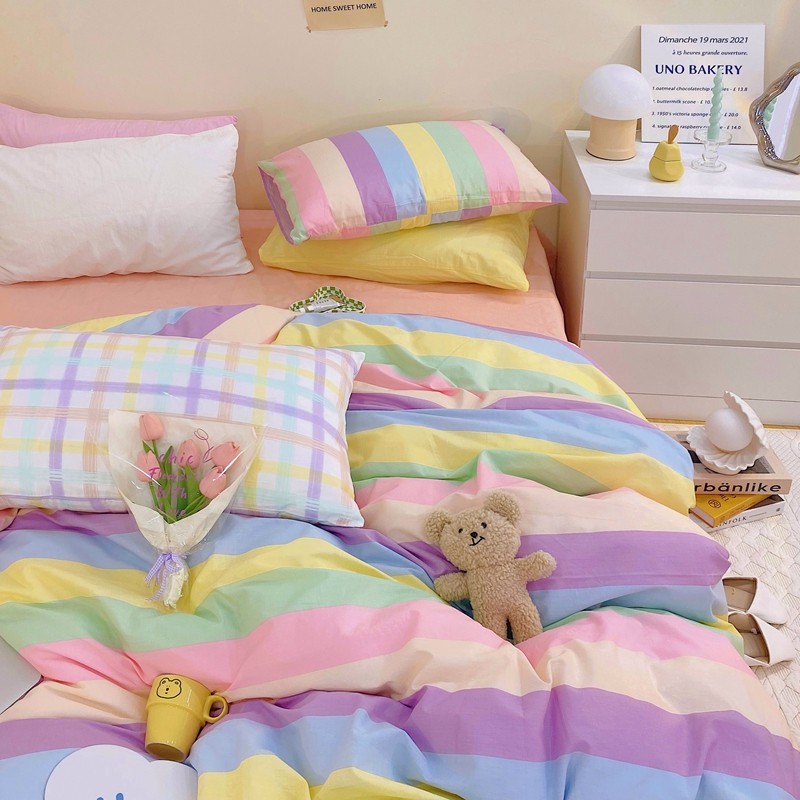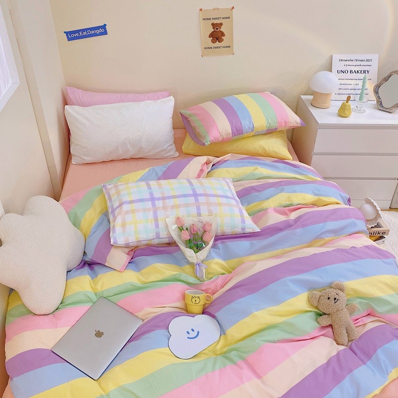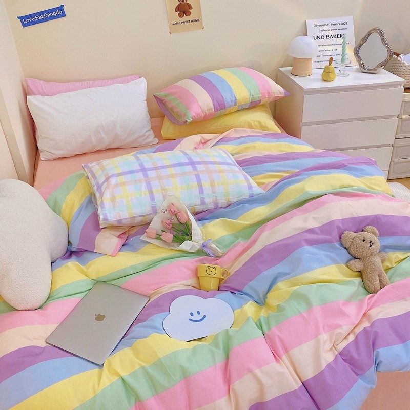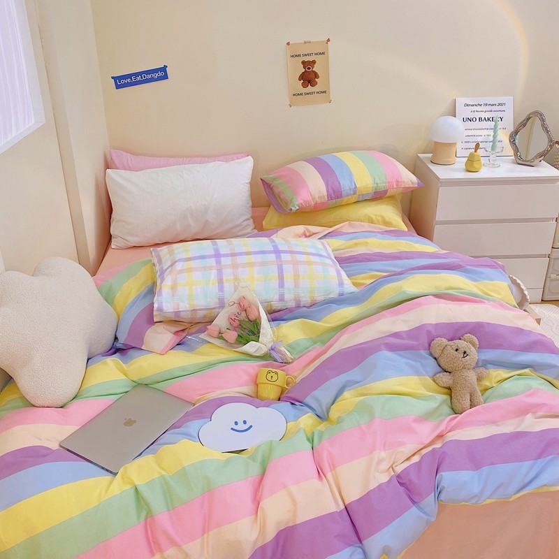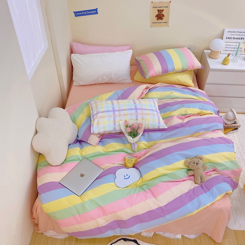 当前位置: 91家纺网 > 商品网购 > 床品套件 > 四件套 > 水洗棉四件套 > 顾里家纺202140支高密度奶油撞色水洗棉四件套 彩虹条纹