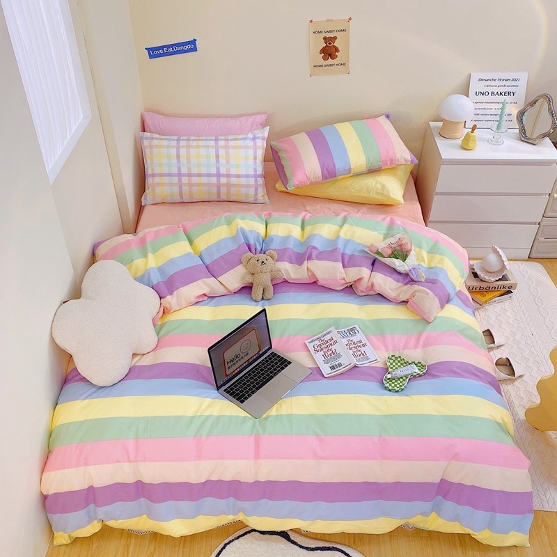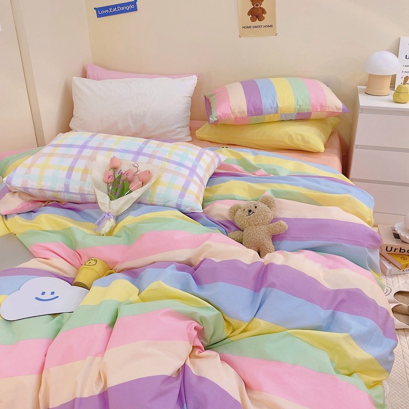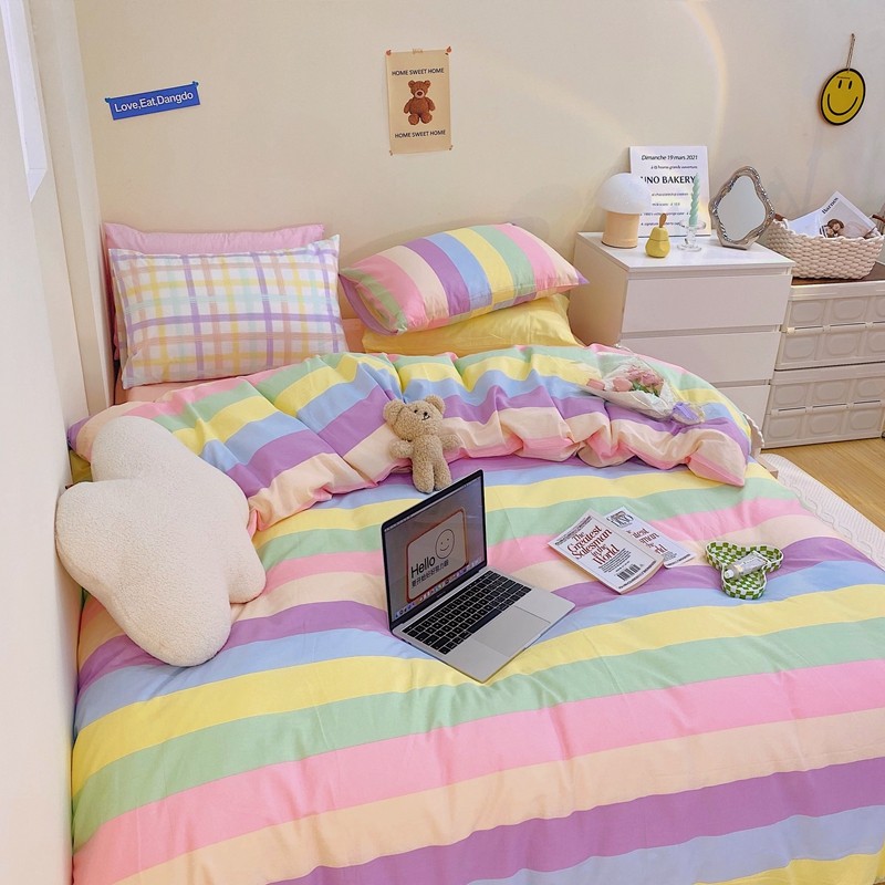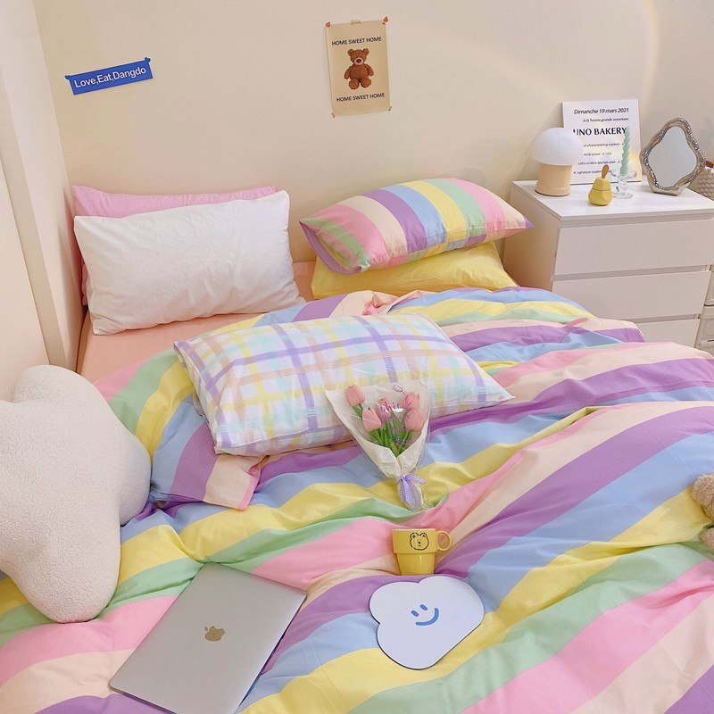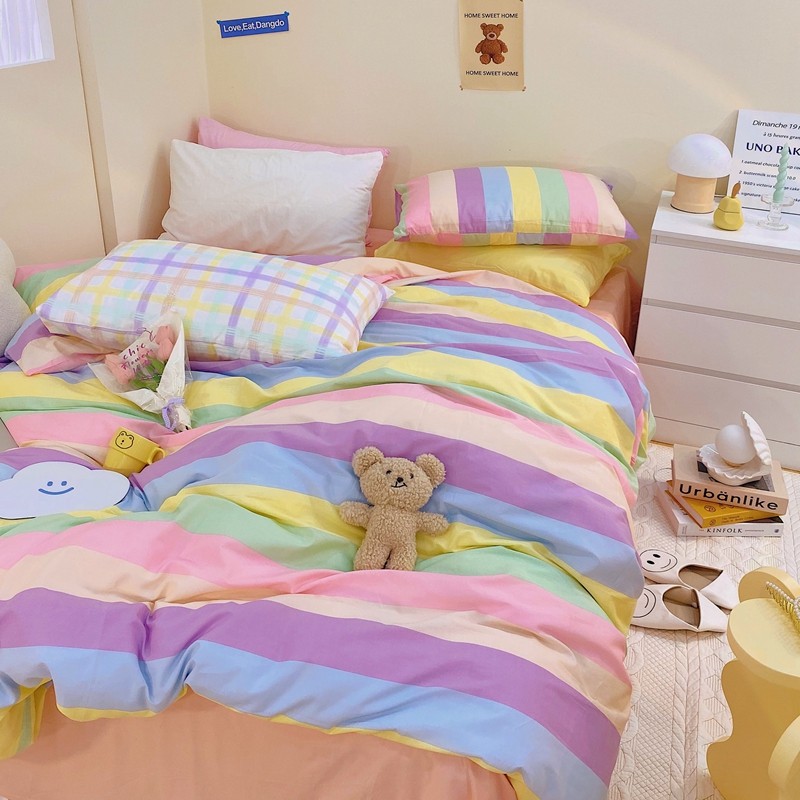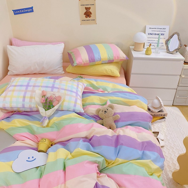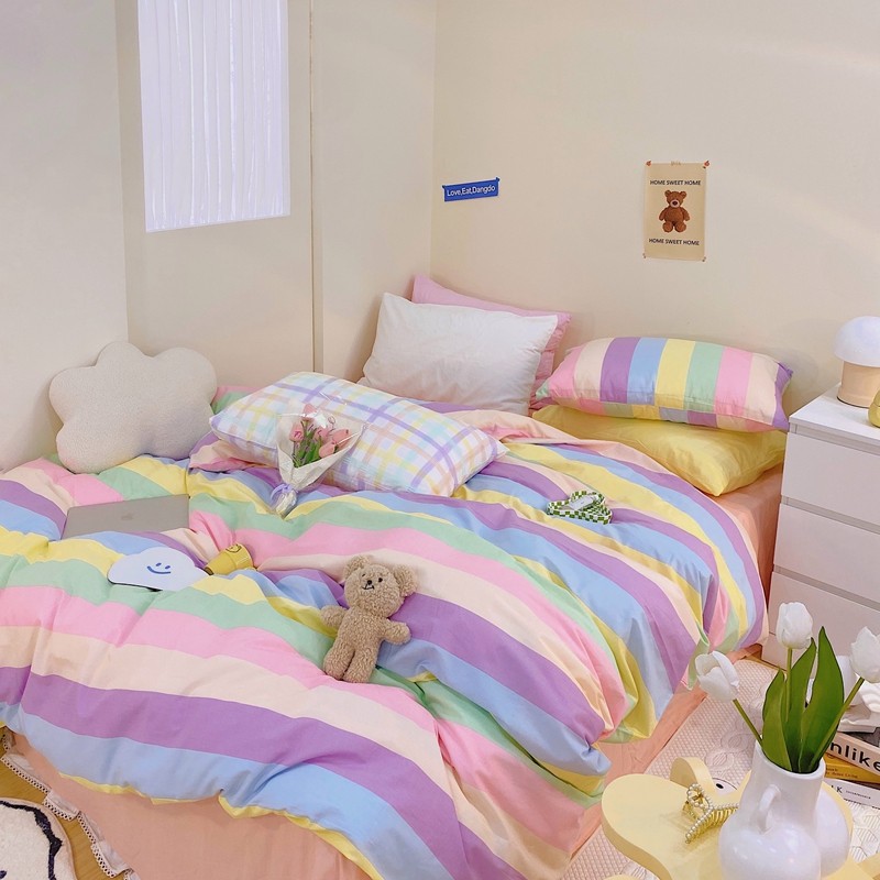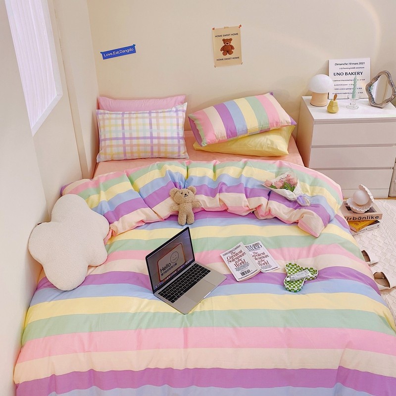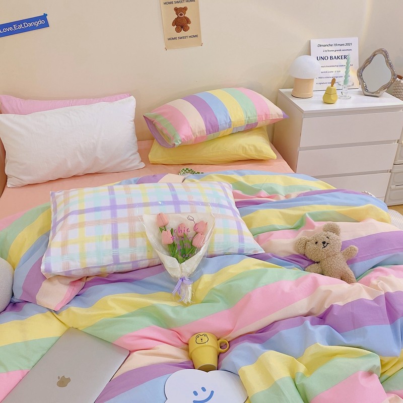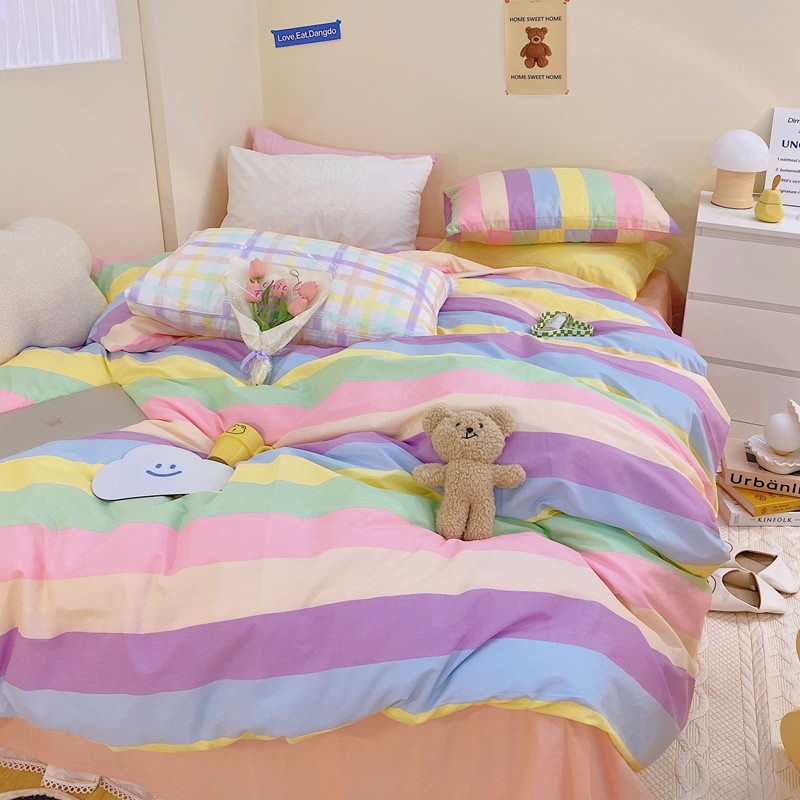当前位置: 91家纺网 > 商品网购 > 床品套件 > 四件套 > 水洗棉四件套 > 顾里家纺202140支高密度奶油撞色水洗棉四件套 彩虹条纹