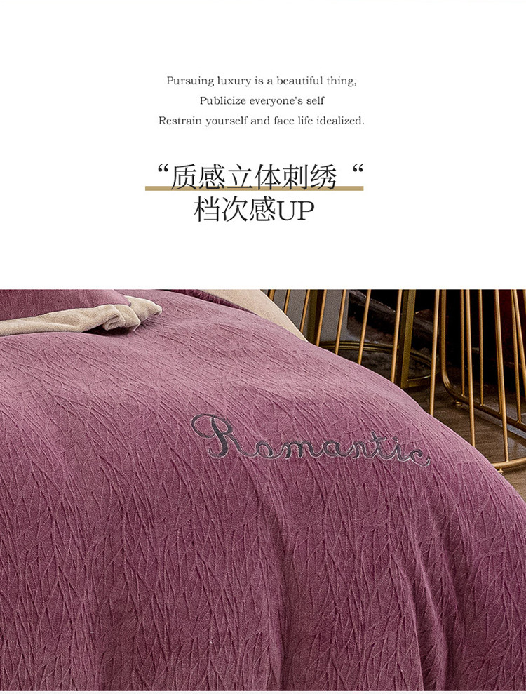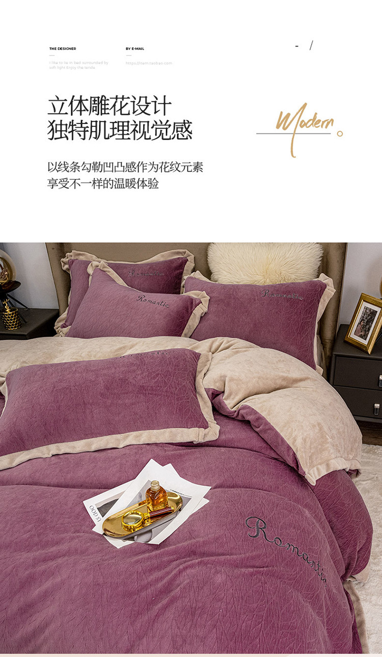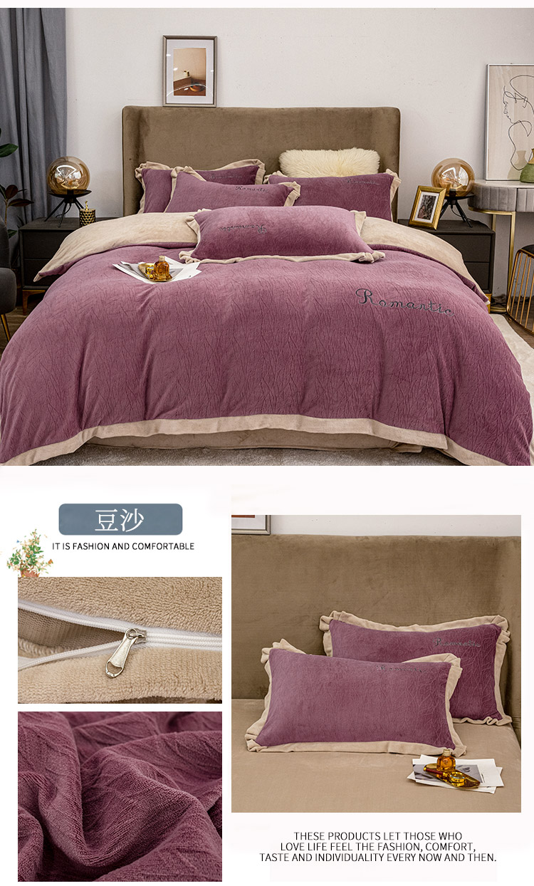 (总)骏腾 2022新款加厚牛奶绒刺绣四件套法莱绒三件套,暖心-宝兰,暖心-豆沙,暖心-灰色,暖心-咖色,暖心-孔雀兰,暖心-孔雀绿,暖心-玫瑰粉,暖心-洒红,暖心-银灰