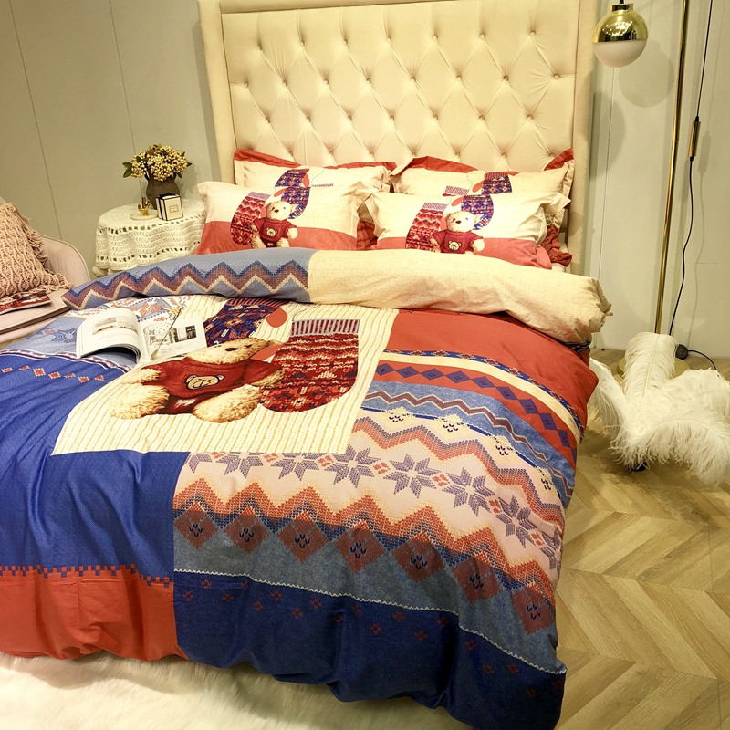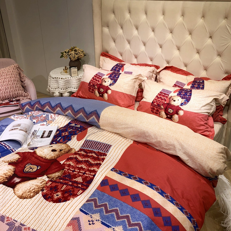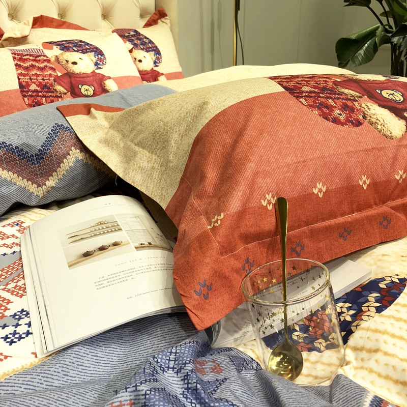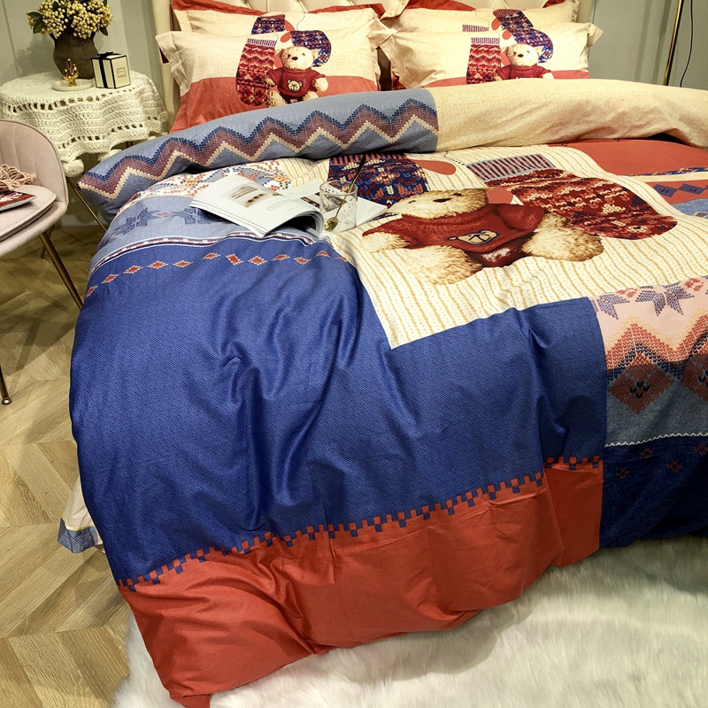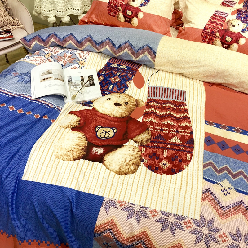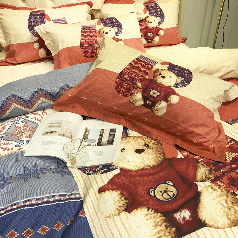 馨蕊2021秋冬新品50支贡缎全棉印花四件套 暖熊宝
