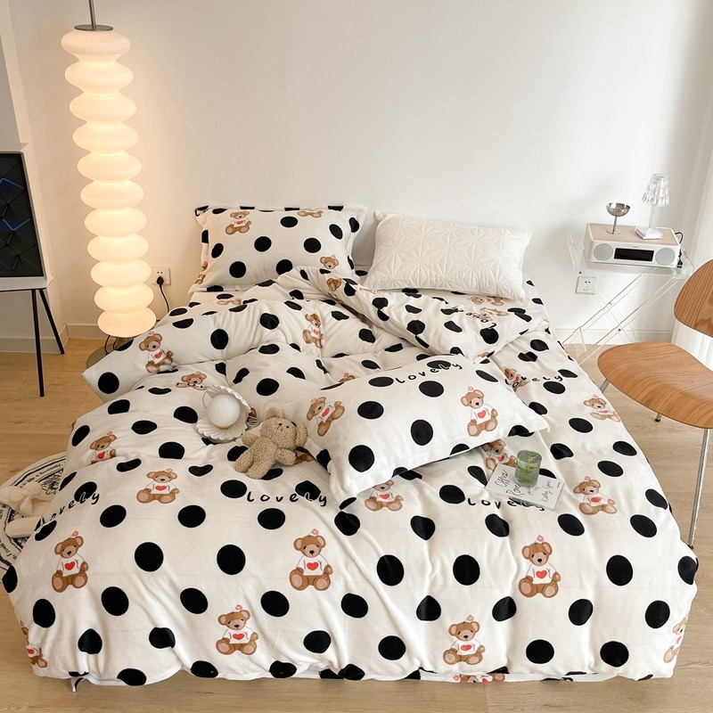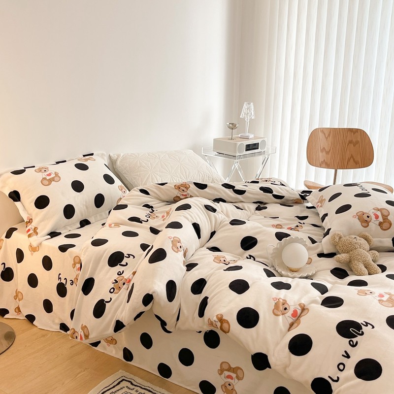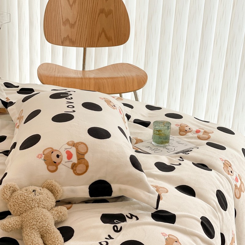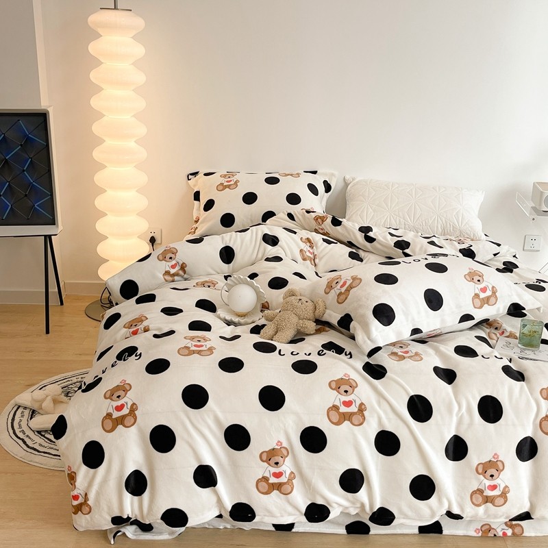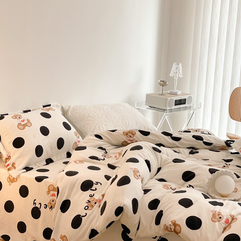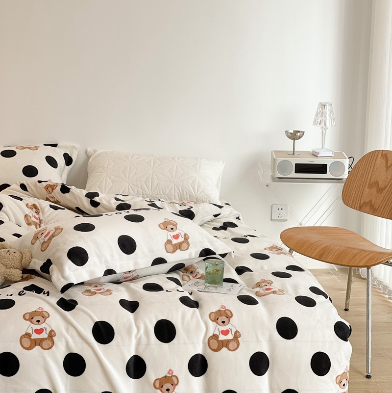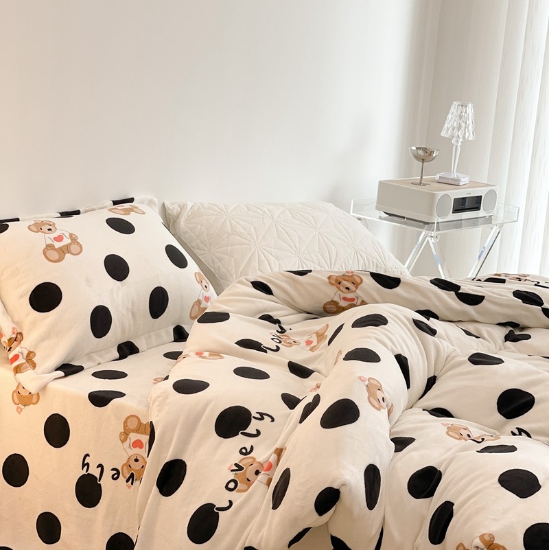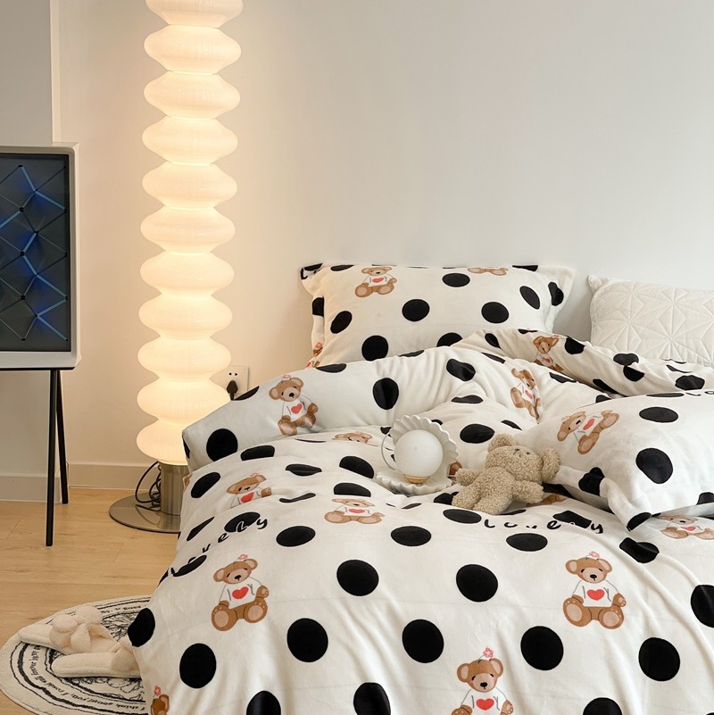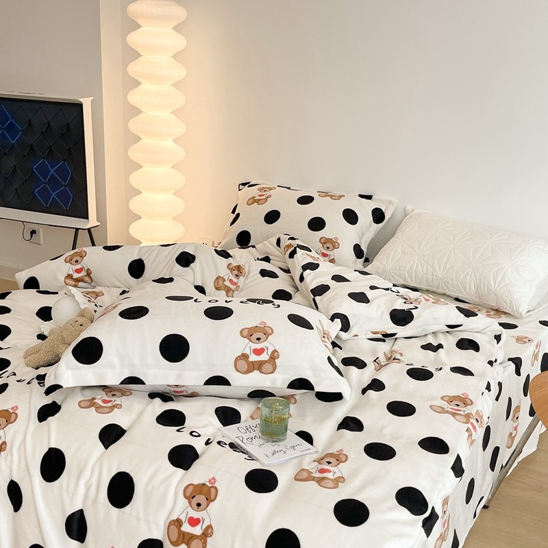 昔可家纺 2021新款牛奶绒四件套-二批 波点小熊仔