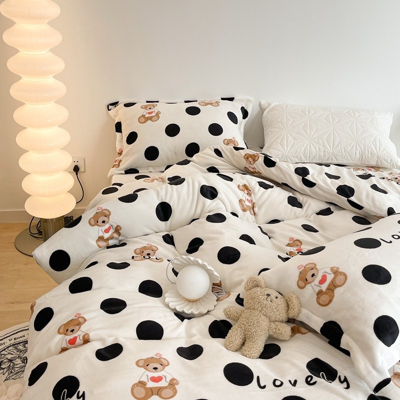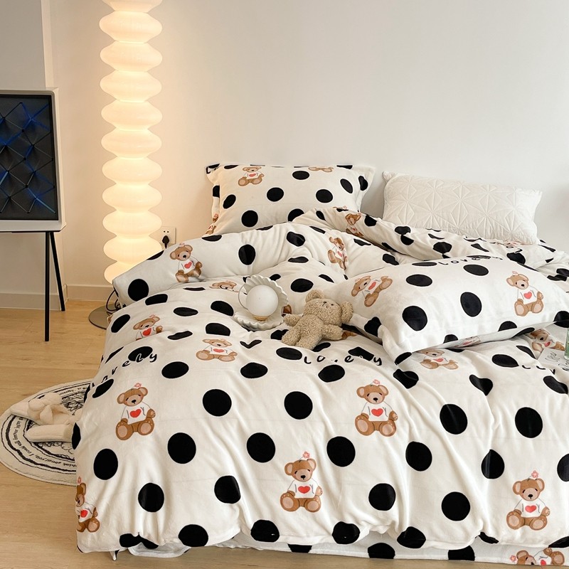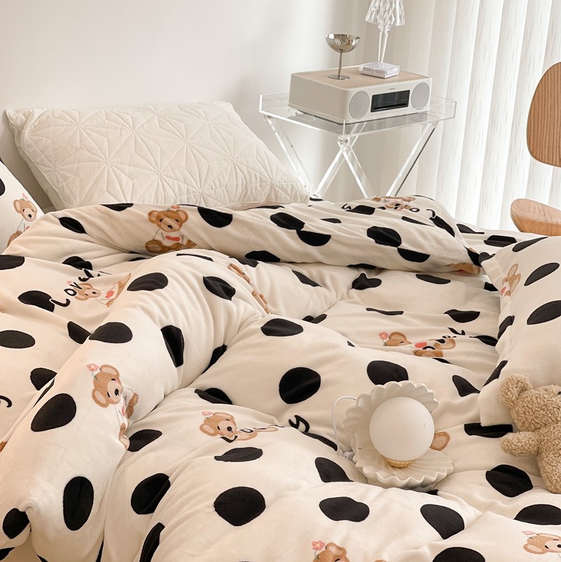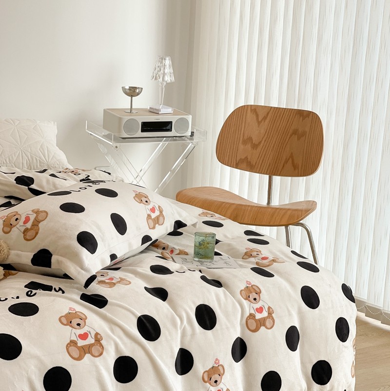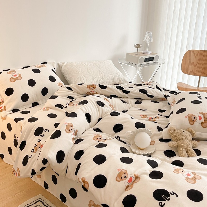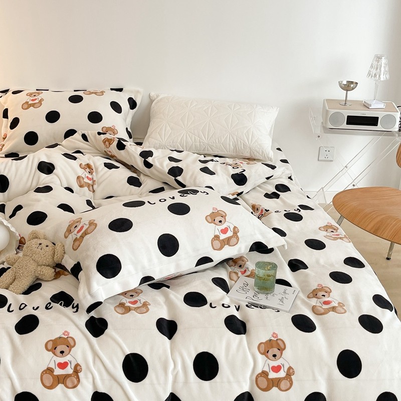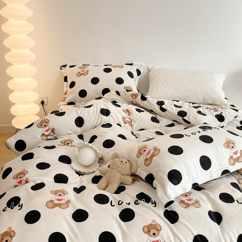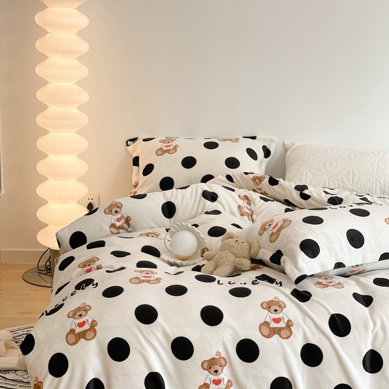 昔可家纺 2021新款牛奶绒四件套-二批 波点小熊仔