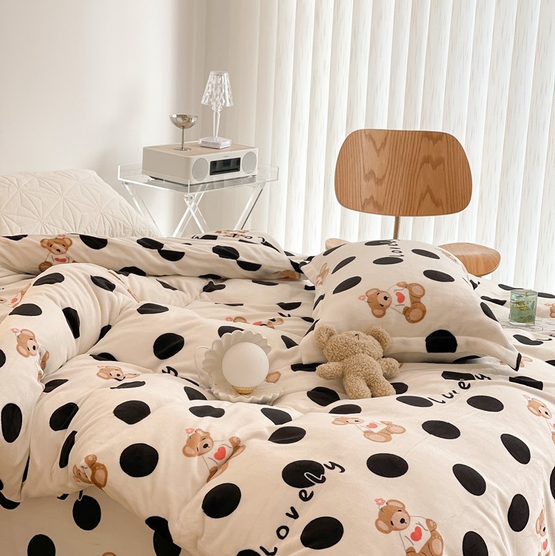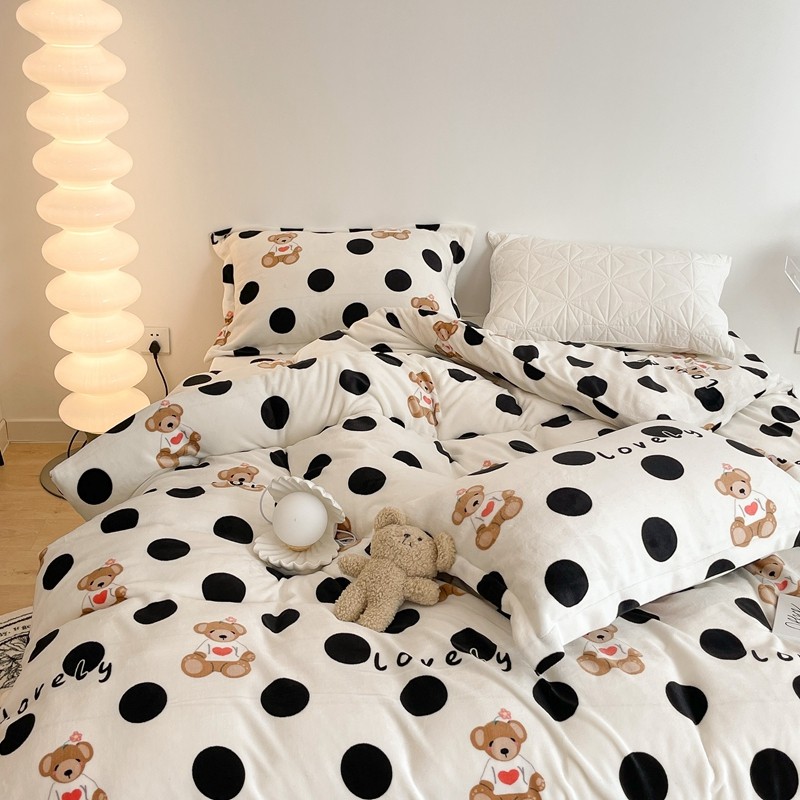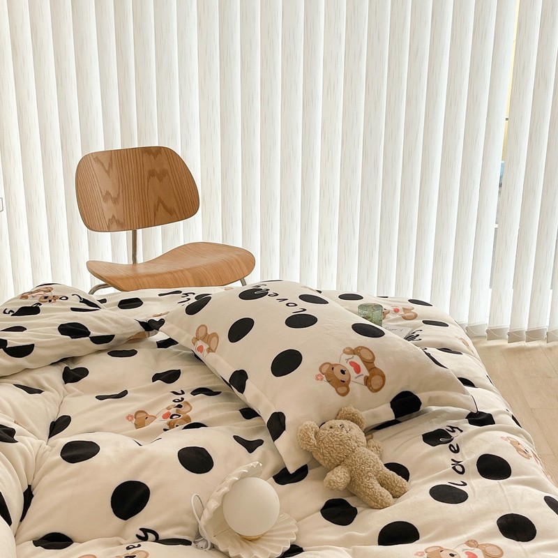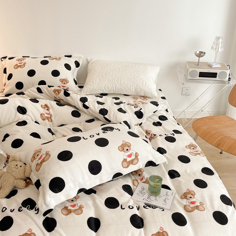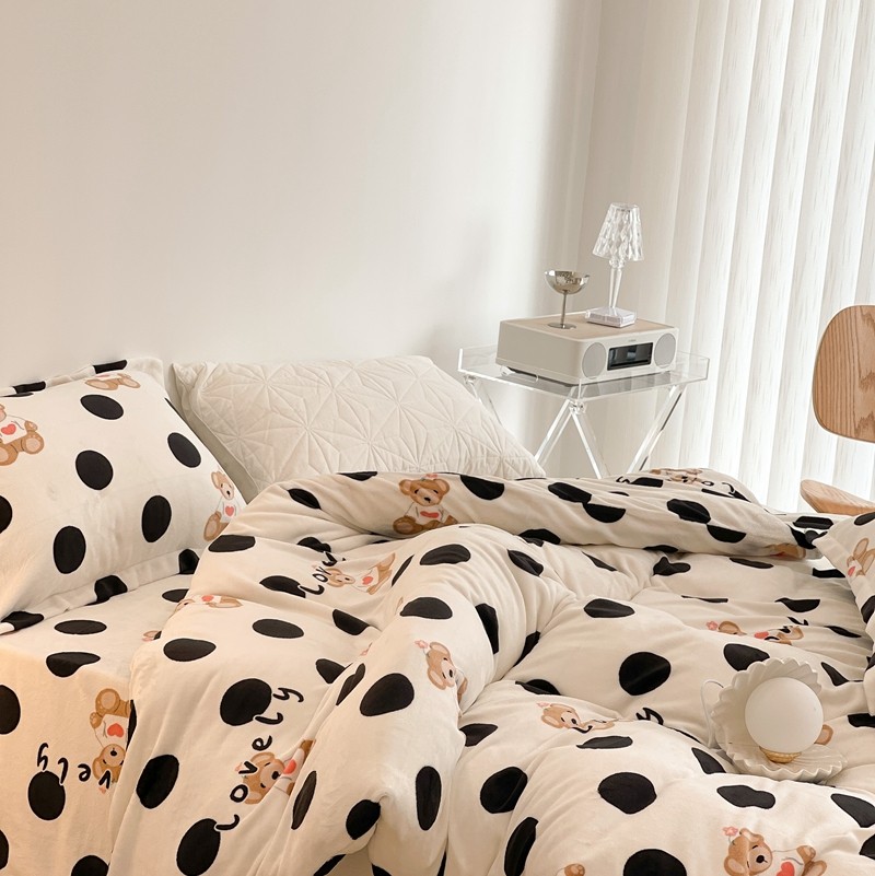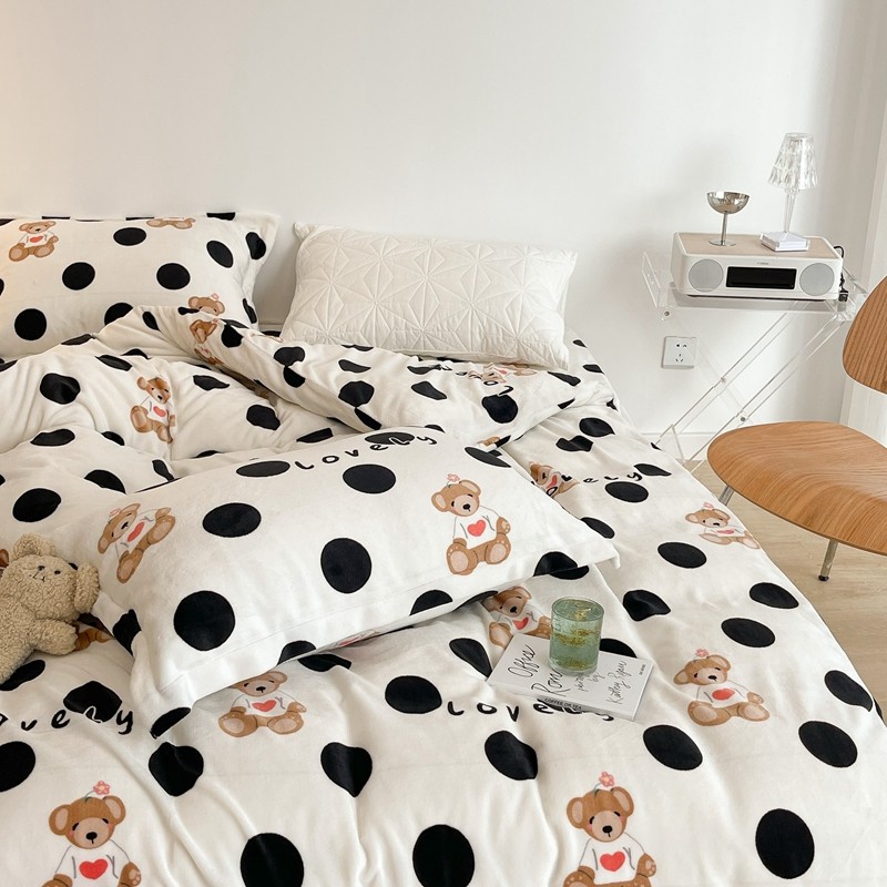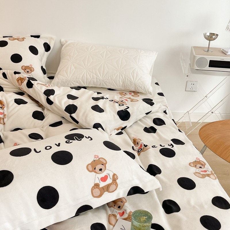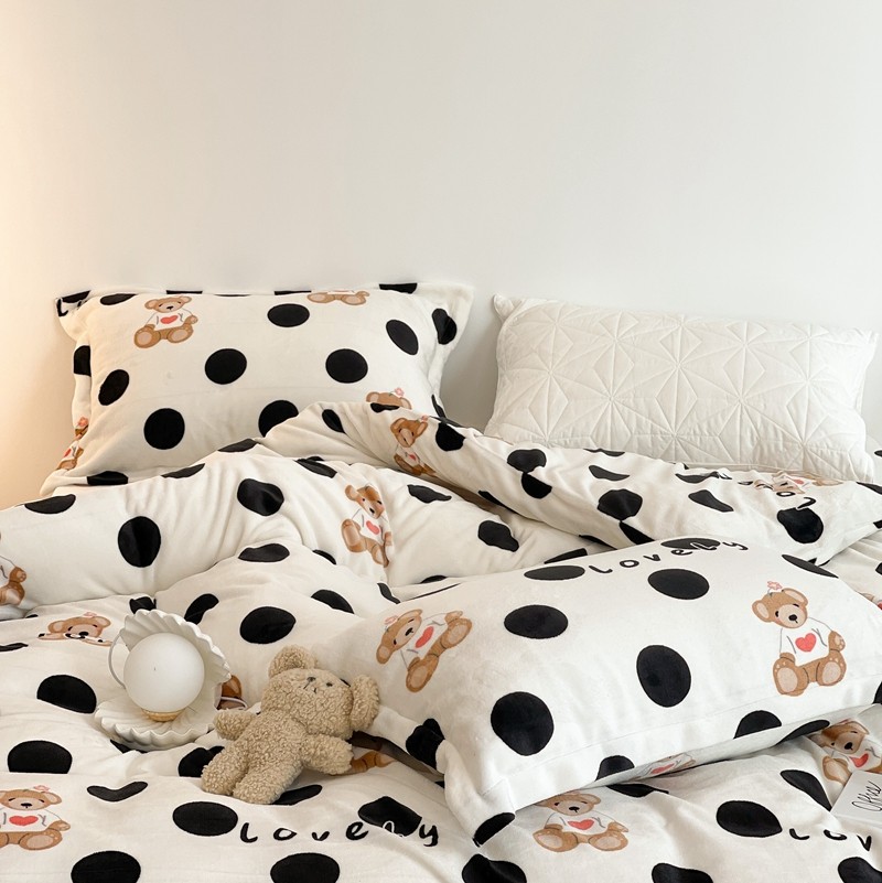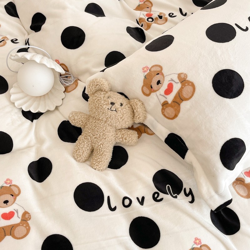 昔可家纺 2021新款牛奶绒四件套-二批 波点小熊仔