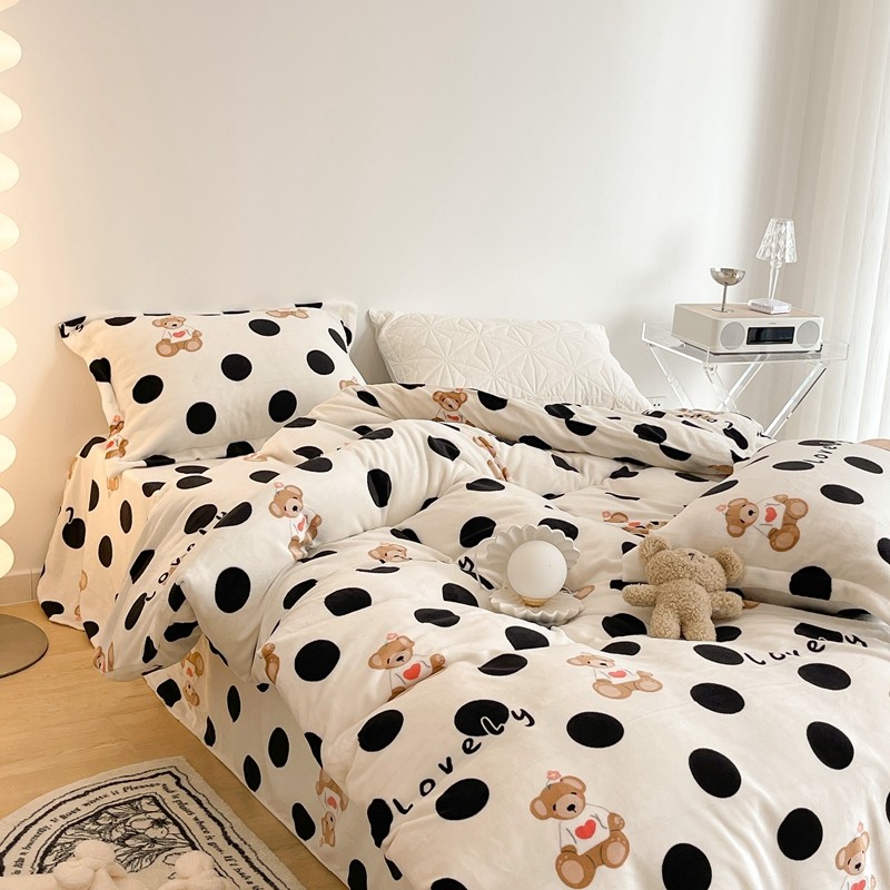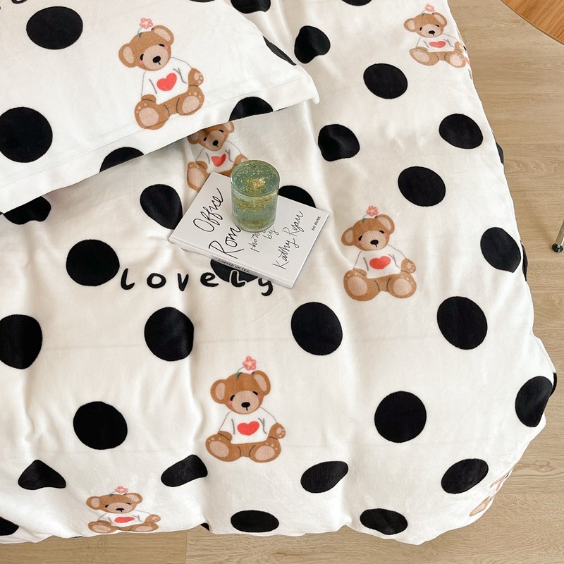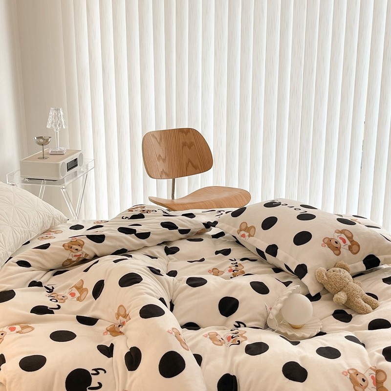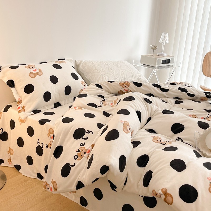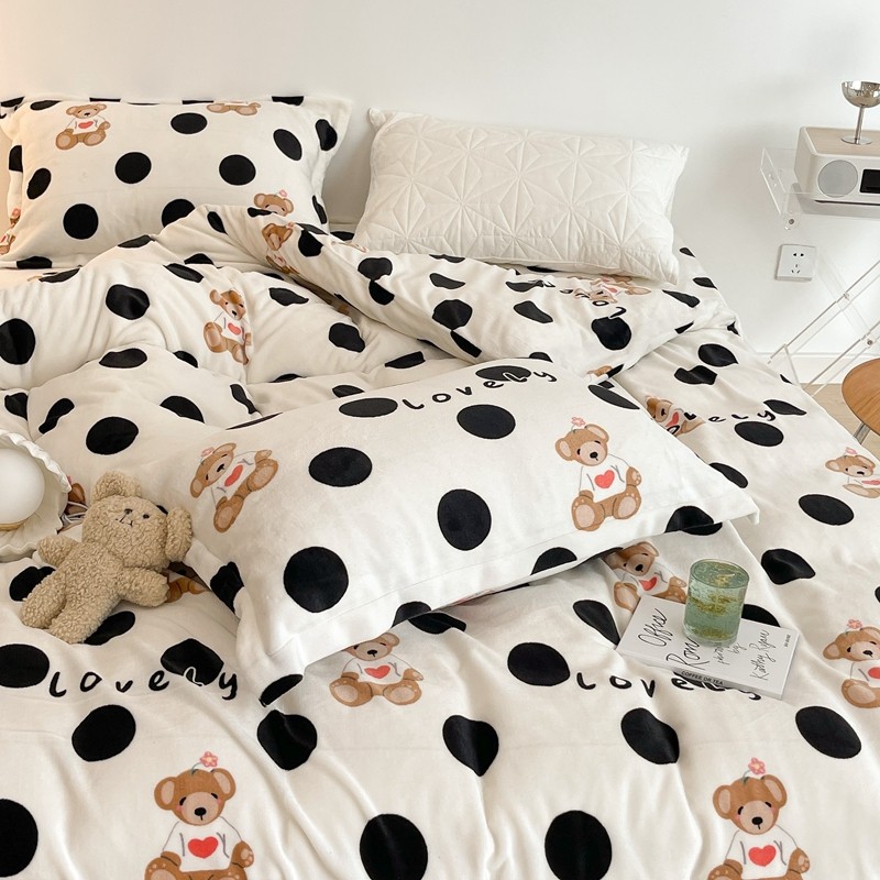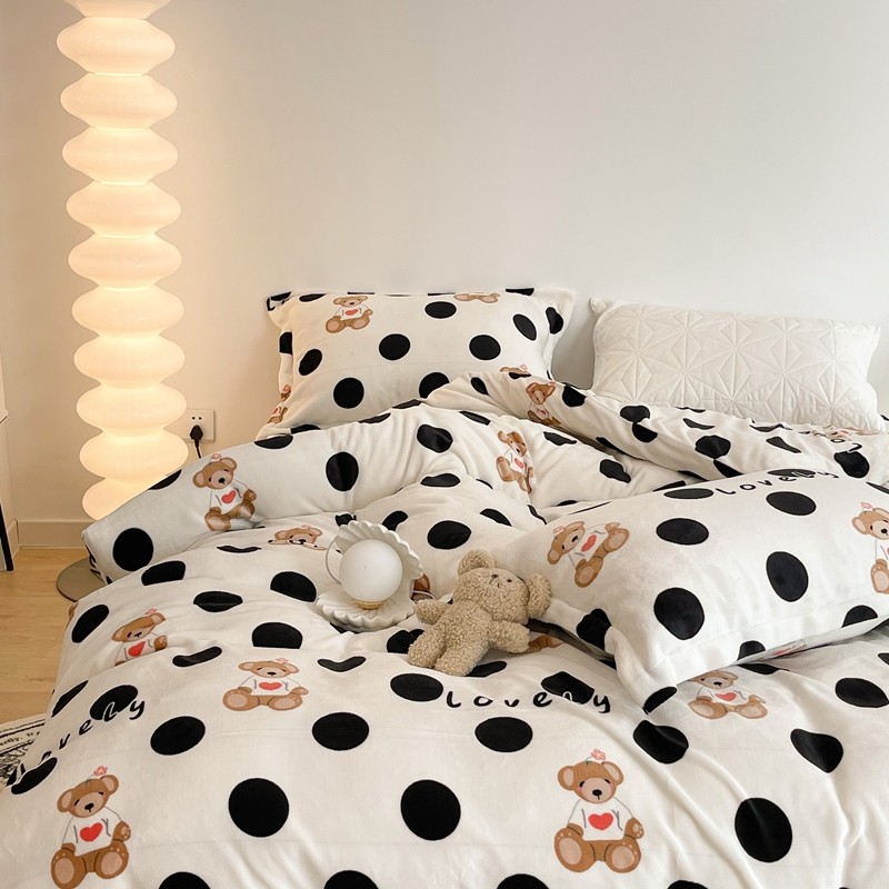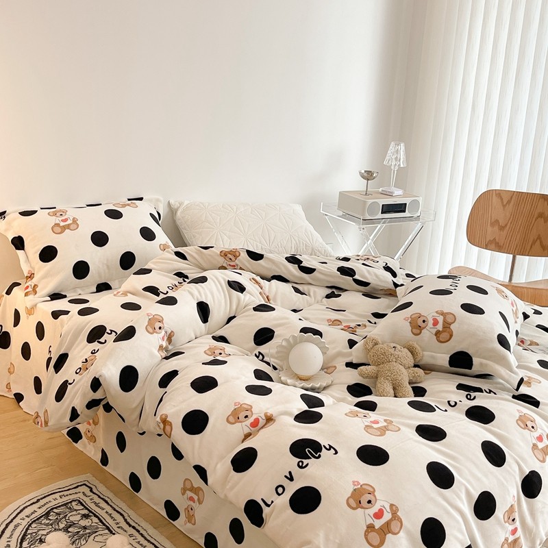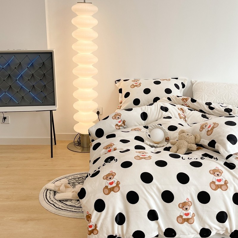 昔可家纺 2021新款牛奶绒四件套-二批 波点小熊仔